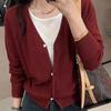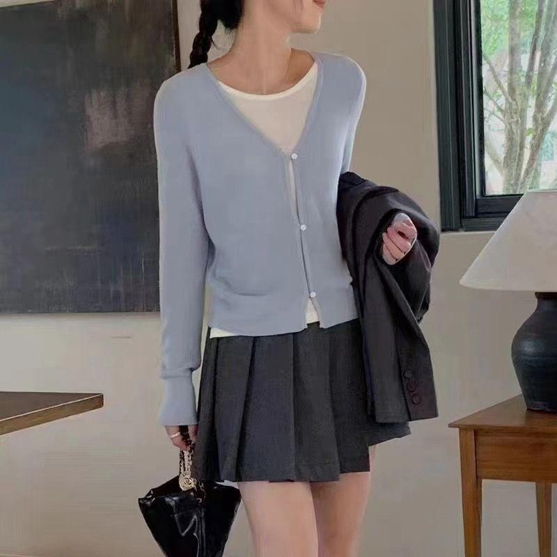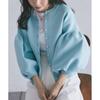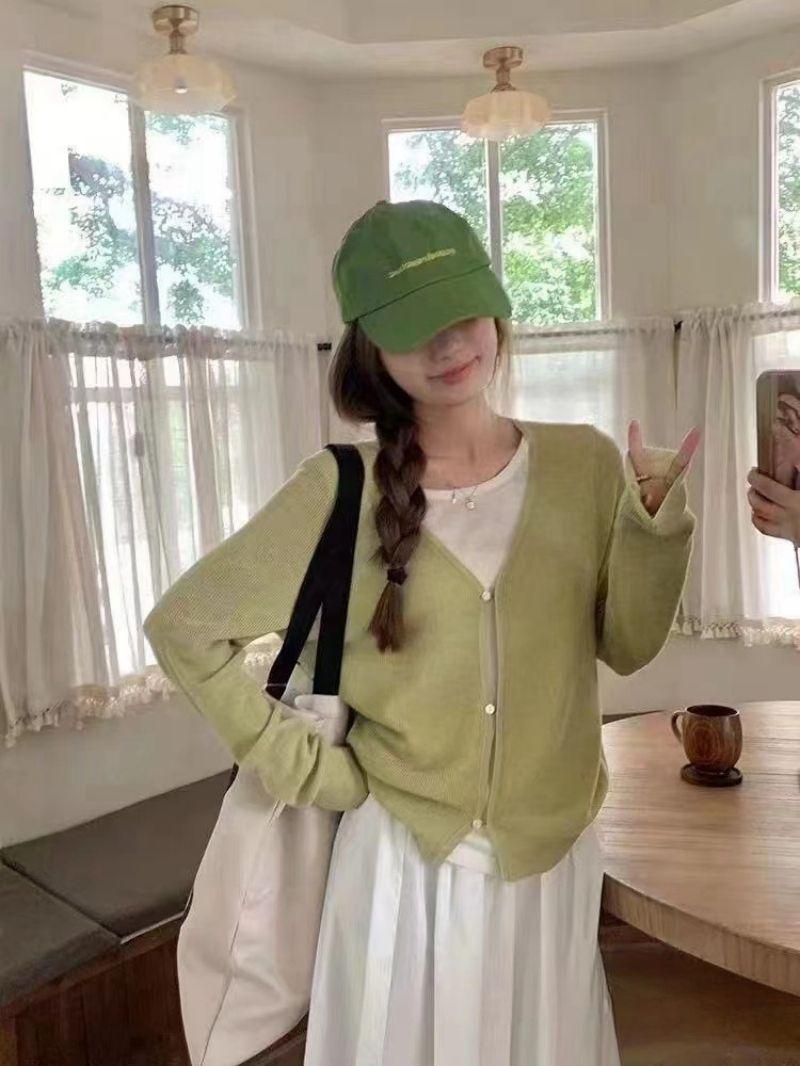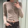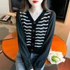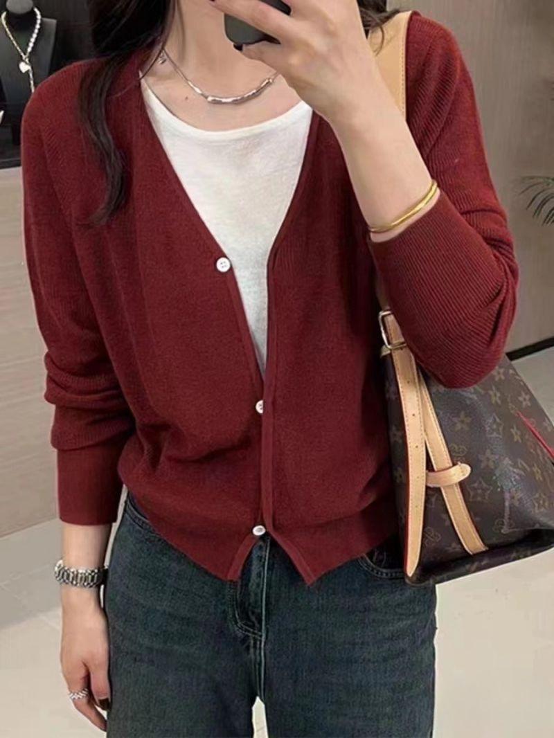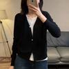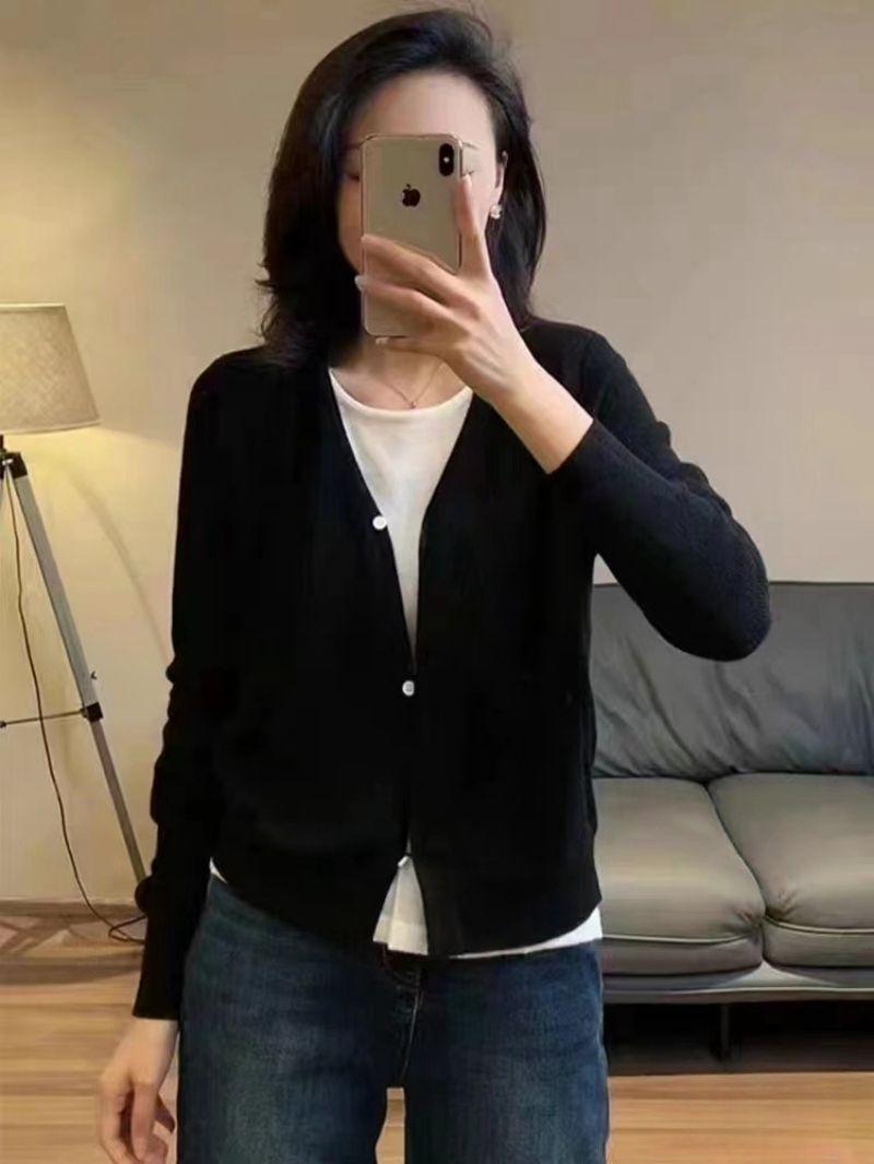 Otoño Nueva Moda Versátil Tejido de Punto de Dos Piezas Falsas con Tres Botones para Mujeres para Reducir la Edad y Adelgazar Cárdigan de Punto de Manga Larga