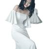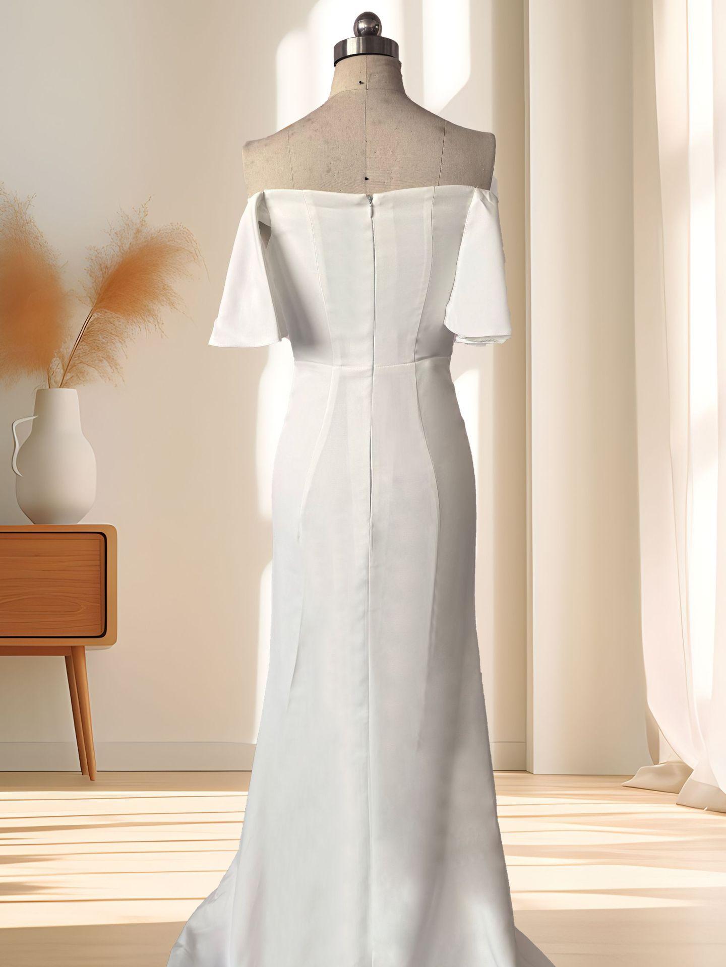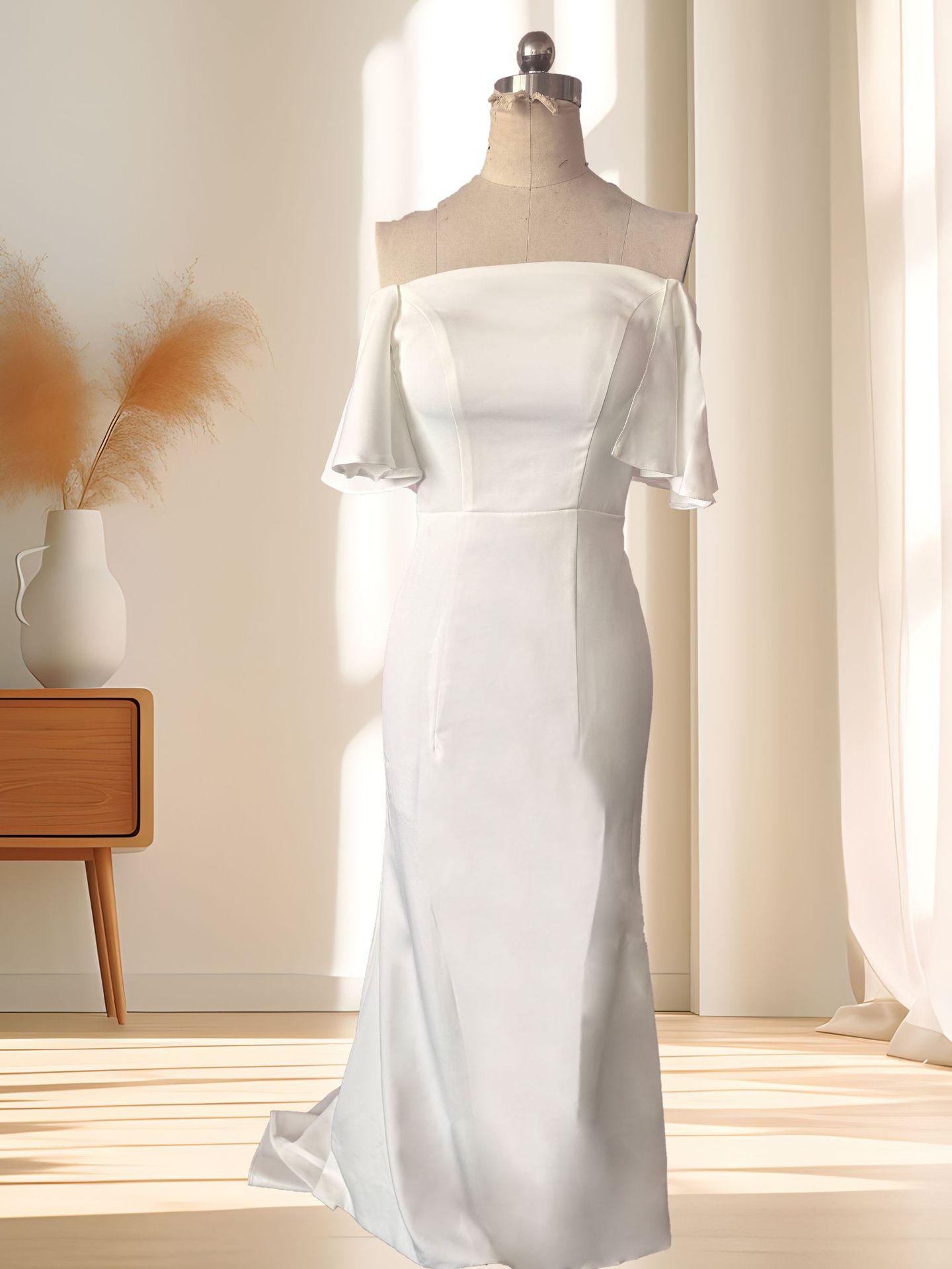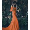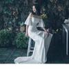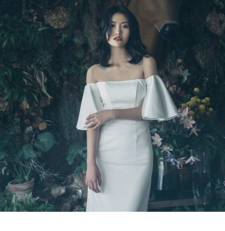 Vestido de novia ligero 2025 Nuevo sencillo con hombros descubiertos Mori Novia Boda Cola de pez Francés Hepburn Viaje Photoshop Gasa