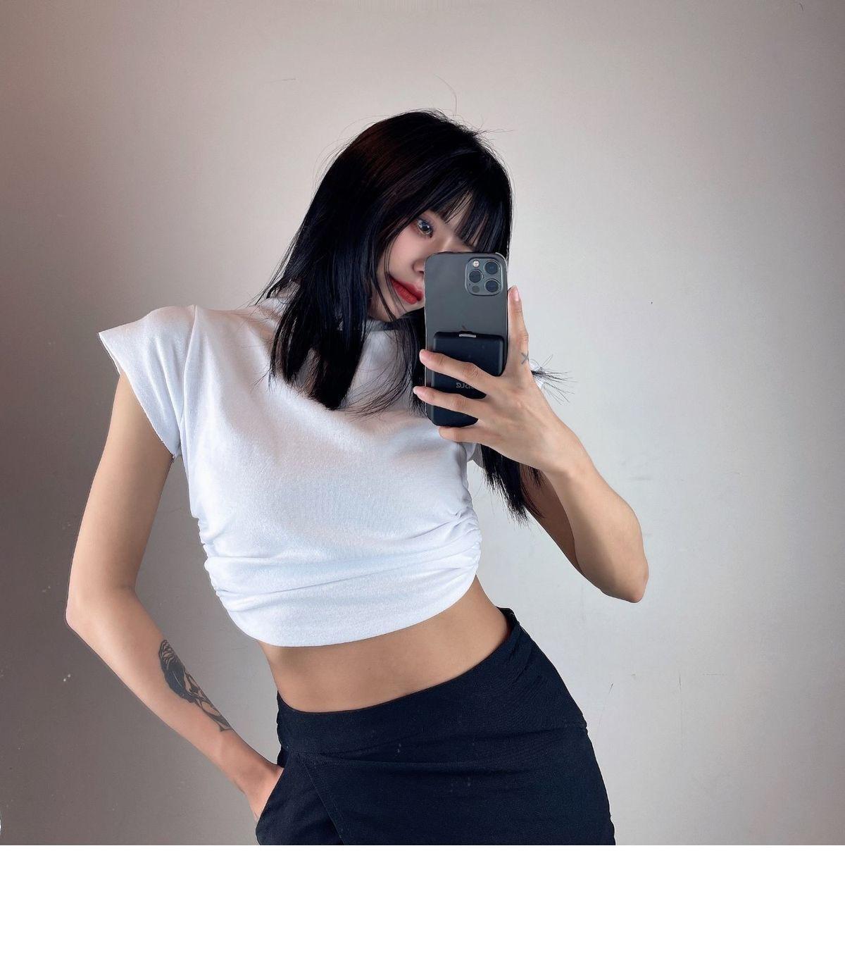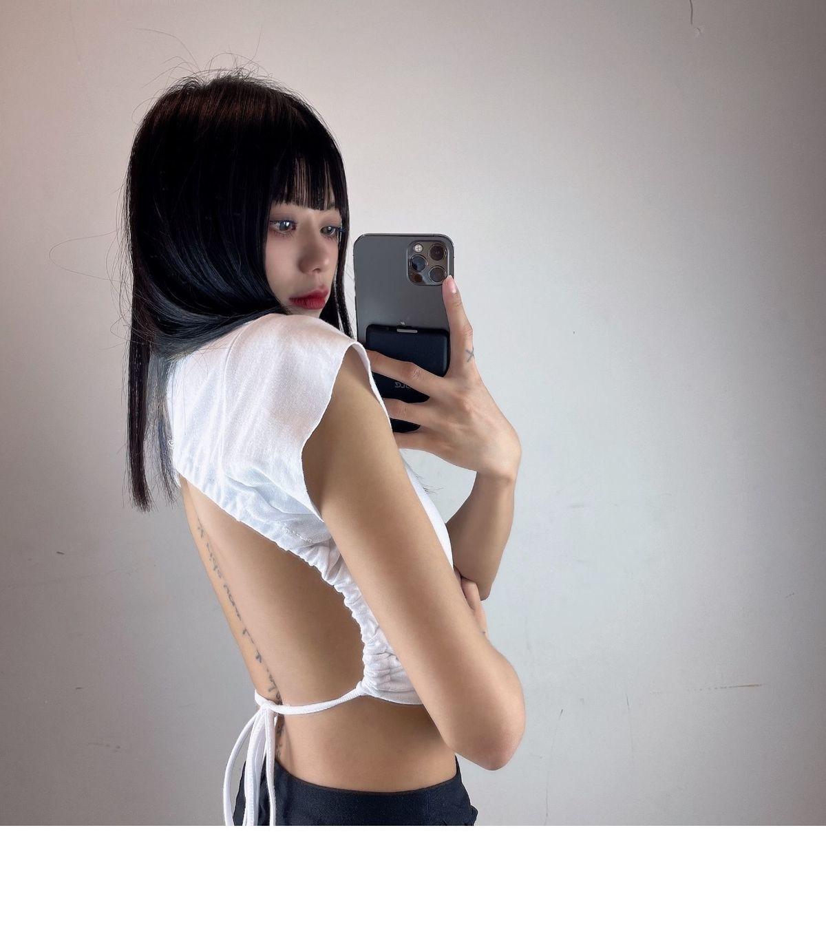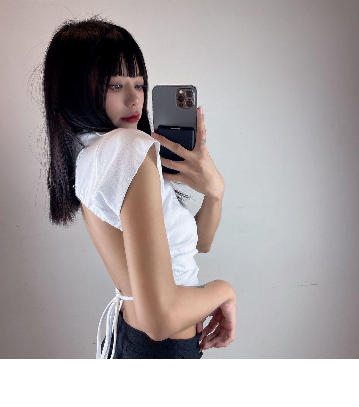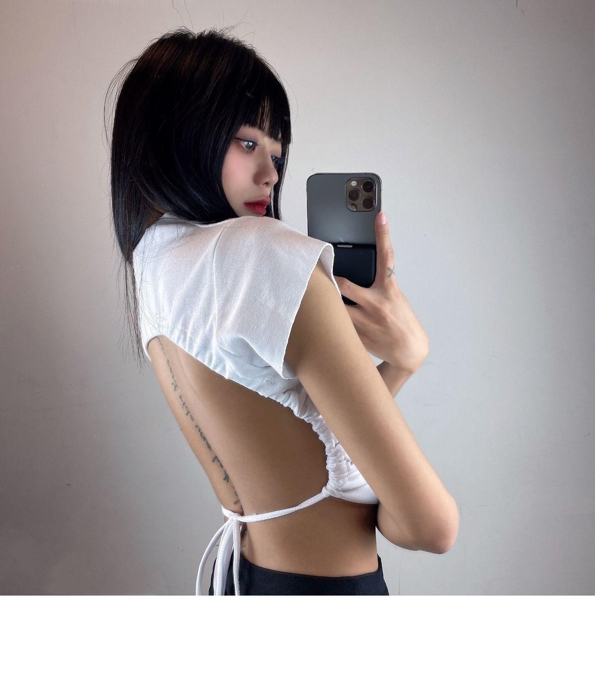 Estilo europeo y americano camiseta grande sin espalda con cordones ajustada que revela la cintura para damas verano deseo puro sexy chica caliente intrigante top blanco