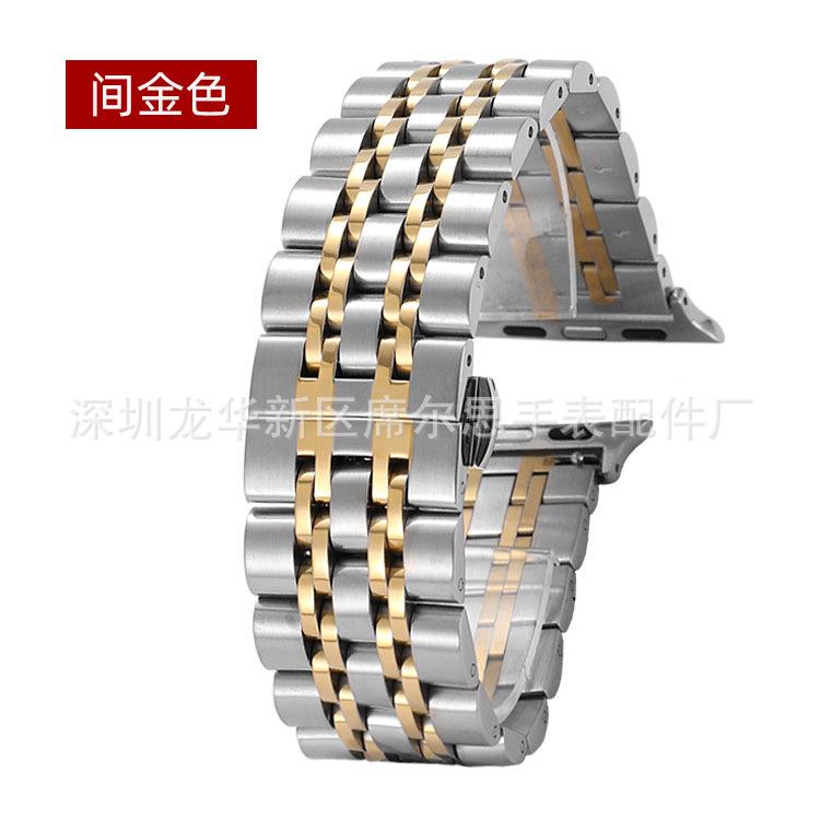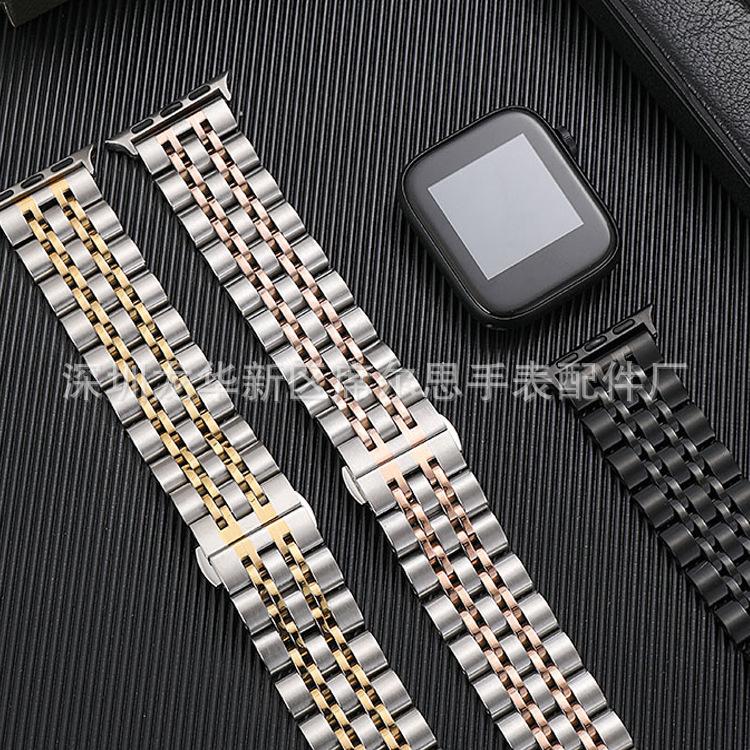 Correa de reloj inteligente de acero inoxidable con forma de luna y siete cuentas