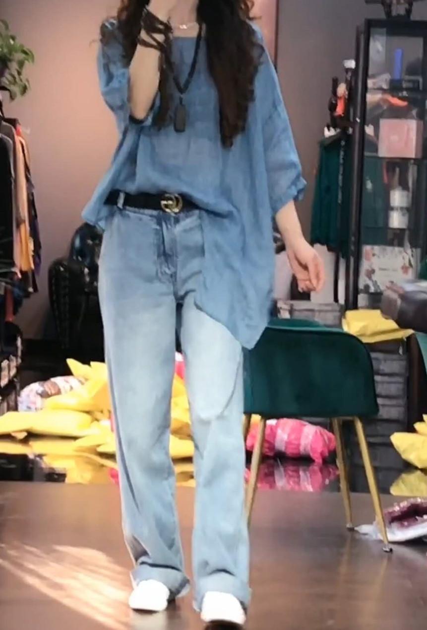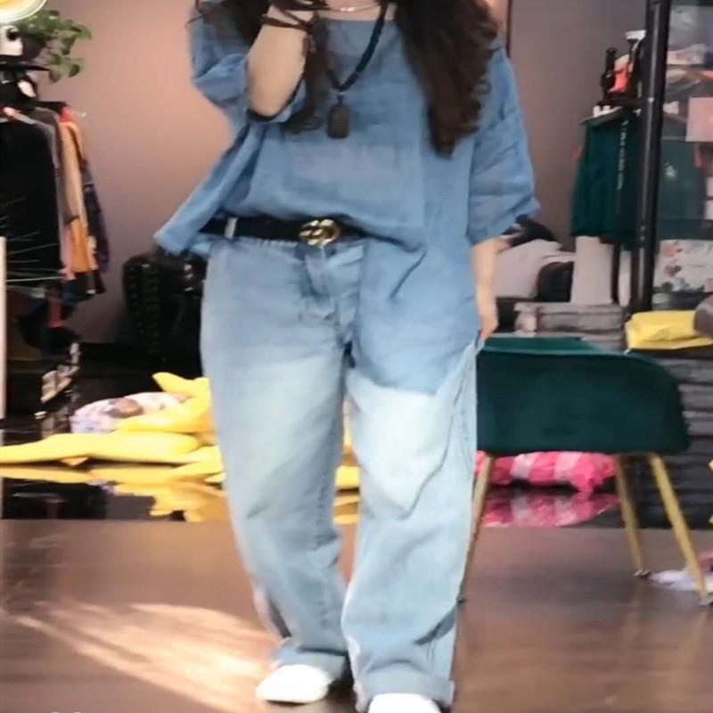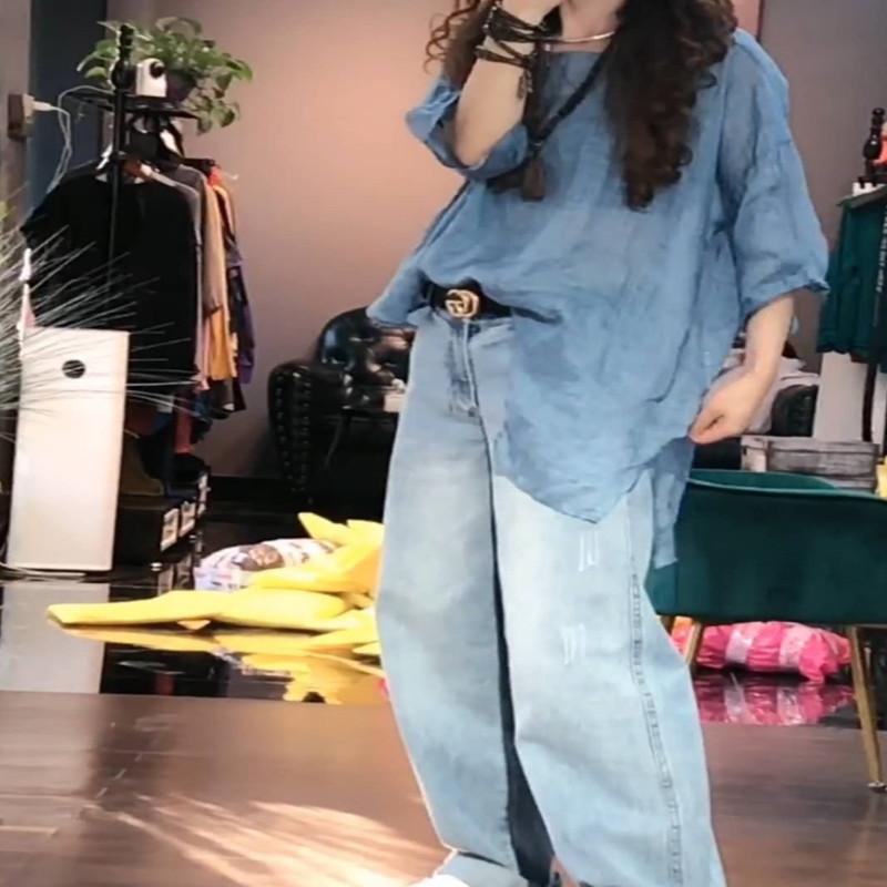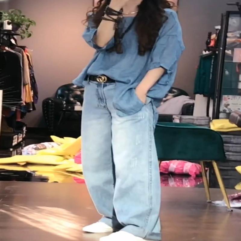 Camisa de Moda para Mujer 2025 Verano Nuevo Suelta Adelgazante Azul Manga Corta Camisa Básica