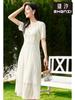 Vestido Zhen Xi de manga corta, escote en V, cintura alta, elegante, de encaje, largo medio, corte A, DP013