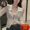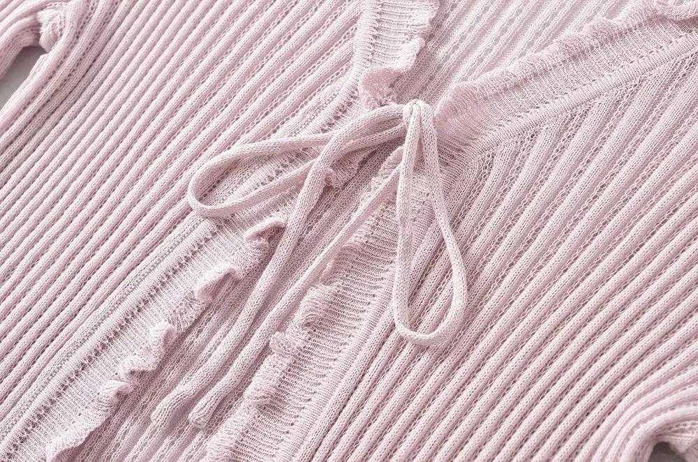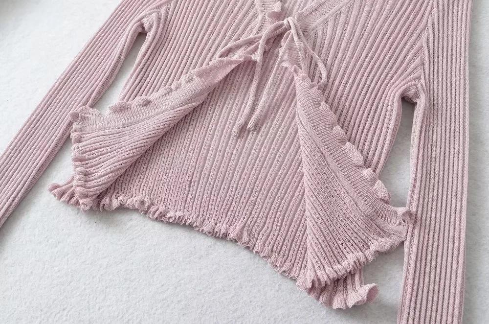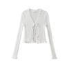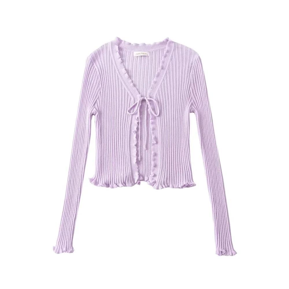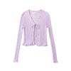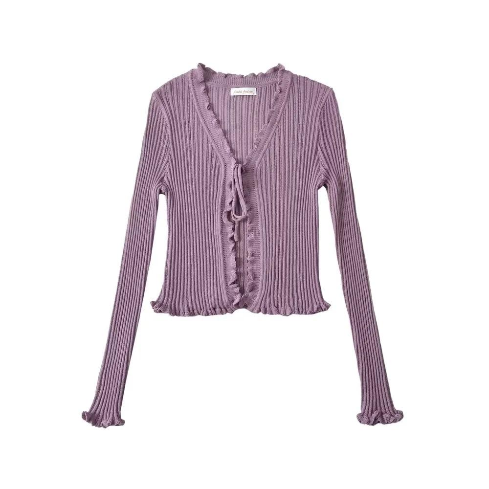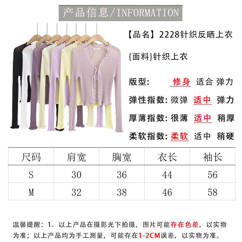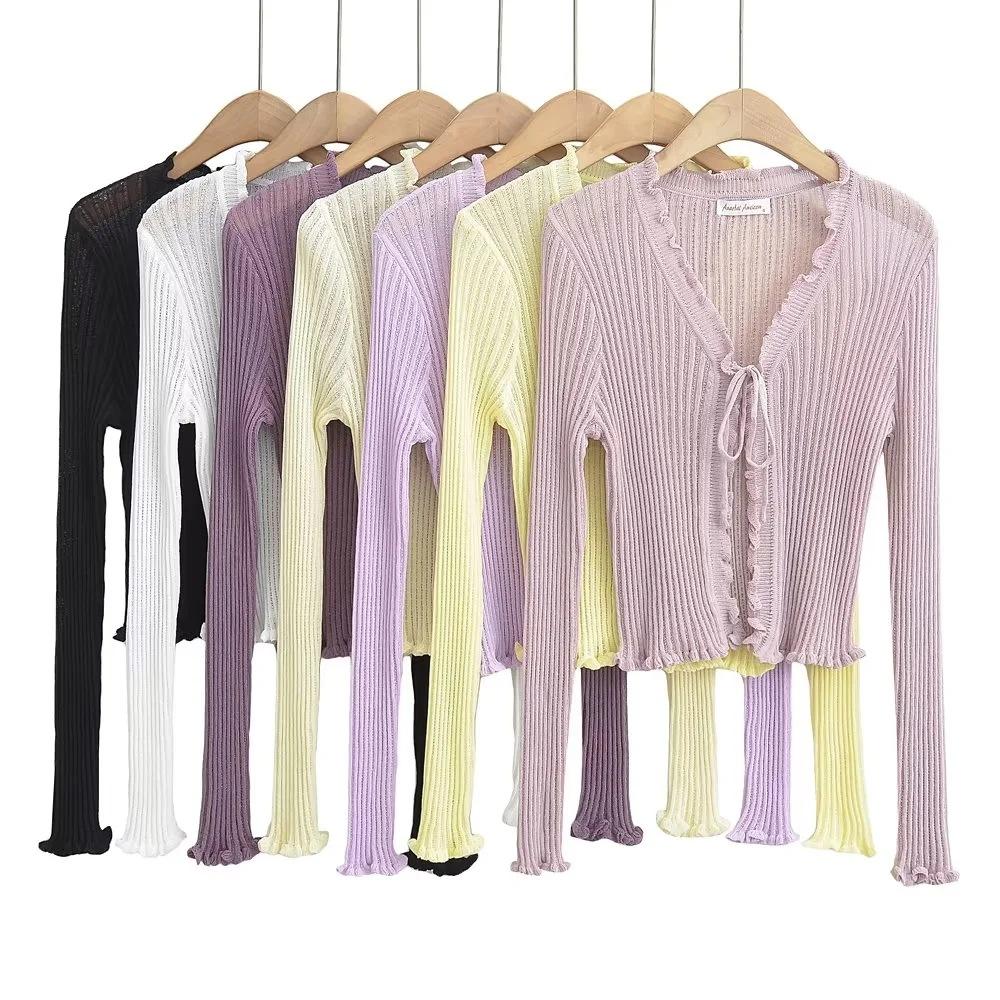 Cárdigan de punto fino con cordones de estilo europeo y americano de verano para mujer, dulce niña, cuello en V, manga larga, camiseta exterior de protección solar para mujer