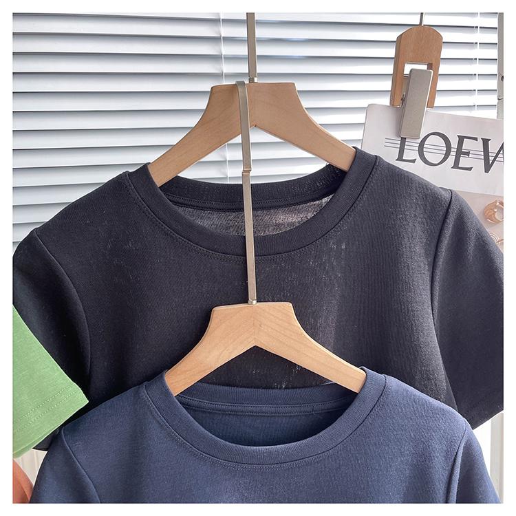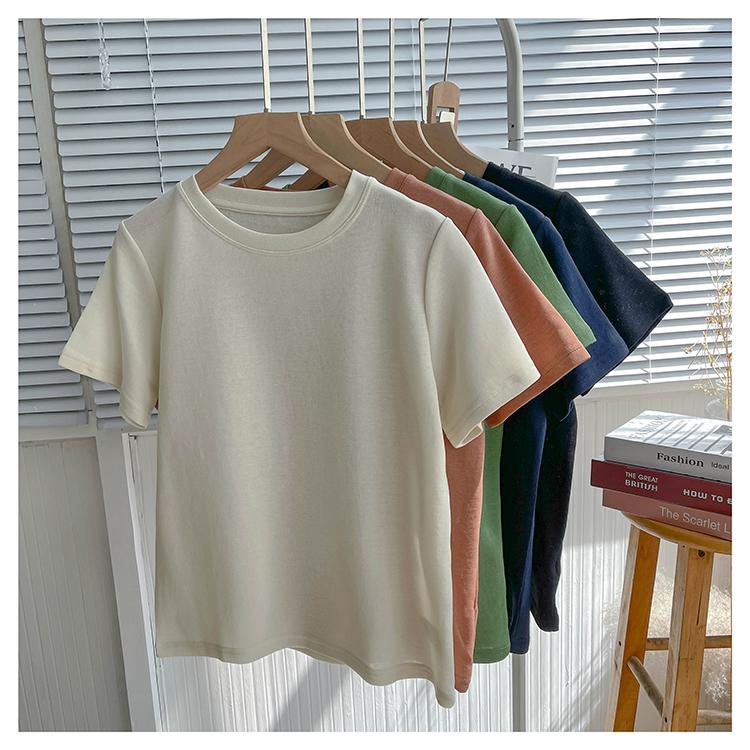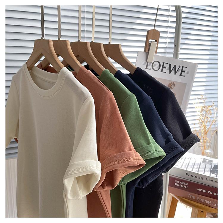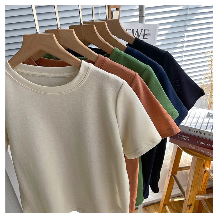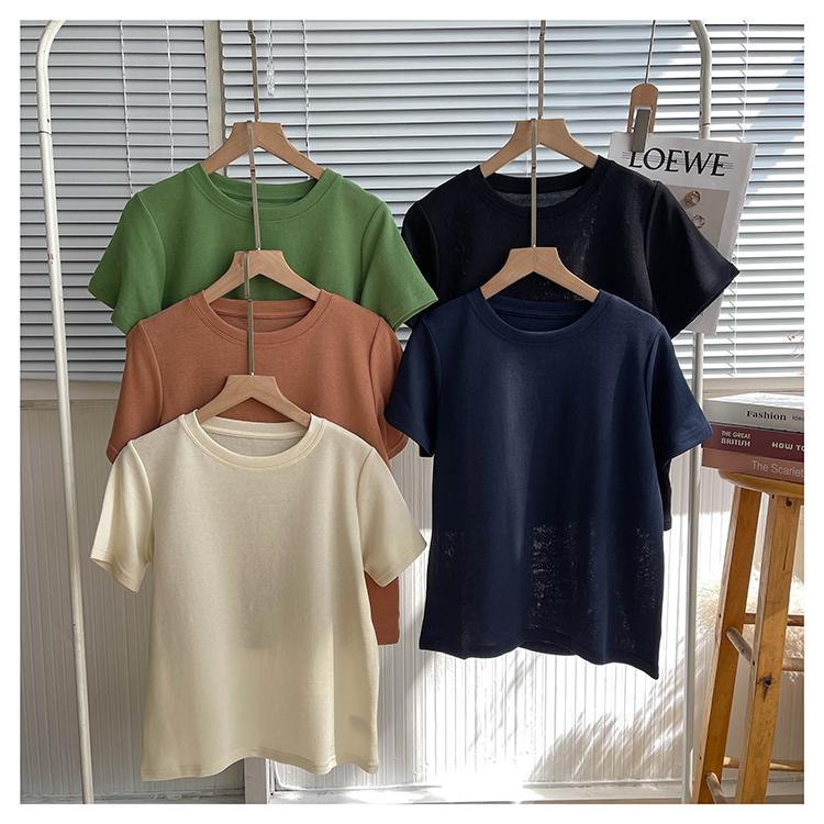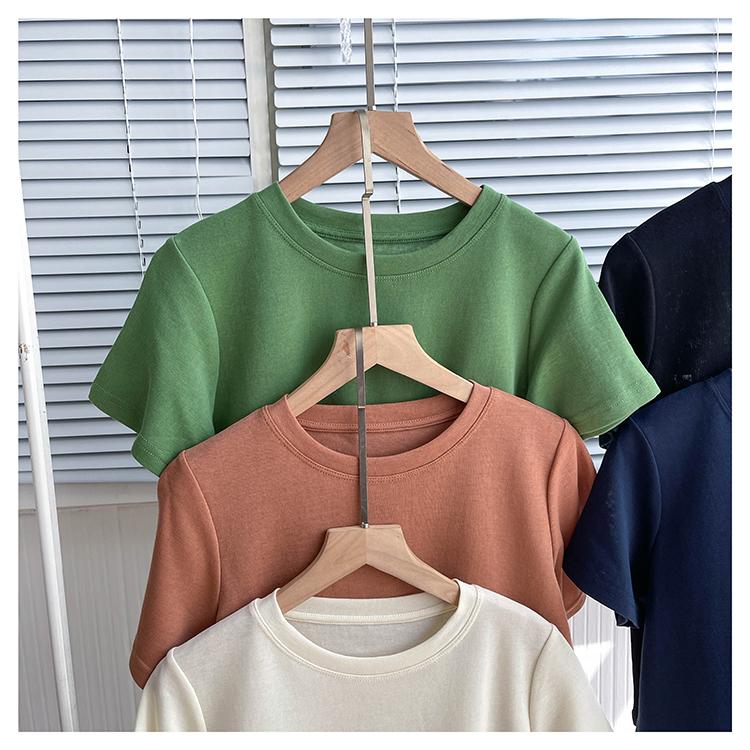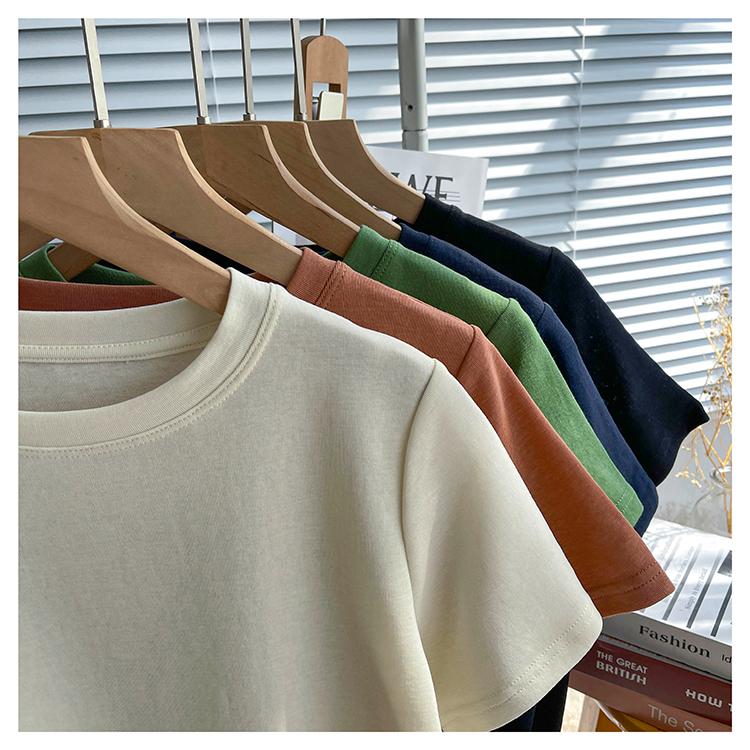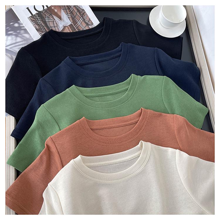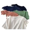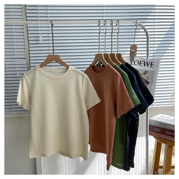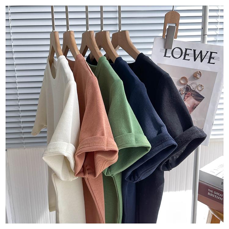 Camiseta de Cuello Redondo Manga Corta Hombro Derecho para Mujer Verano Estilo Hong Kong Diseño Nicho Corta Blanca Fumei Color Puro Top Básico para Mujer