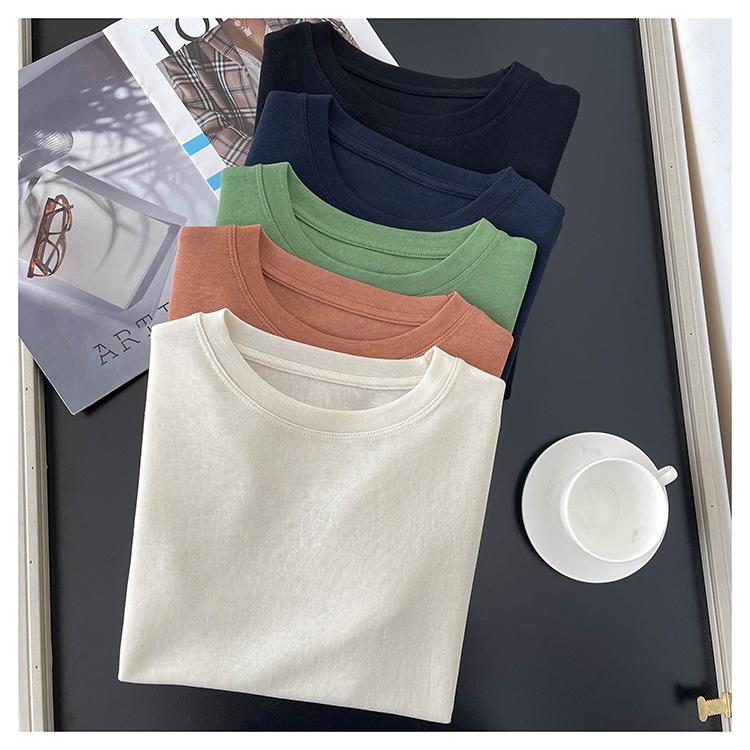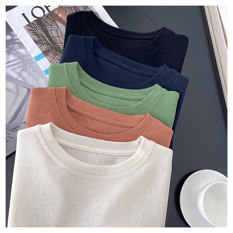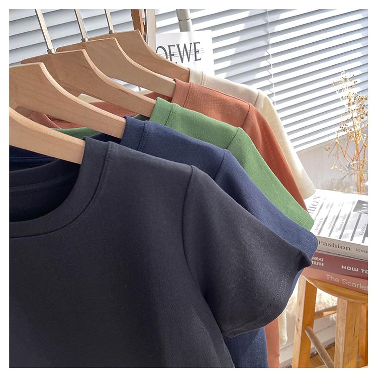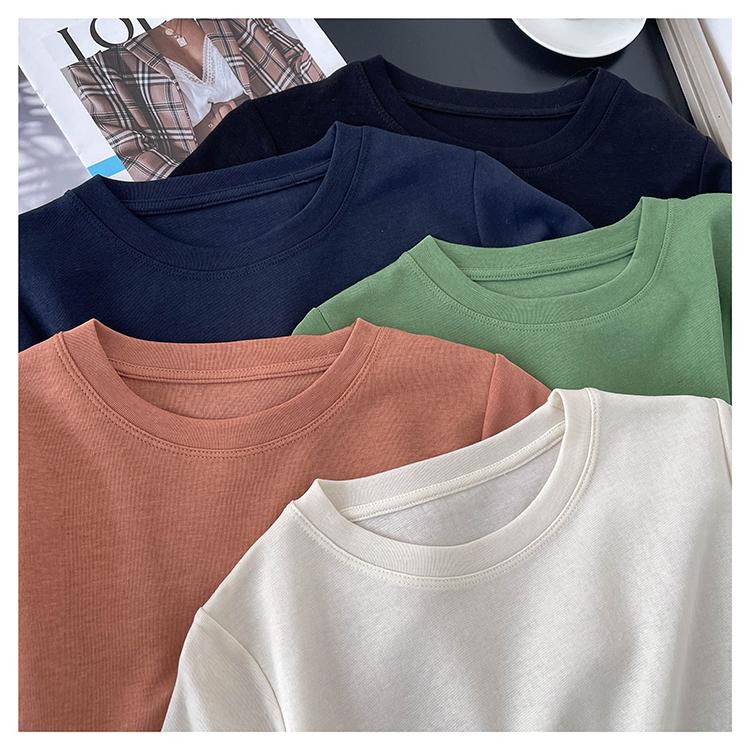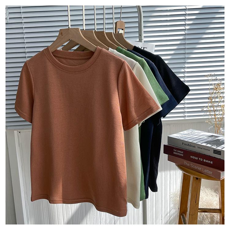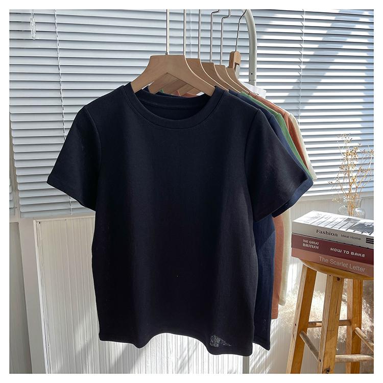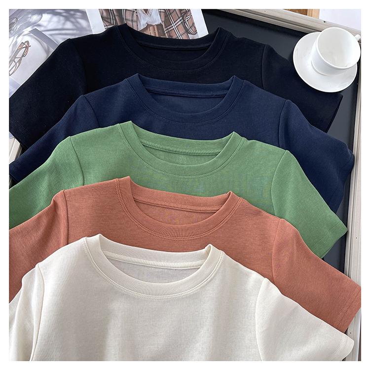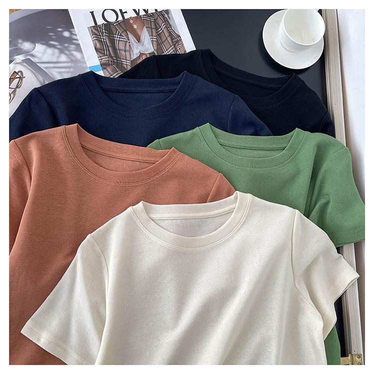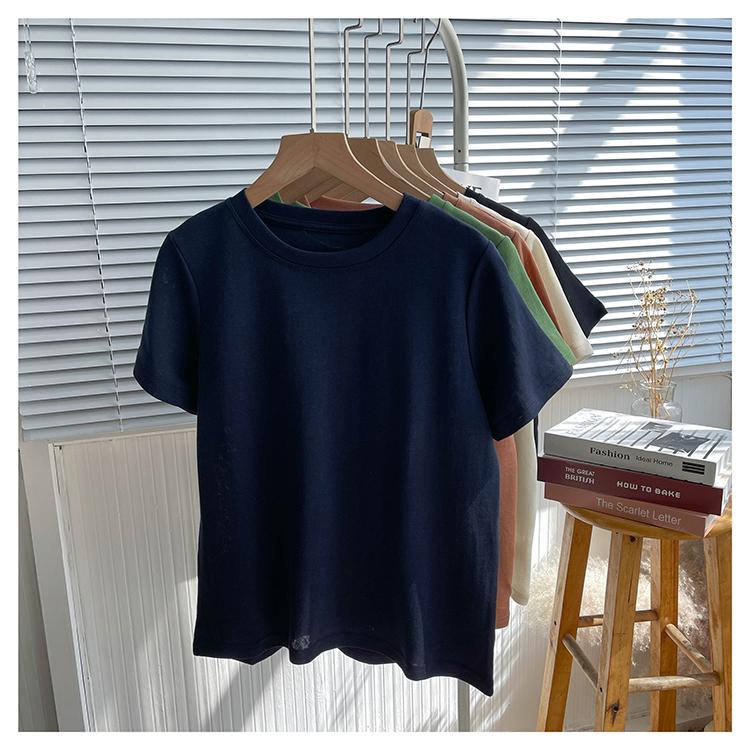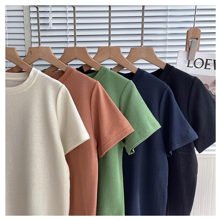 Camiseta de Cuello Redondo Manga Corta Hombro Derecho para Mujer Verano Estilo Hong Kong Diseño Nicho Corta Blanca Fumei Color Puro Top Básico para Mujer