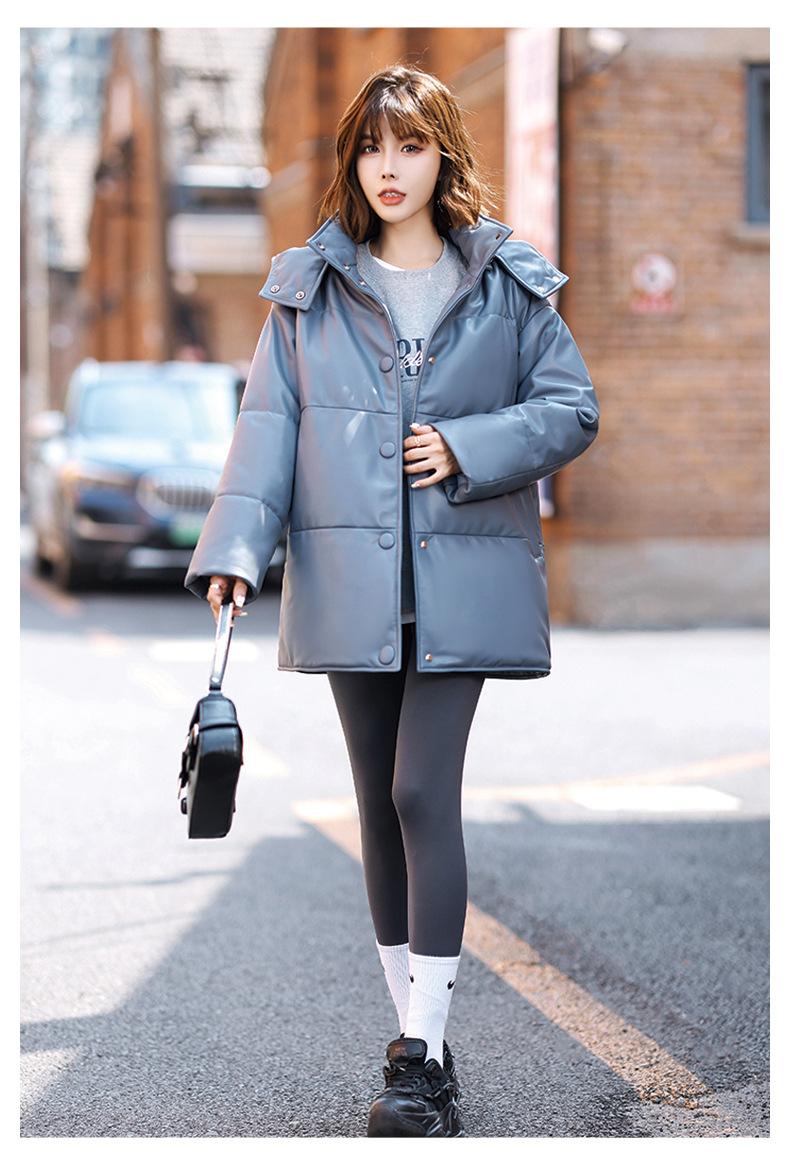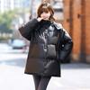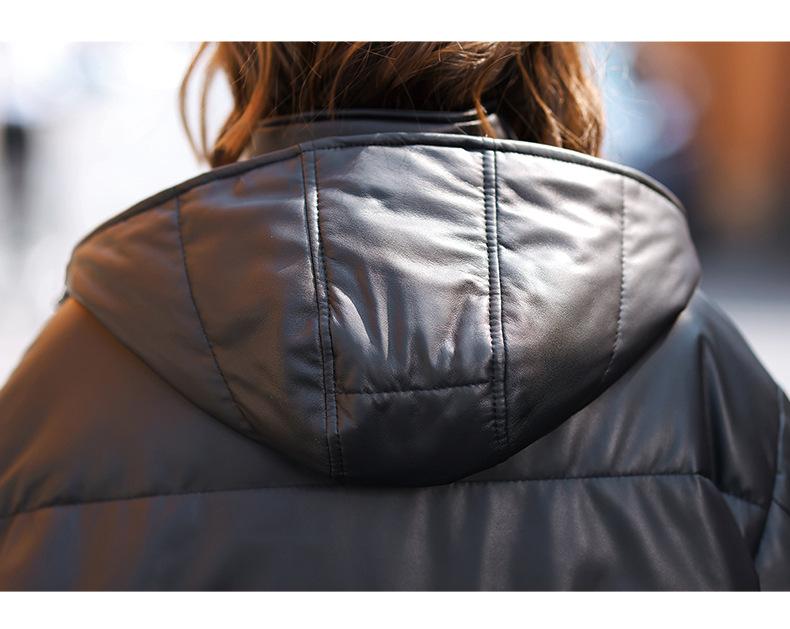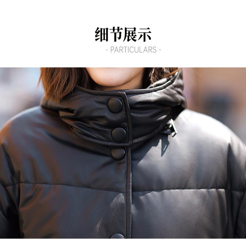 2025 Haining Nuevo Invierno Cuero Genuino plumón con Capucha Suelto Casual Cuero Genuino Piel de Cabra Chaqueta Versátil de Moda