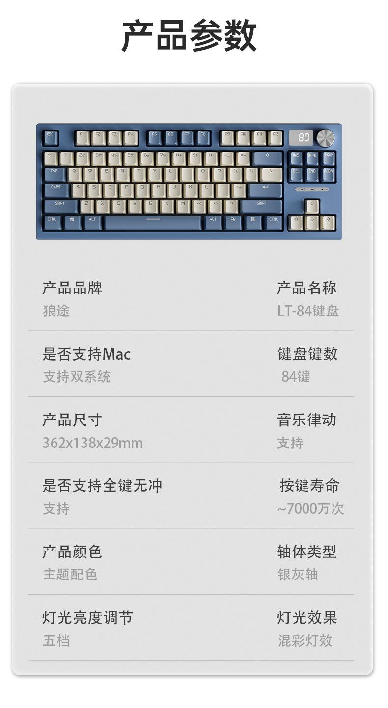 Teclado mecánico inalámbrico Bluetooth de tres modos Langtu LT84 para juegos, computadora, oficina