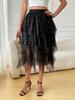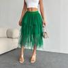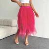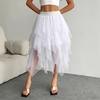 Falda de malla irregular para mujer, de longitud media, estilo nuevo de primavera 2025, con velo, cintura alta, combina con todo, aspecto ajustado.