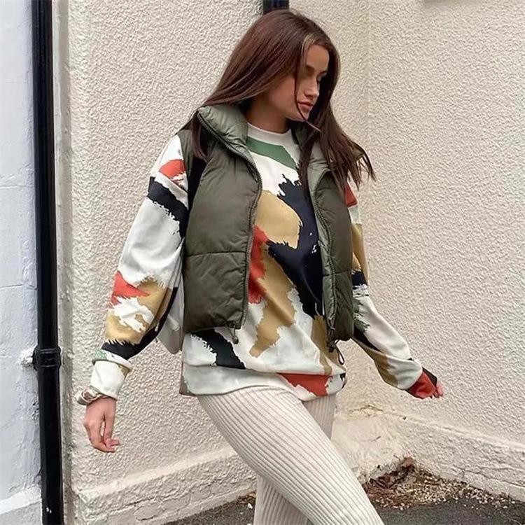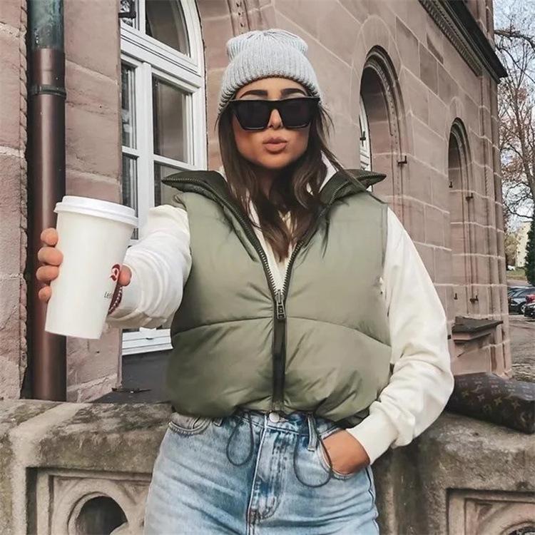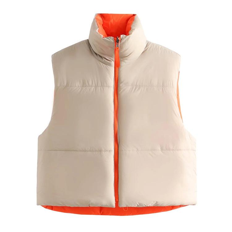 Venta al por mayor Comercio Exterior Transfronterizo Transfronterizo Europeo y Americano Nuevo Chaleco de Algodón Reversible Invierno para Mujer Urbano Casual Sencillo Cuello Alto