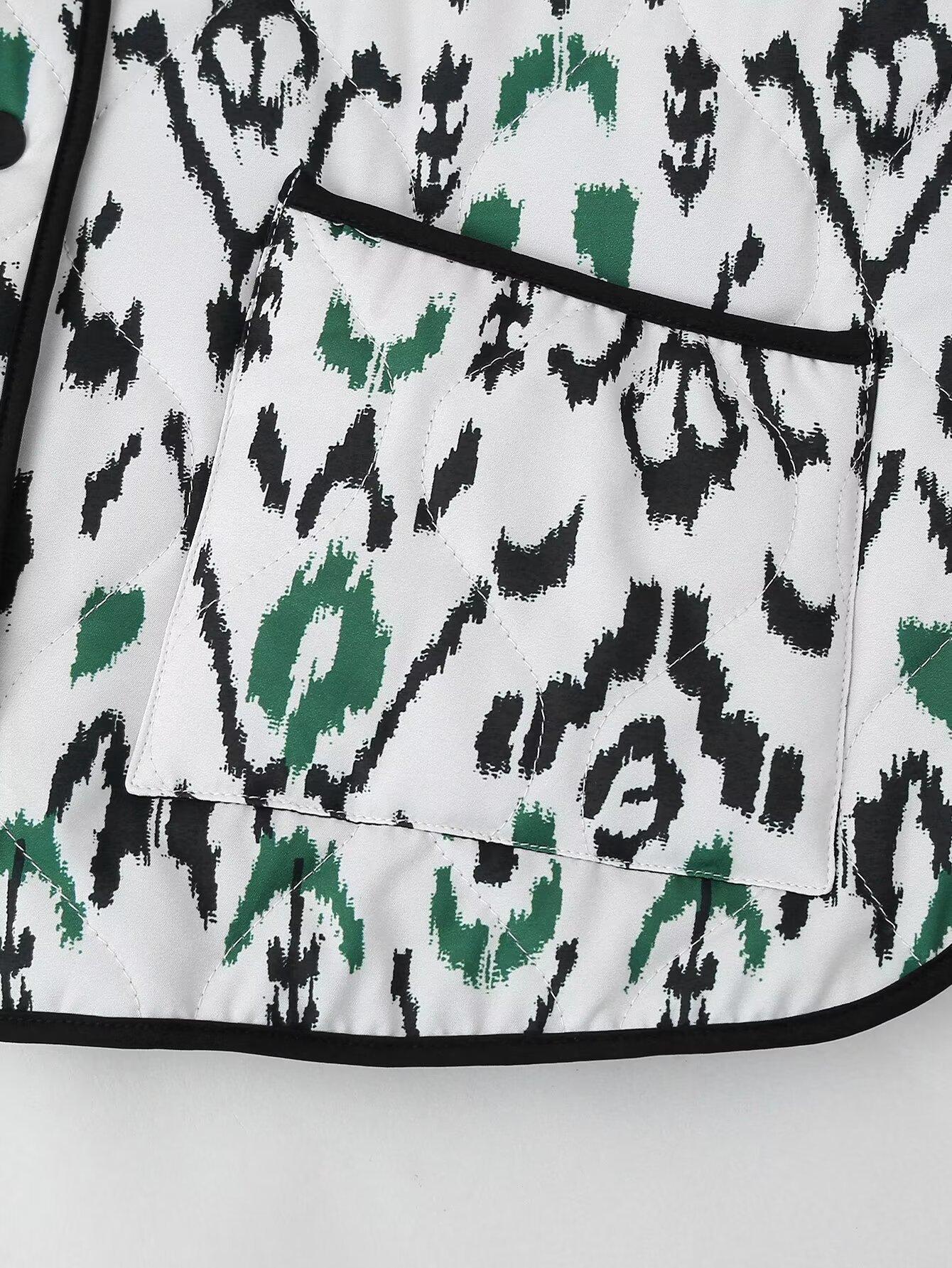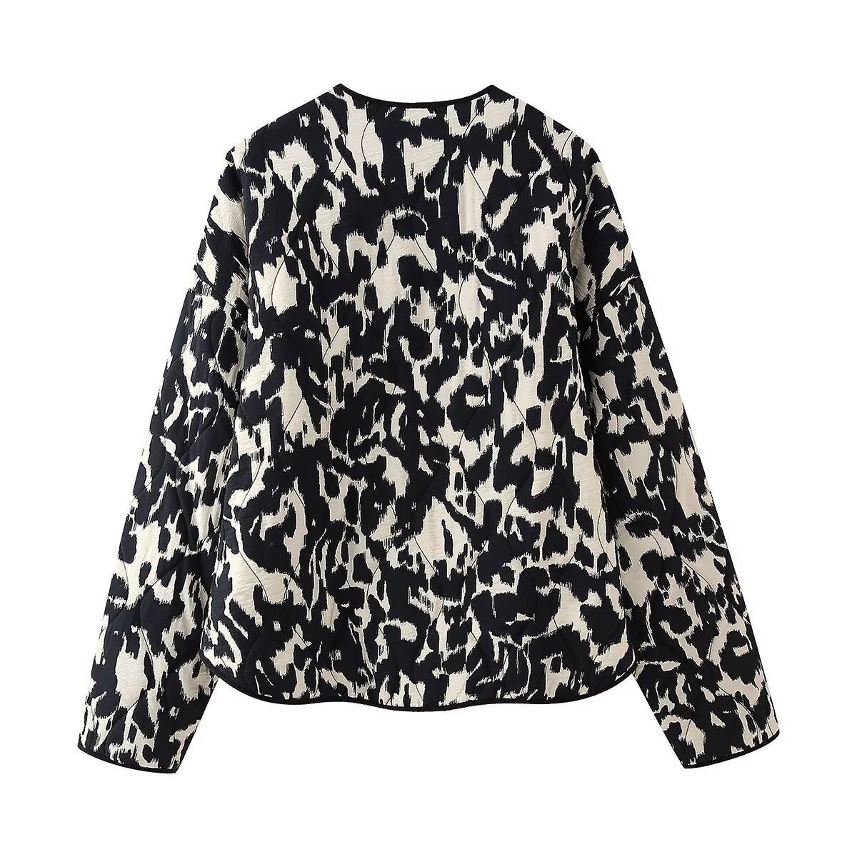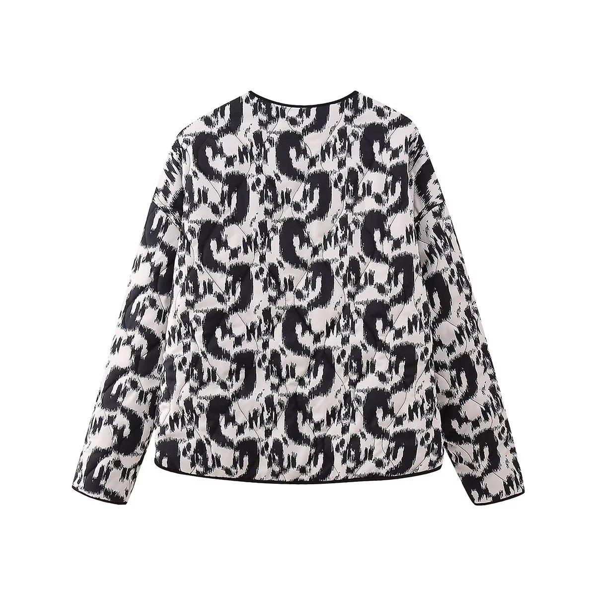 2024 otoño e invierno nuevo top europeo y americano transfronterizo para mujer estampado animal chaqueta chaqueta acolchada de algodón w028 5761