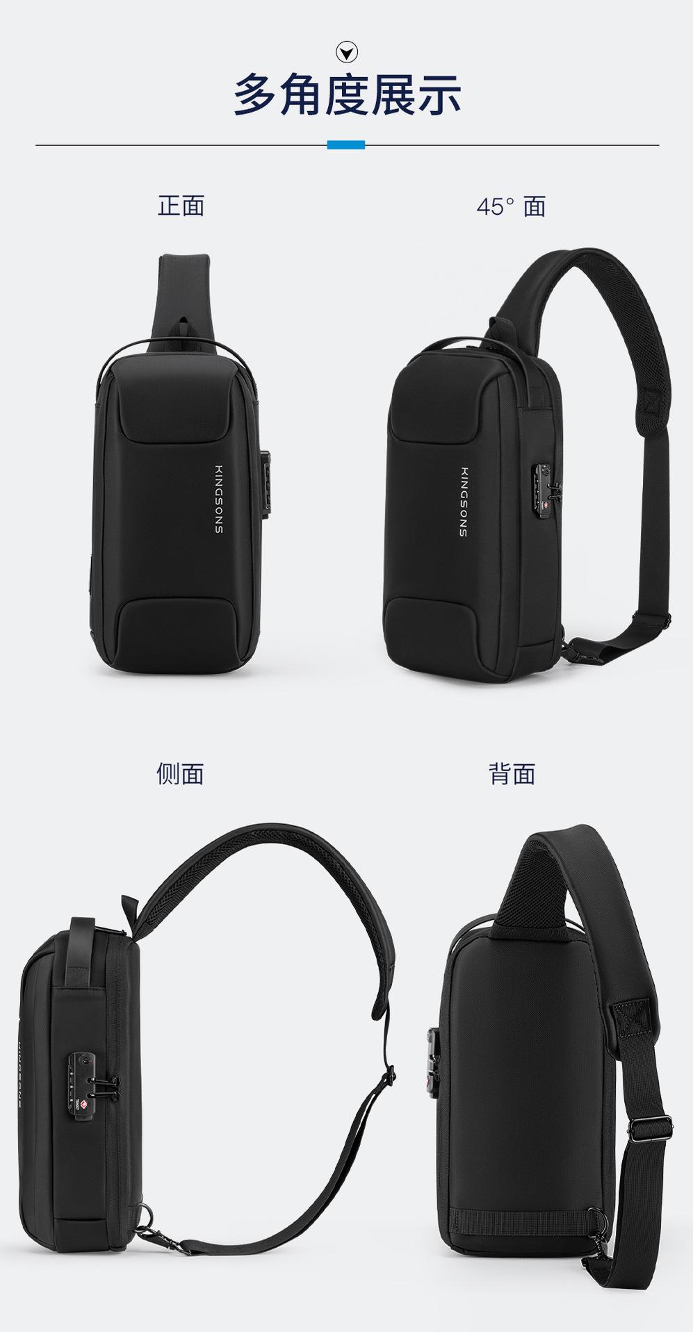 Bolso bandolera de gran capacidad para exteriores para hombre, bolso de pecho antirrobo transfronterizo, moderno y sencillo, bolso de hombro con carga USB