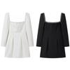 Vestido de verano 2022 estilo francés, elegante, informal, ajustado, con cintura adelgazante, color liso, cuello redondo, manga corta, largo medio para mujer