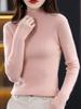 Suéter de cuello alto medio para mujer, suéter de color sólido, suéter ajustado de manga larga, jersey de mujer, camisa de fondo, otoño e invierno