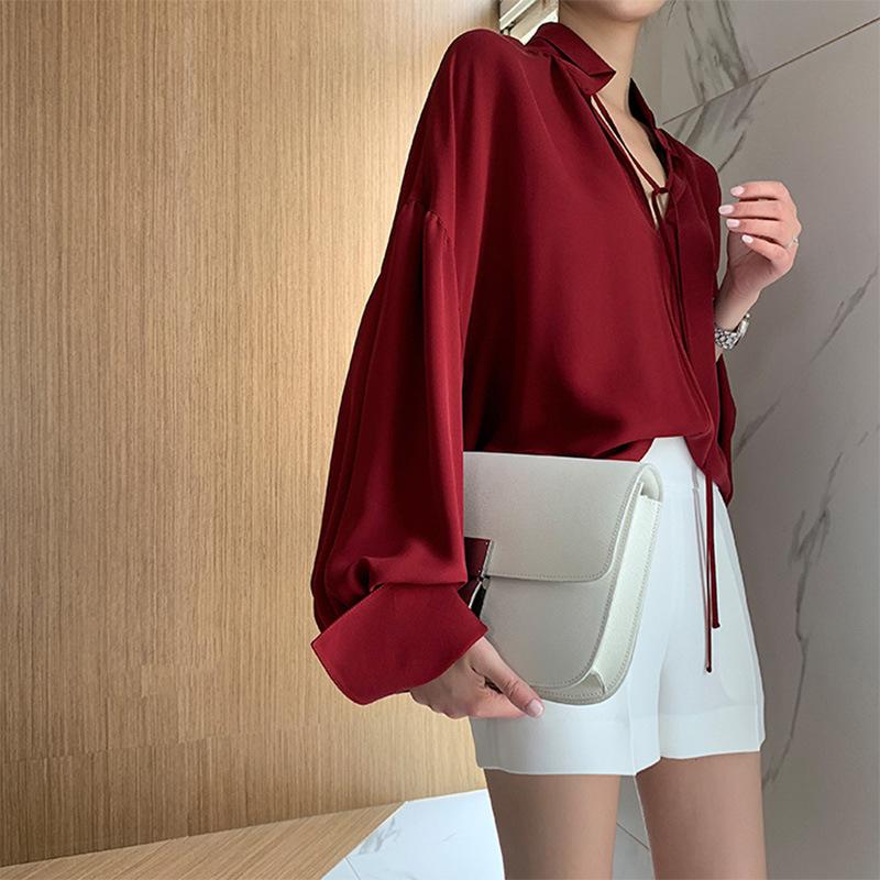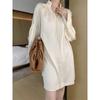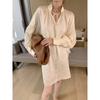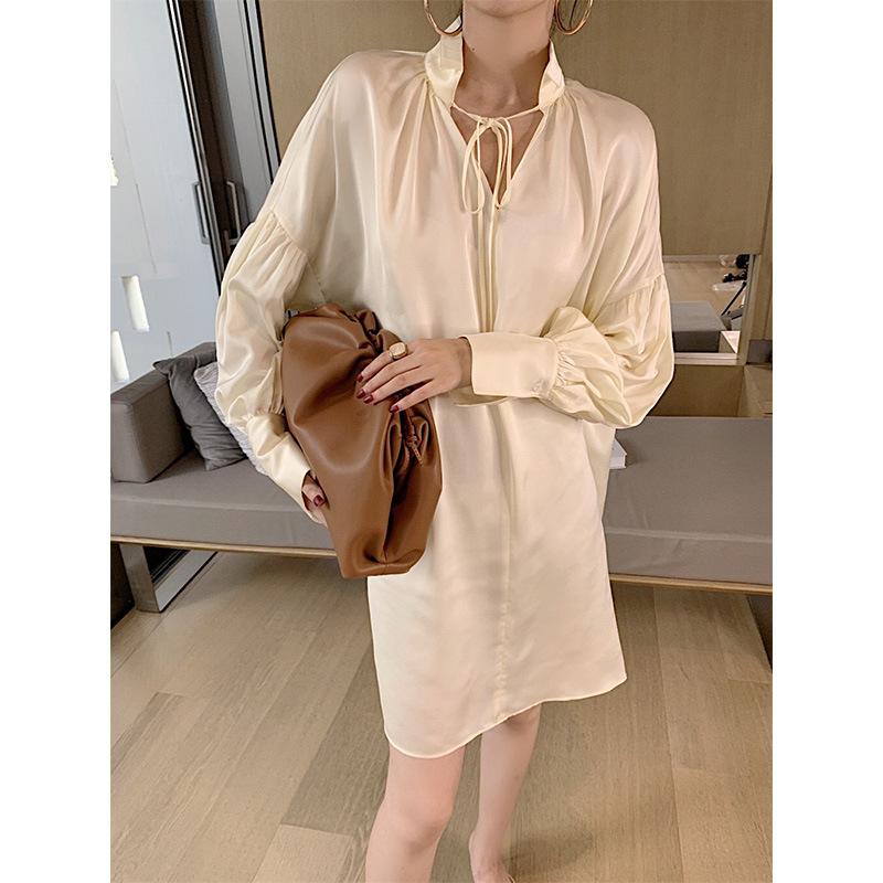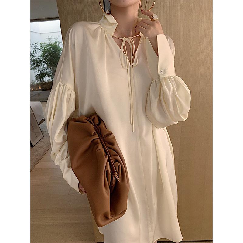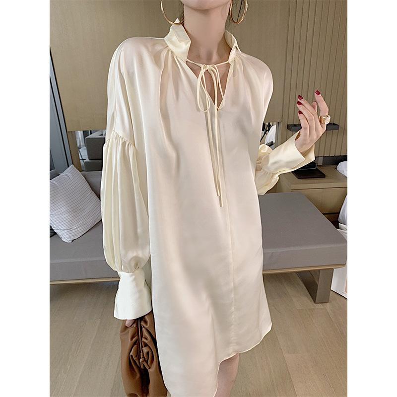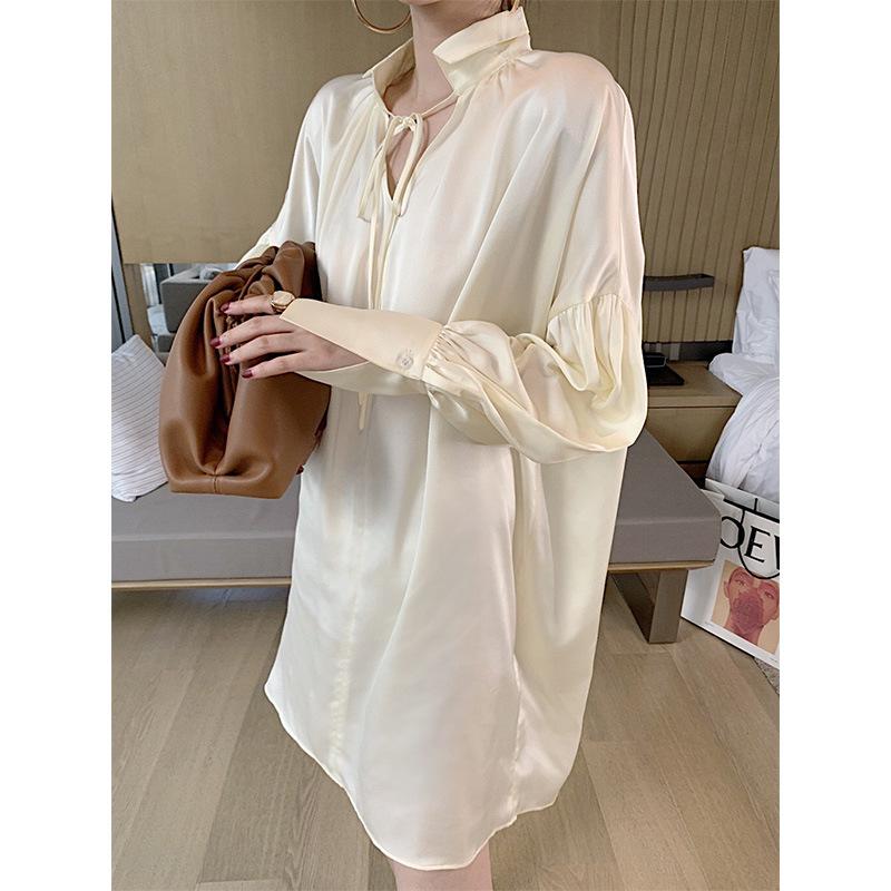Vestido camisero de seda midi para mujer, talla grande, primavera y verano, estilo retro, holgado y con hombros descubiertos.
