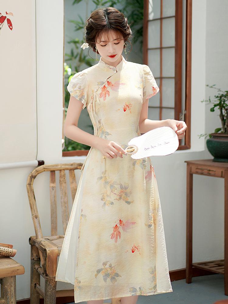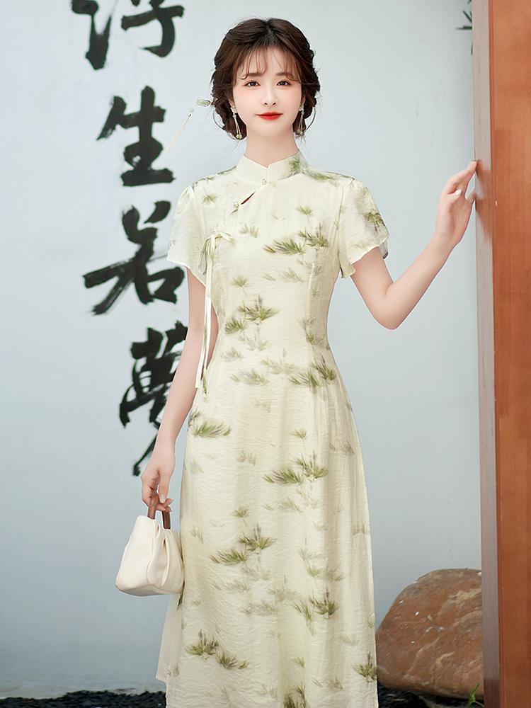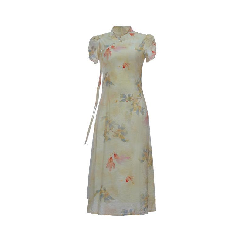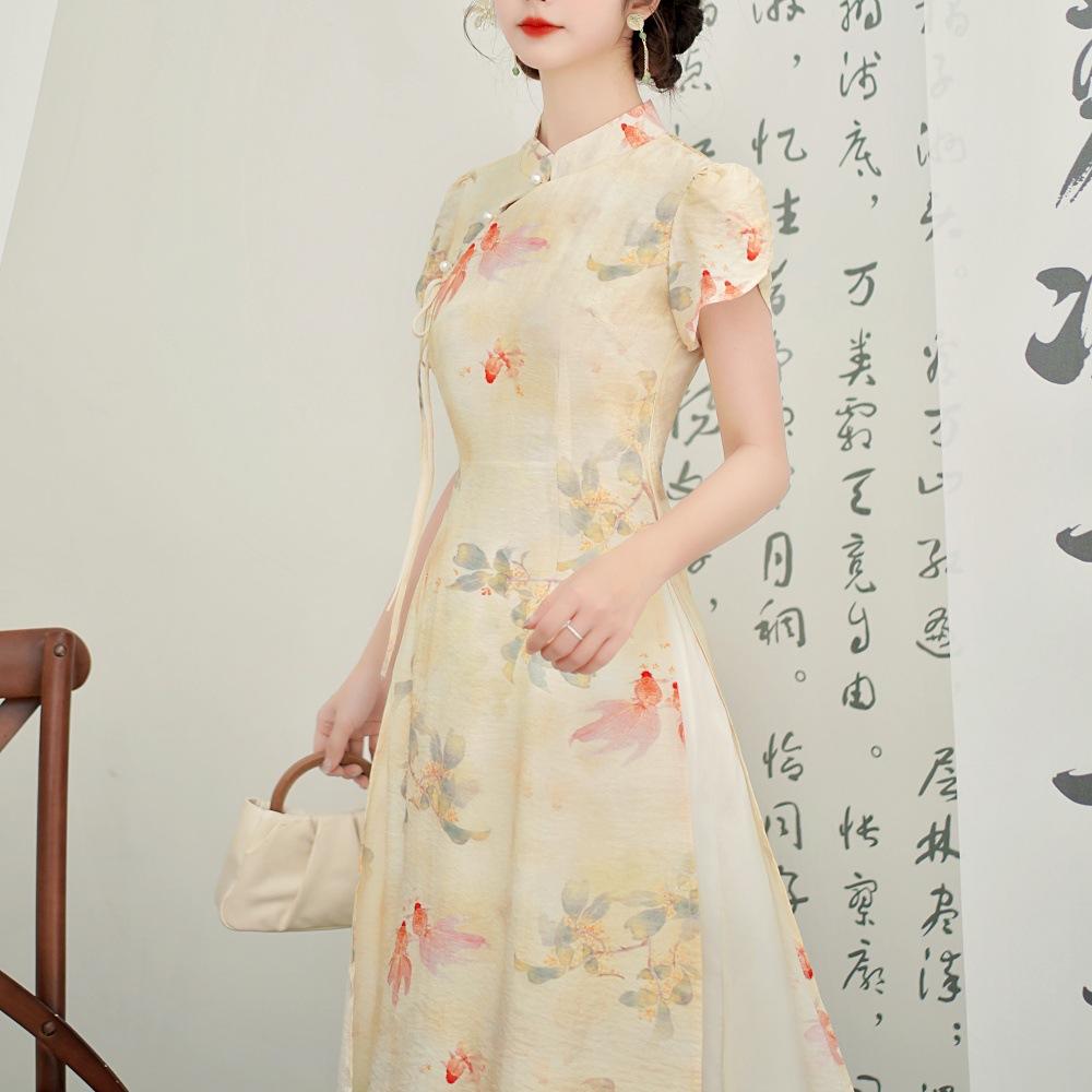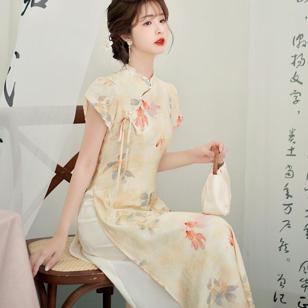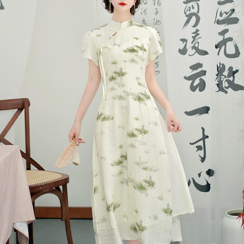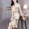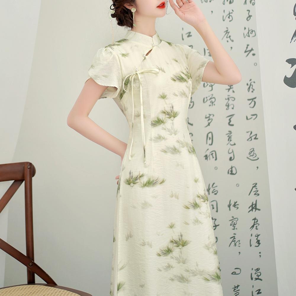 Vestido vintage cheongsam modificado chino, novedad de verano 2024, falda estampada elegante de estilo nacional con cintura adelgazante.