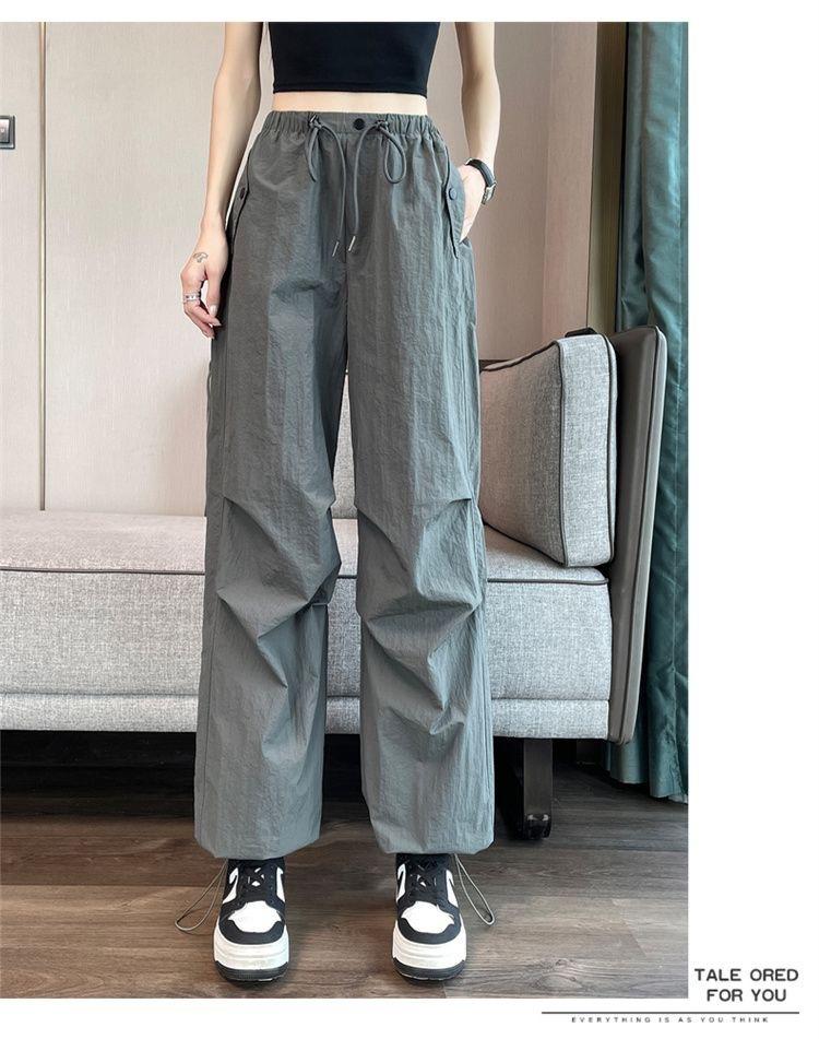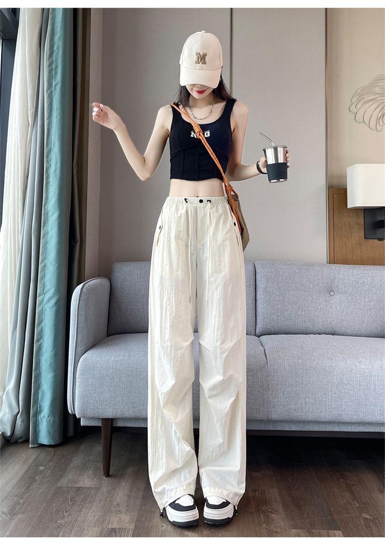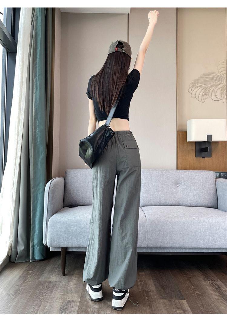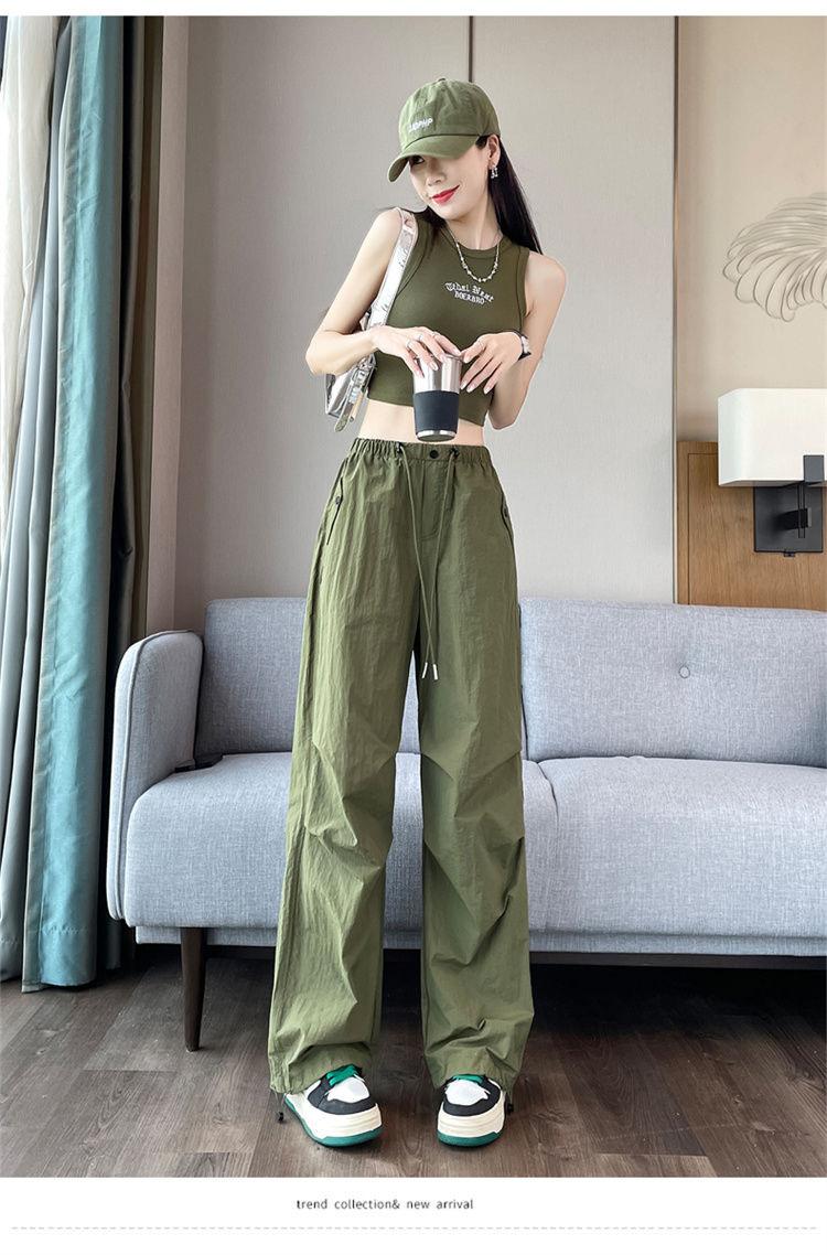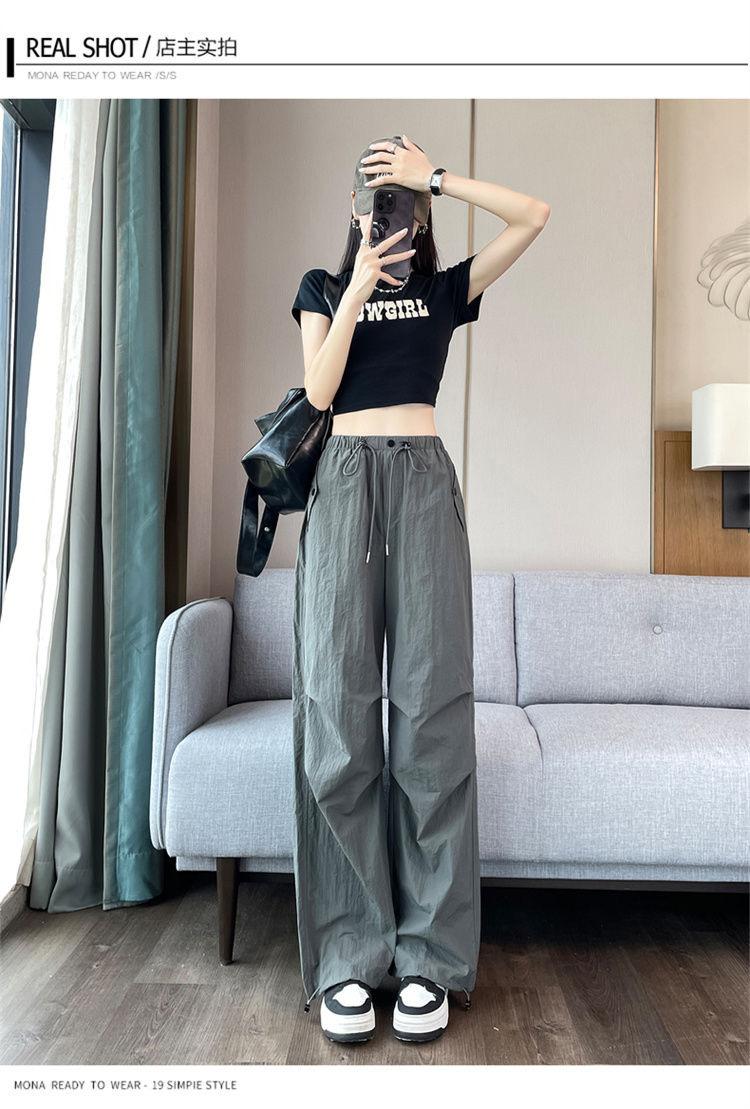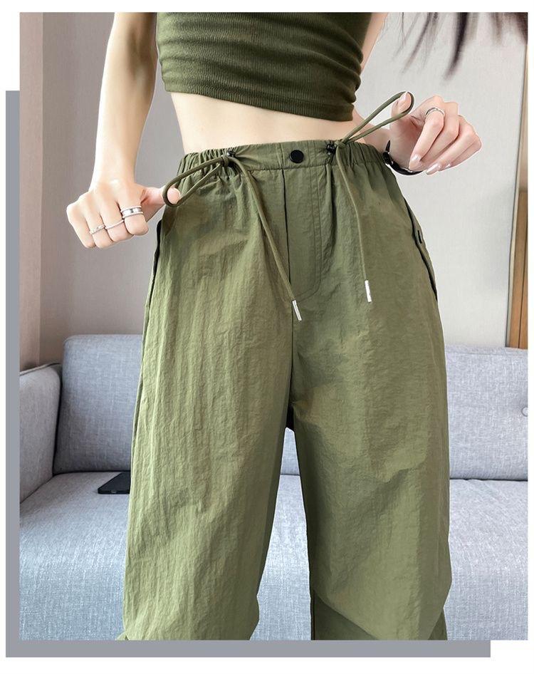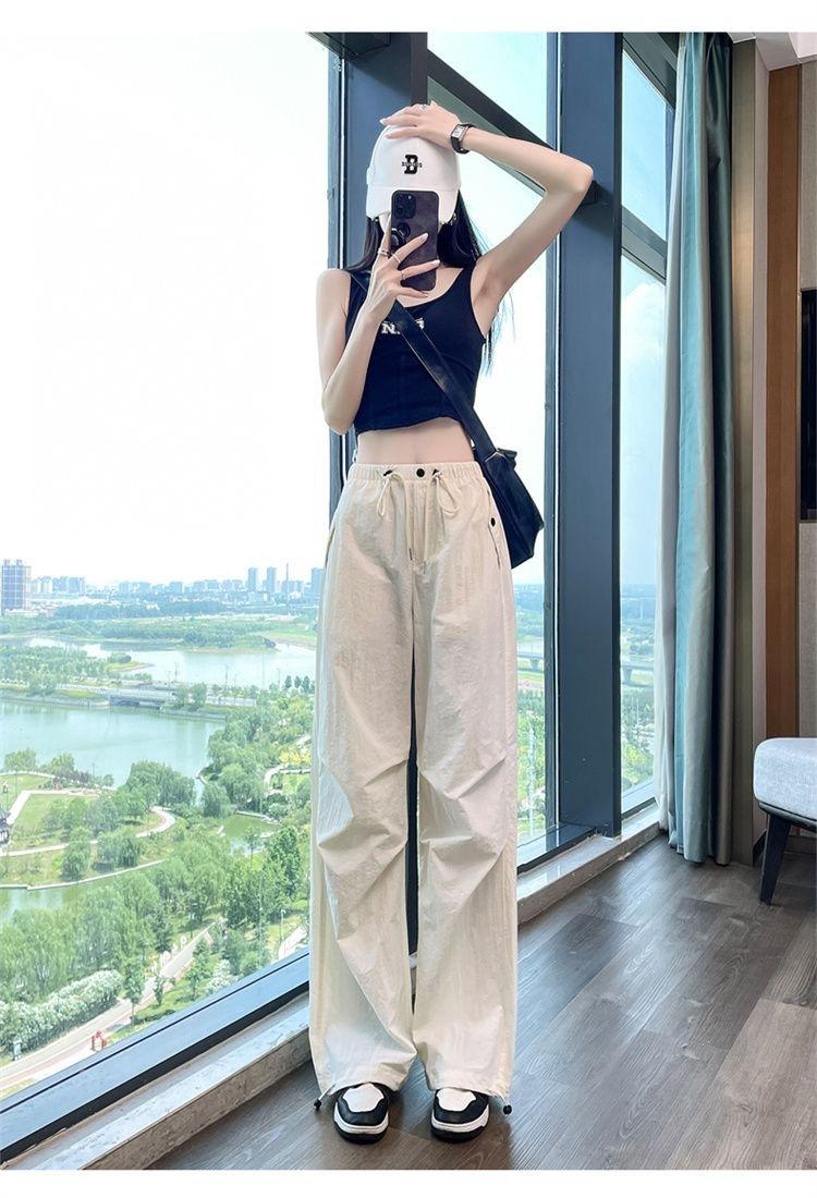 Mayoreo Nuevo Americano Seda de Hielo Petos Mujer 2025 Verano Delgados Atar a la Pierna Cintura Alta Pantalones Casuales Pantalones Deportivos Moderno