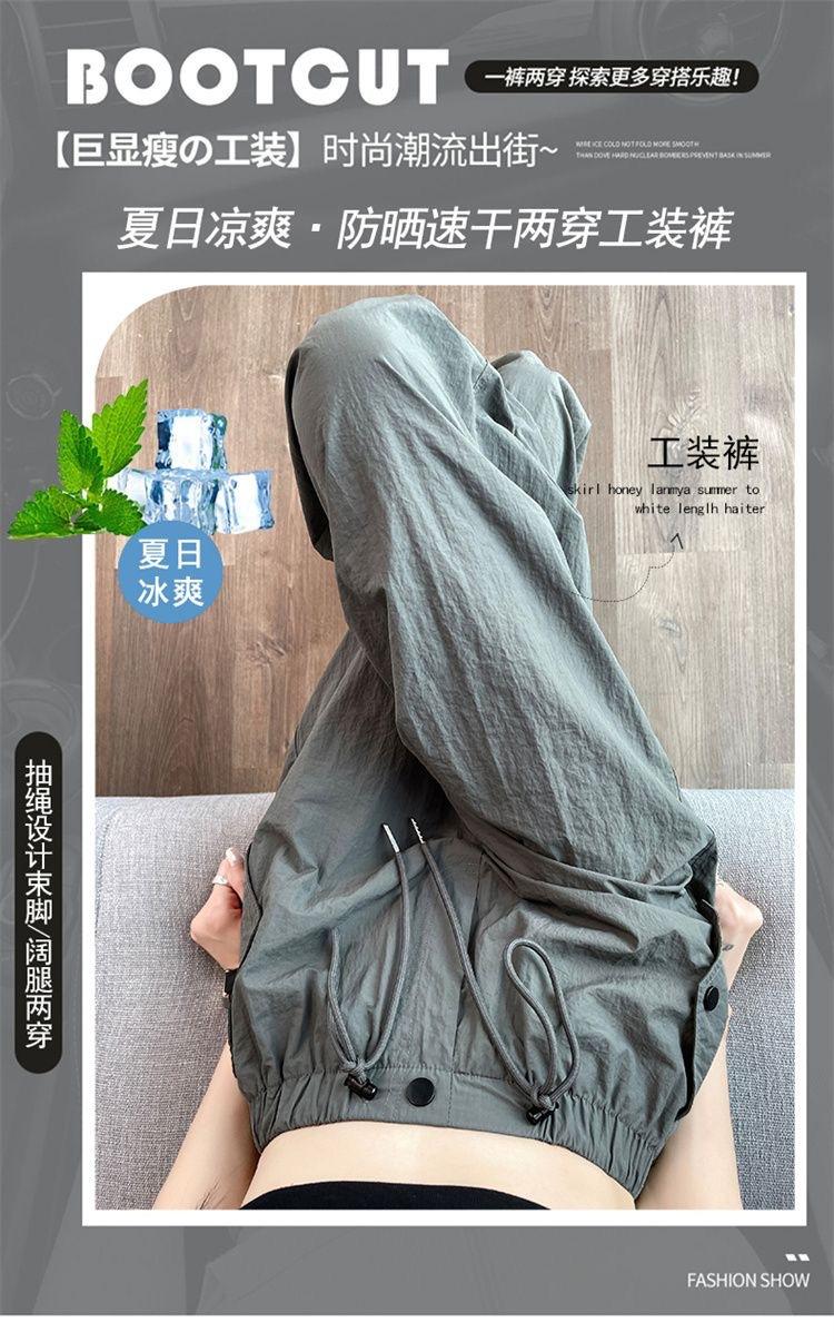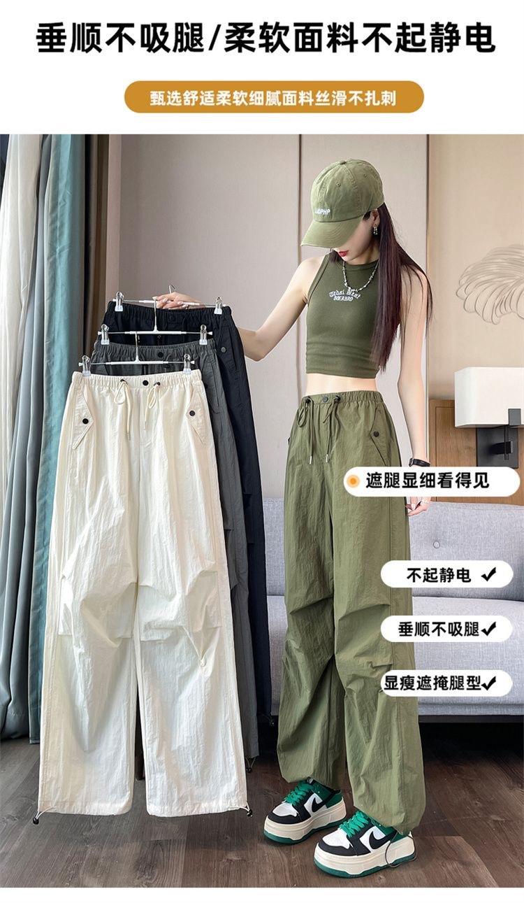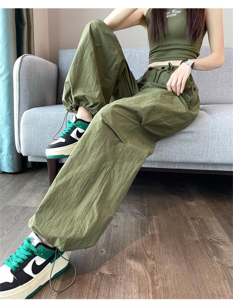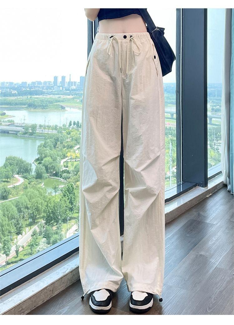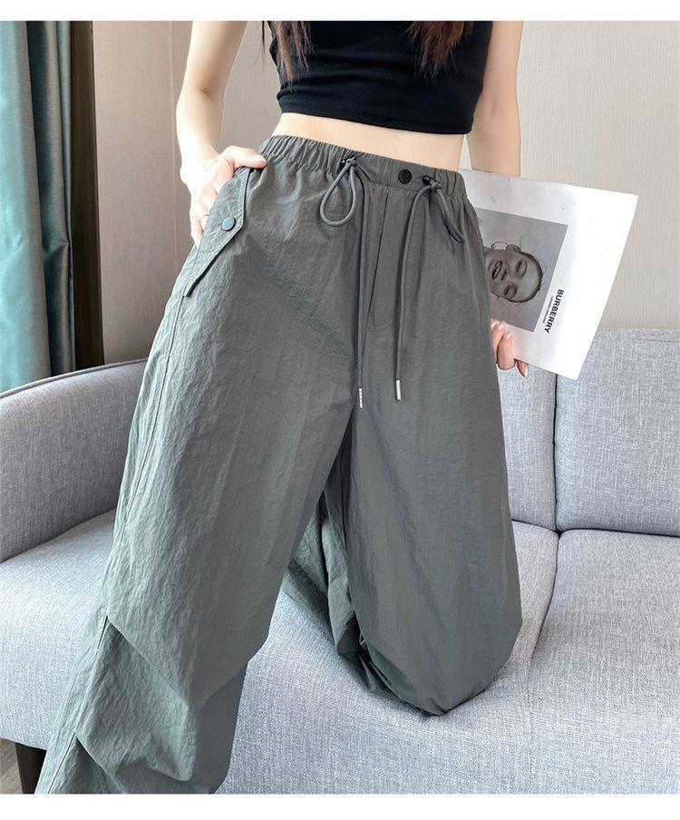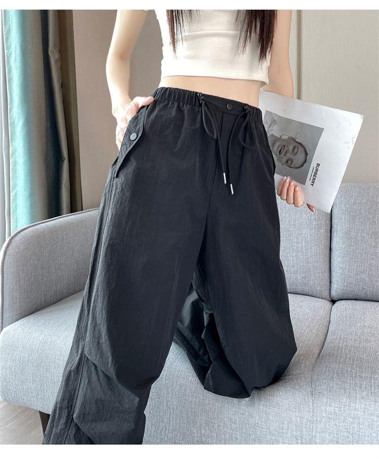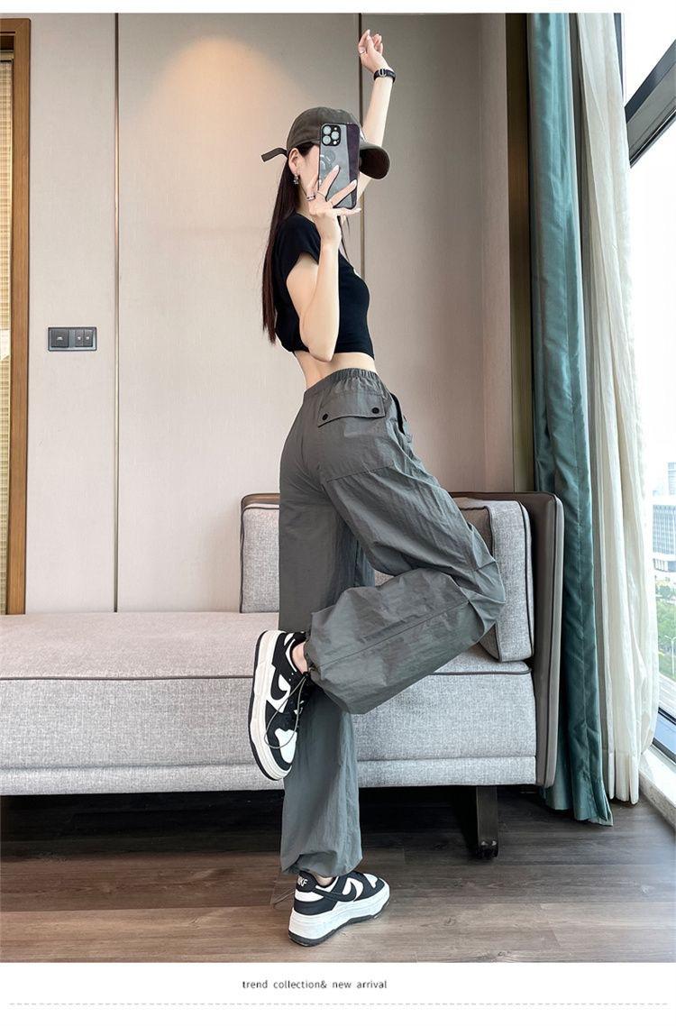 Mayoreo Nuevo Americano Seda de Hielo Petos Mujer 2025 Verano Delgados Atar a la Pierna Cintura Alta Pantalones Casuales Pantalones Deportivos Moderno