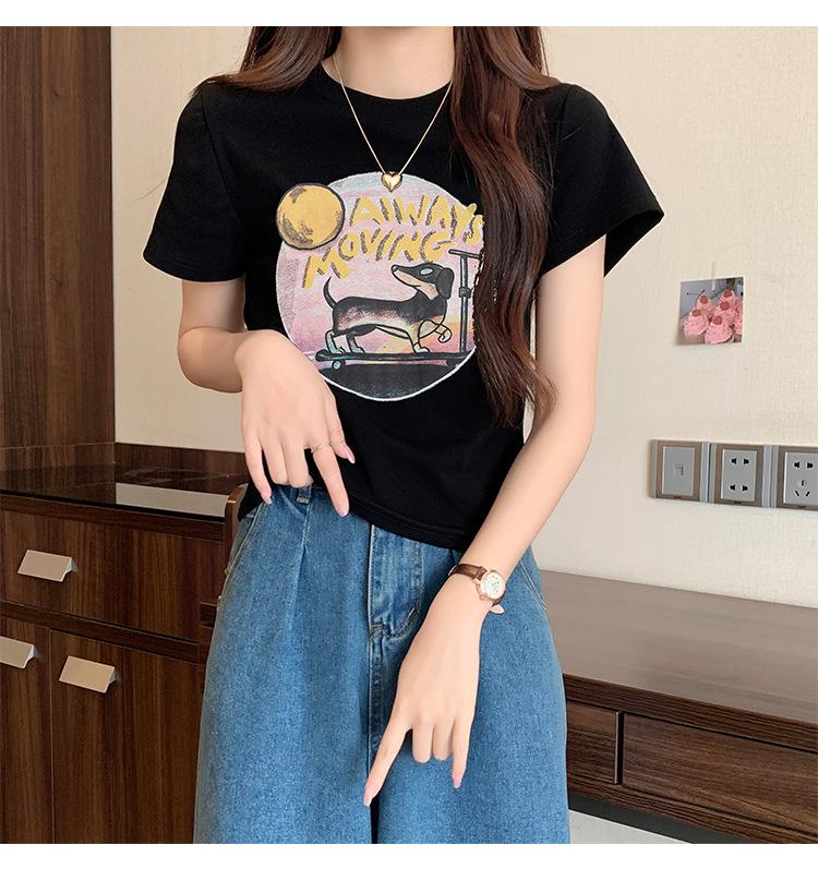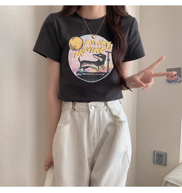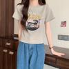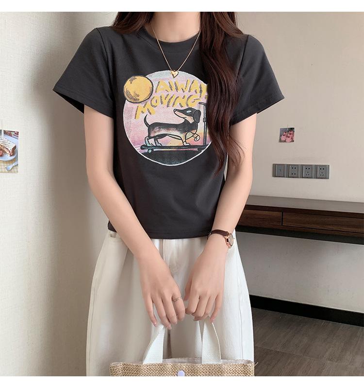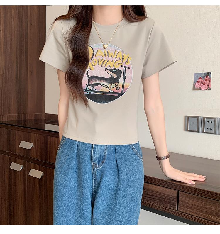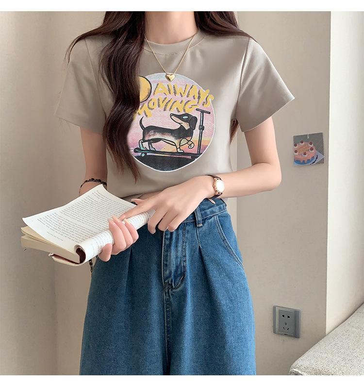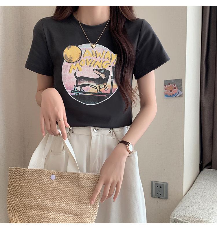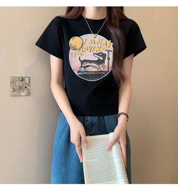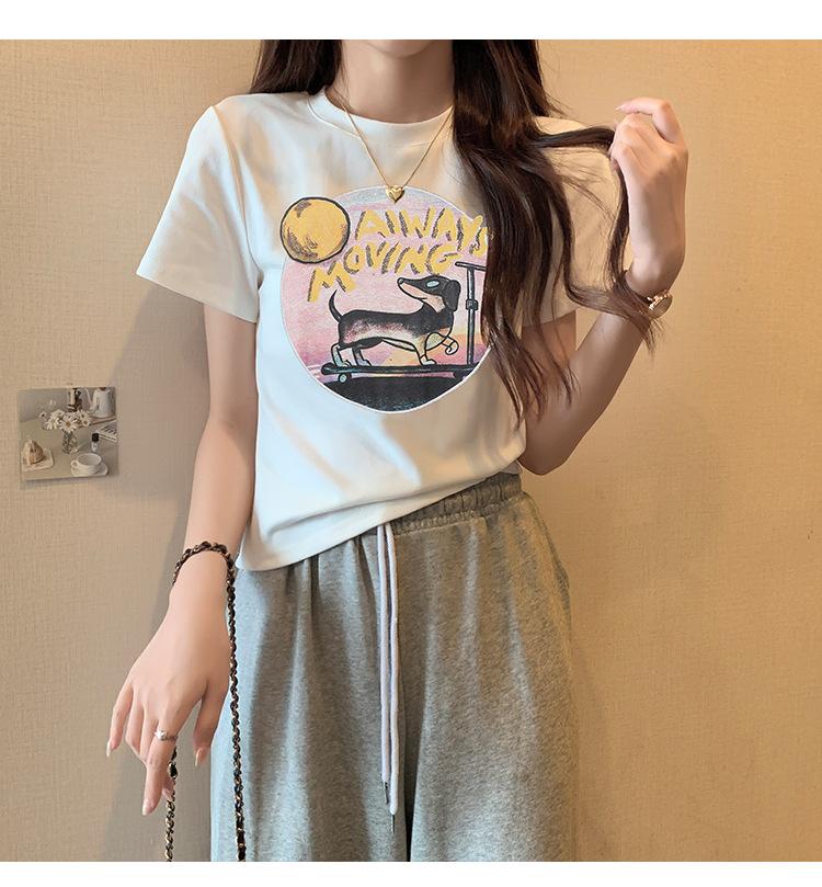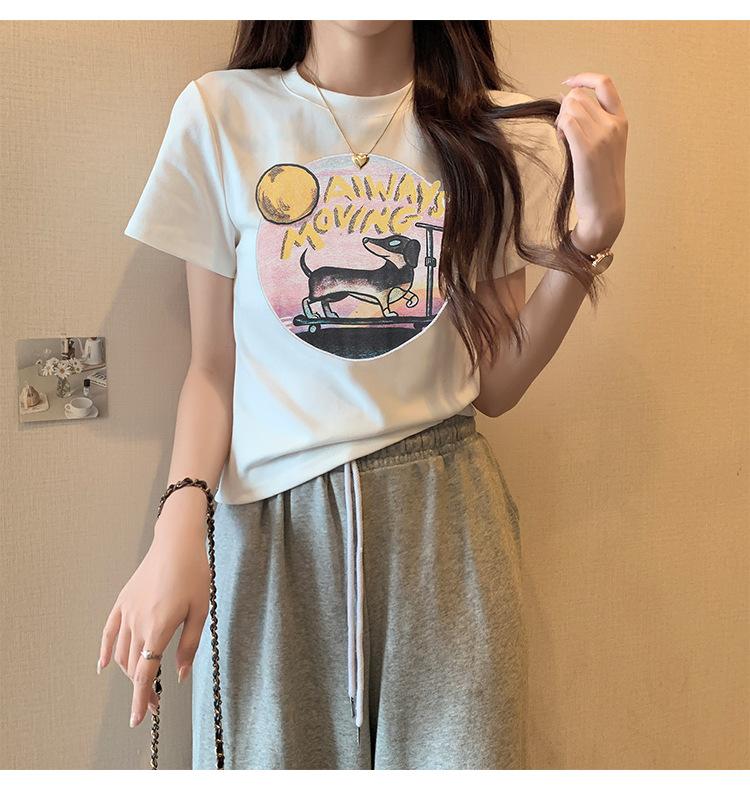 Camiseta de manga corta de marca de moda europea para mujer, nueva camiseta de verano con estampado informal y combinable.