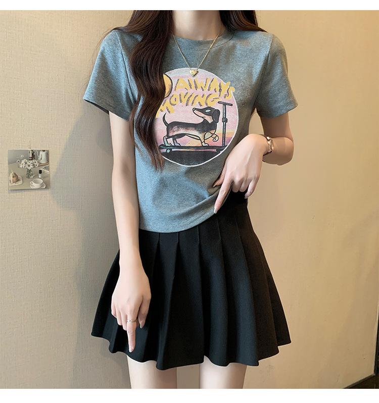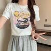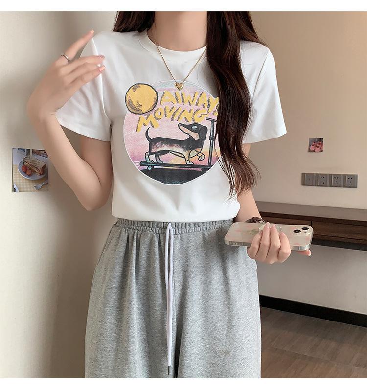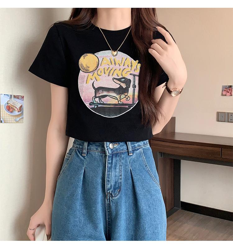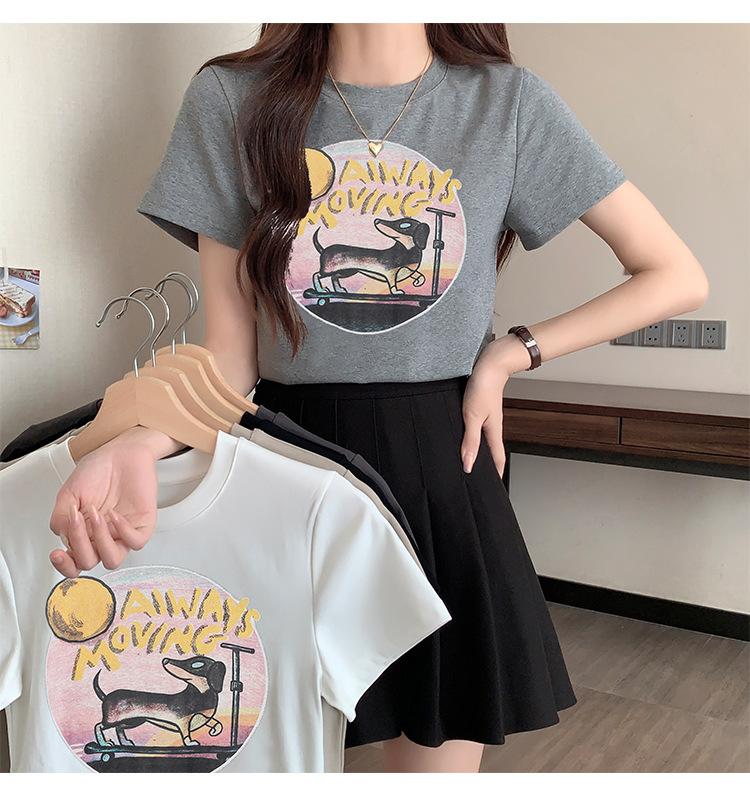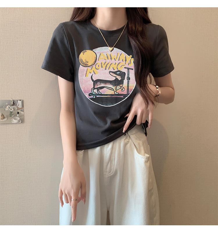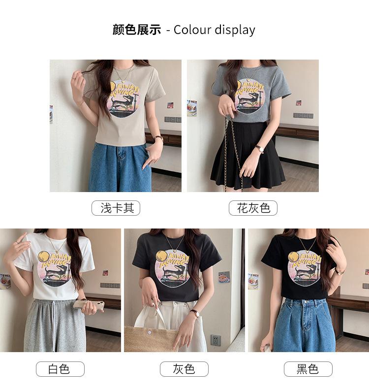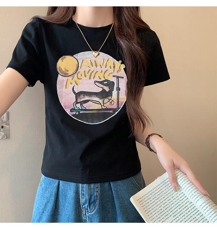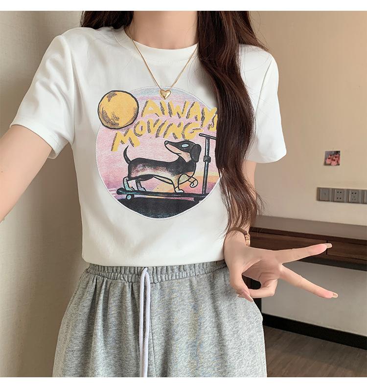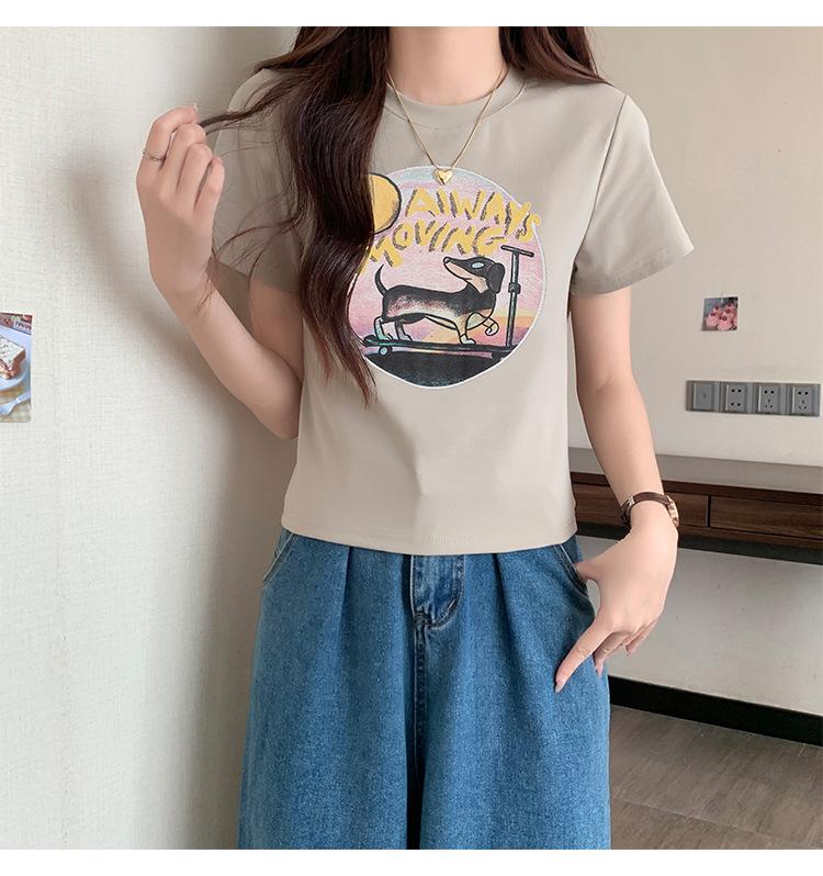 Camiseta de manga corta de marca de moda europea para mujer, nueva camiseta de verano con estampado informal y combinable.