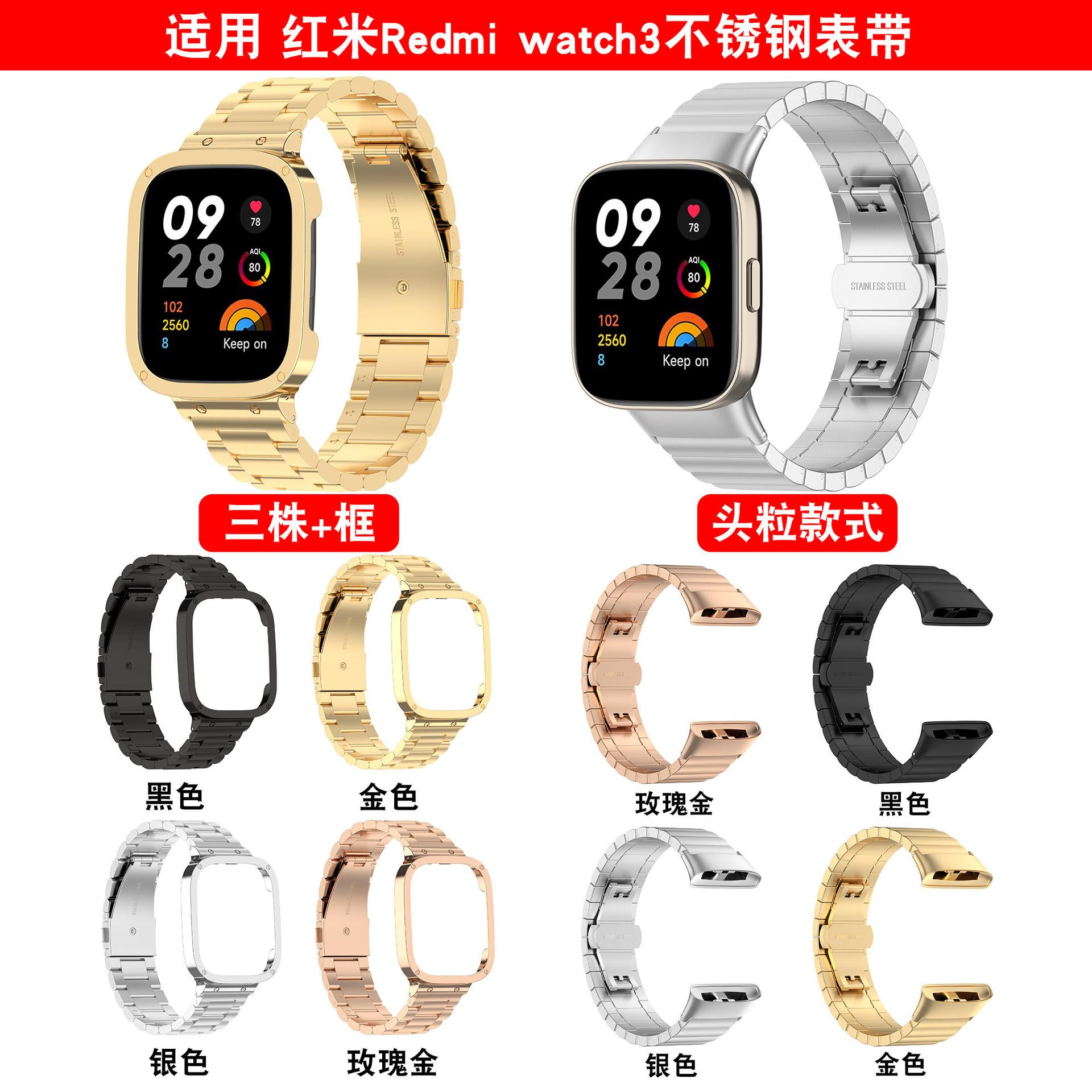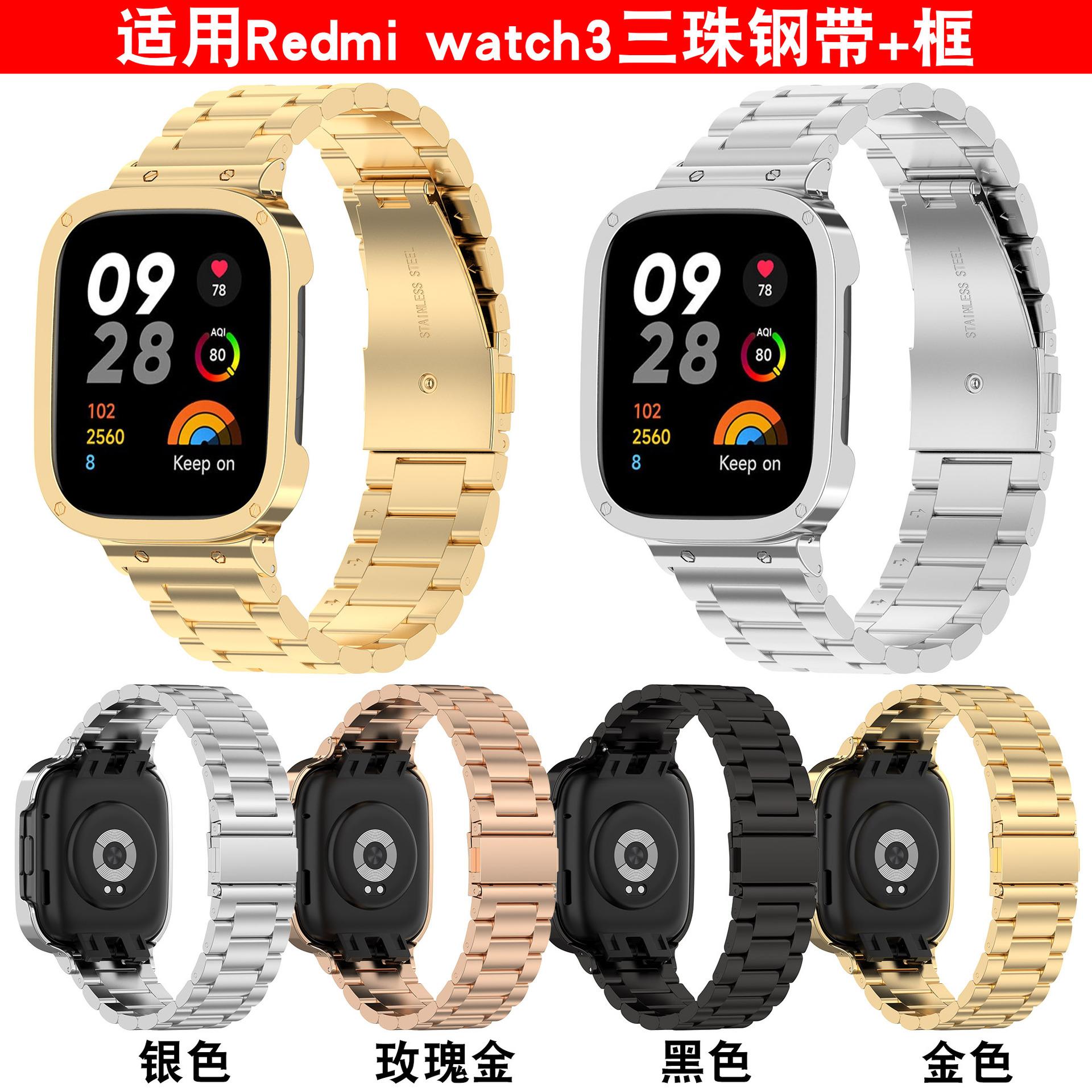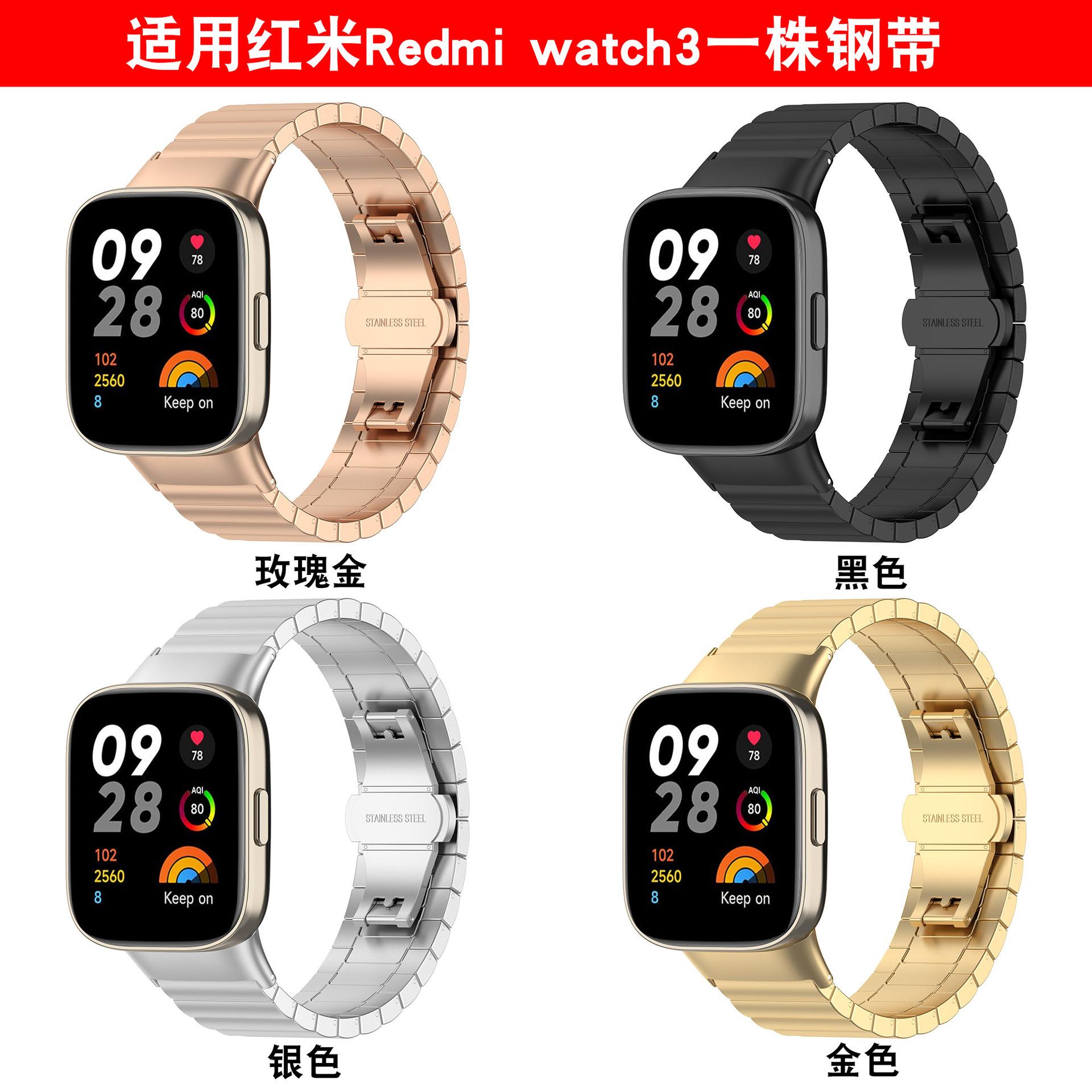 Adecuado para Redmi Watch 3 correa de acero inoxidable de tres eslabones correa metálica con hebilla de mariposa de un eslabón para MI watch lite3