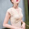 Camiseta de manga corta de punto de seda helada con cuello en V para mujer, estilo occidental de verano 2024, artículos europeos, camisa con cintura pequeña en quilates, top negro con hombros descubiertos