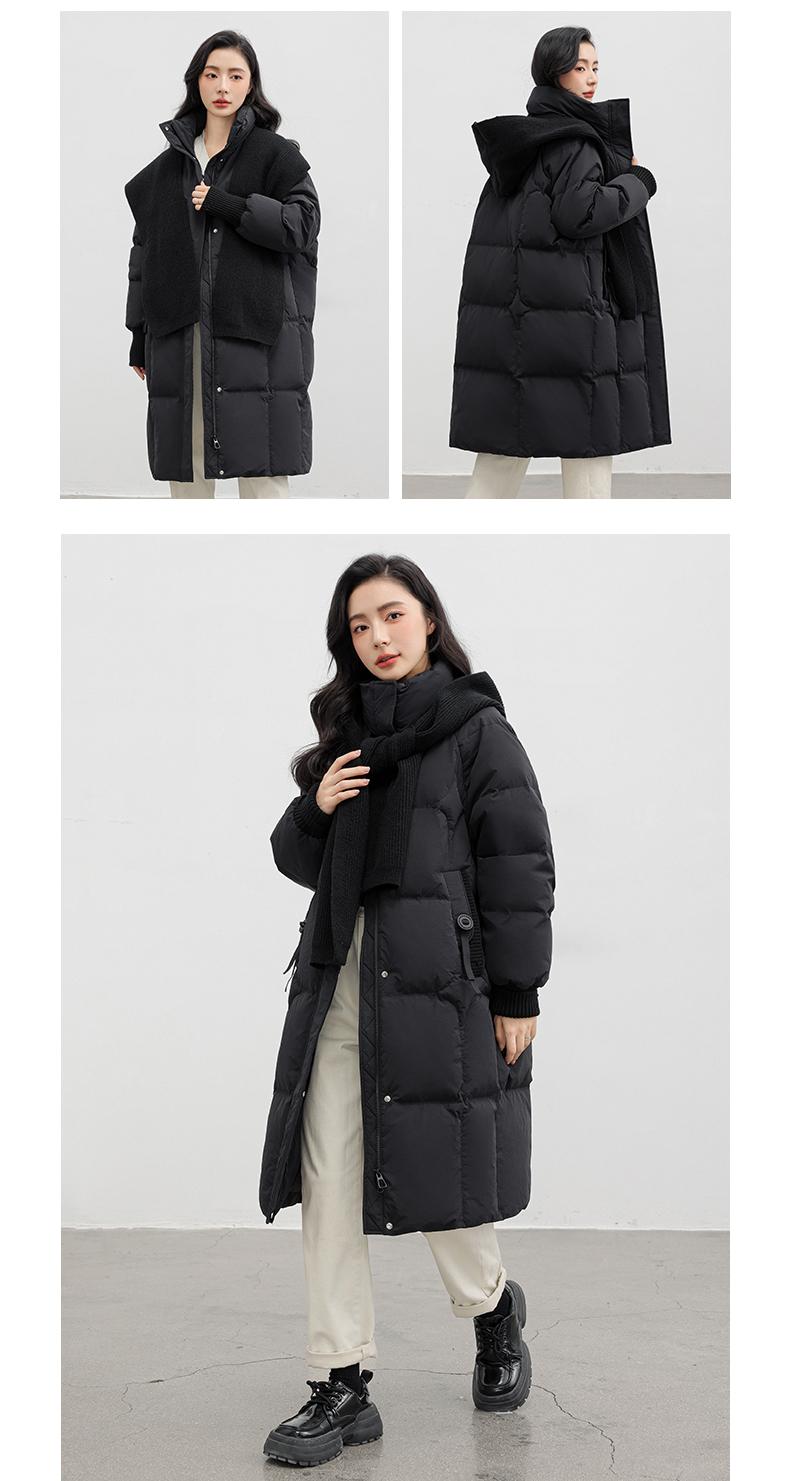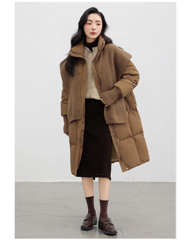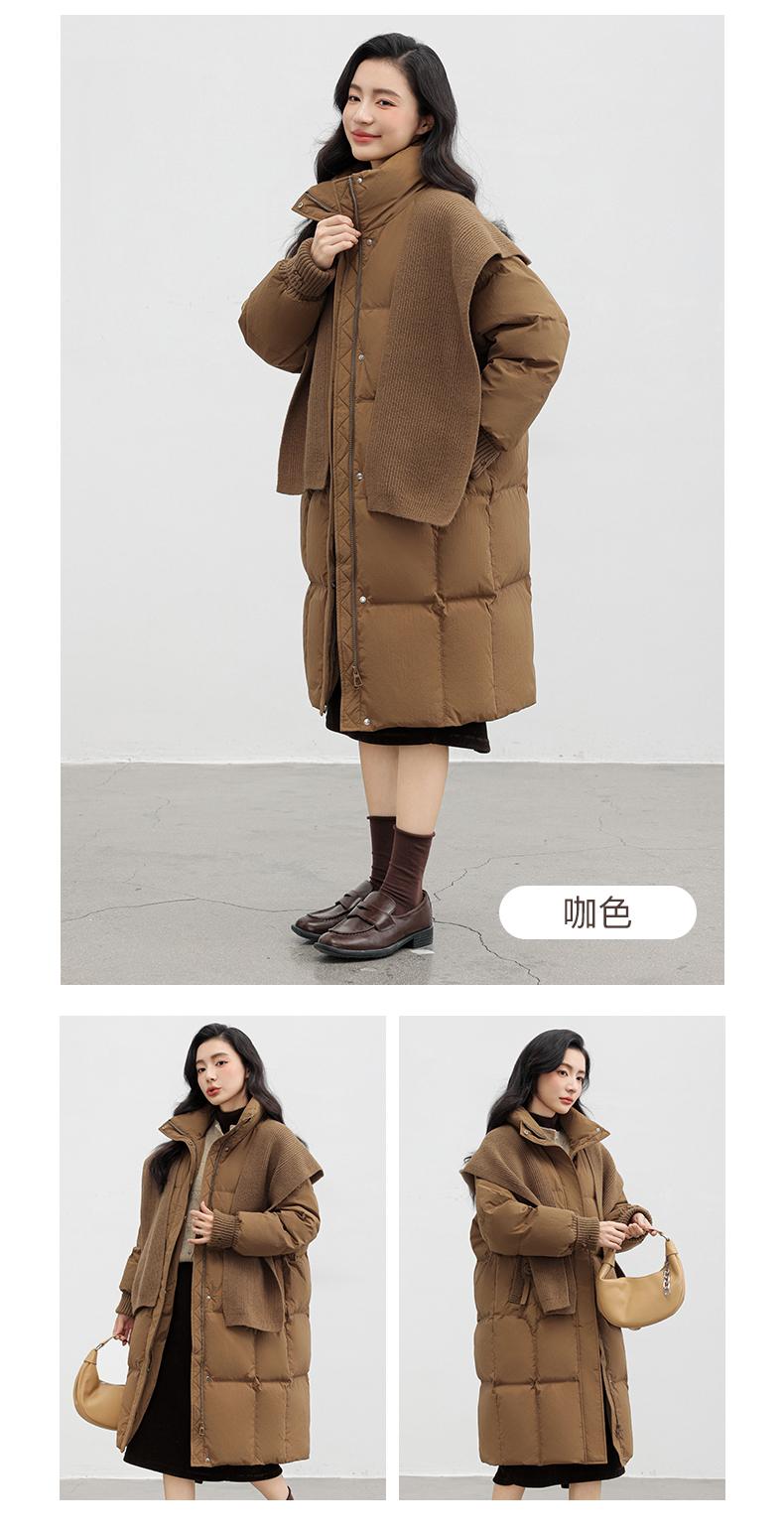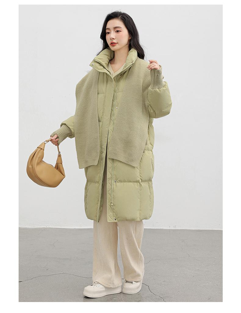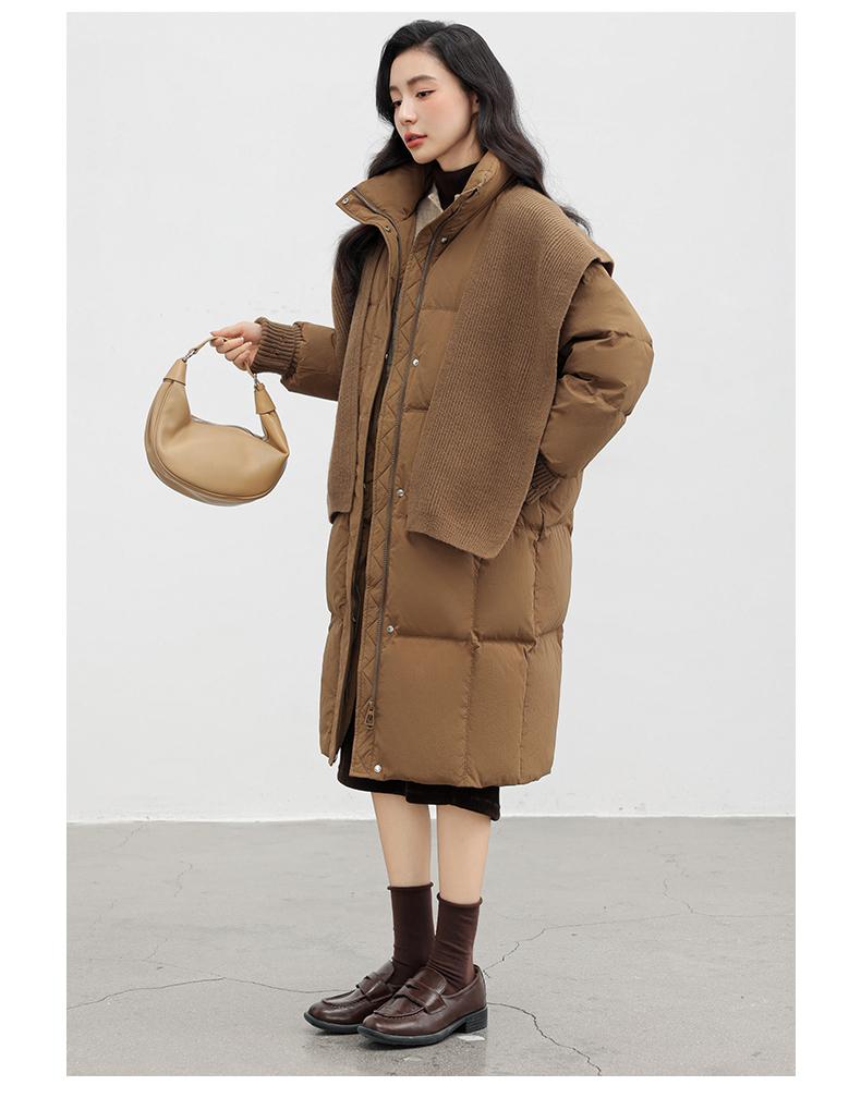 Chaqueta de plumón de pato para mujer 2024 Otoño e Invierno Nuevo Chal largo de punto Engrosado Cuello alto Suelto Cálido Chaqueta J