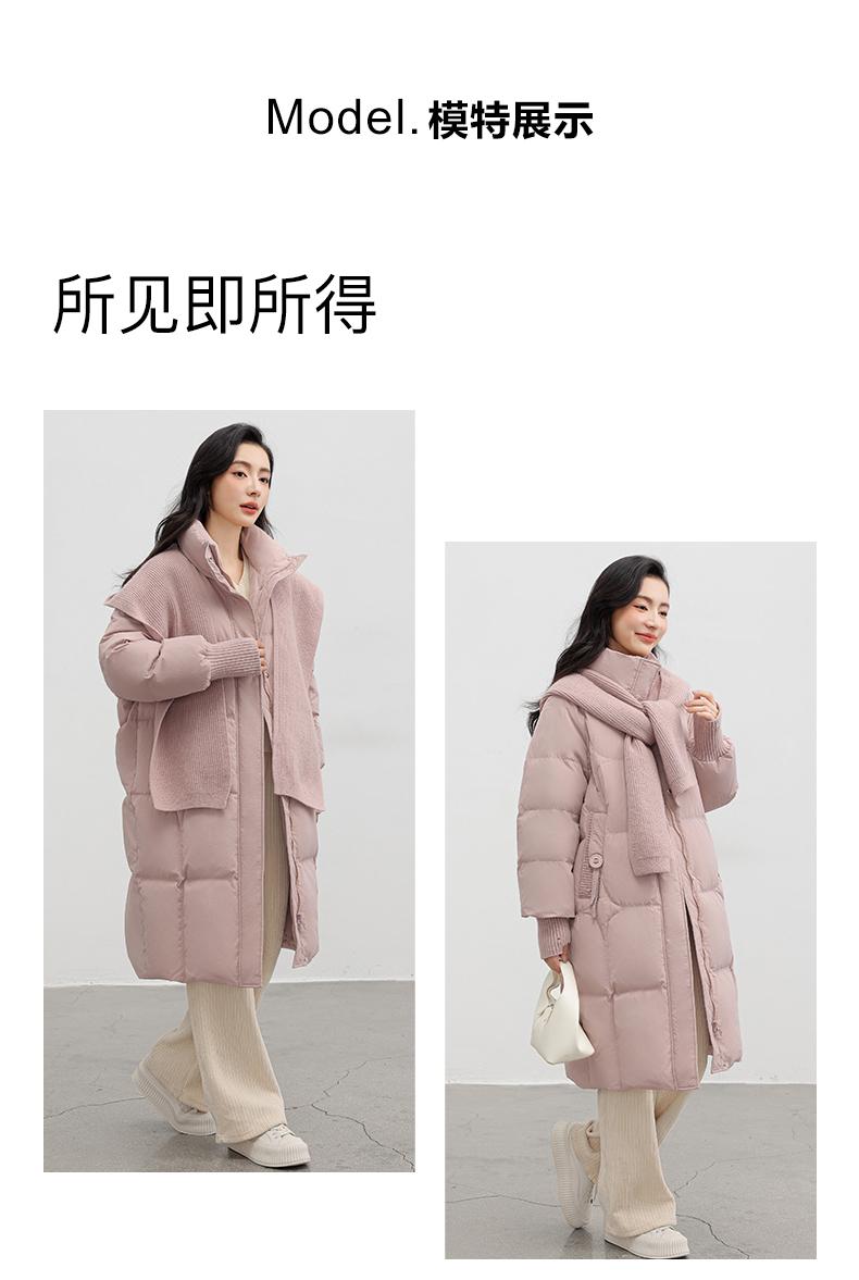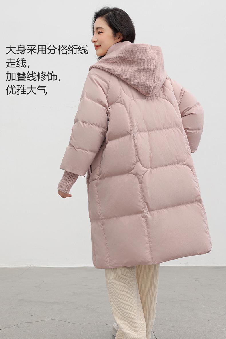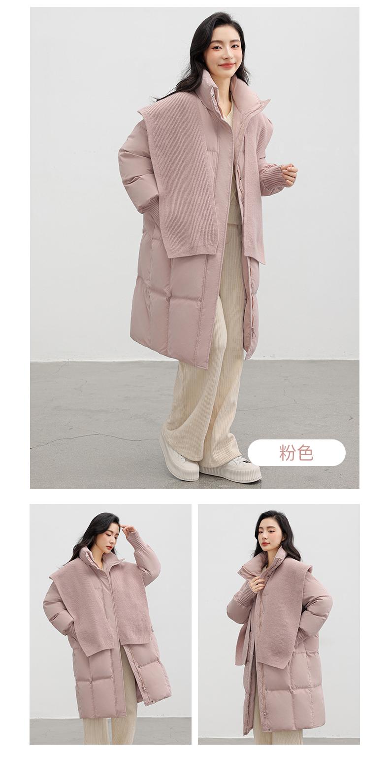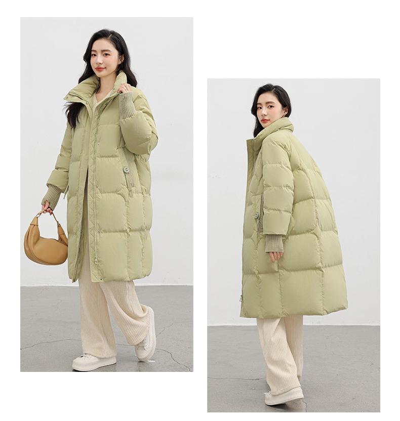 Chaqueta de plumón de pato para mujer 2024 Otoño e Invierno Nuevo Chal largo de punto Engrosado Cuello alto Suelto Cálido Chaqueta J