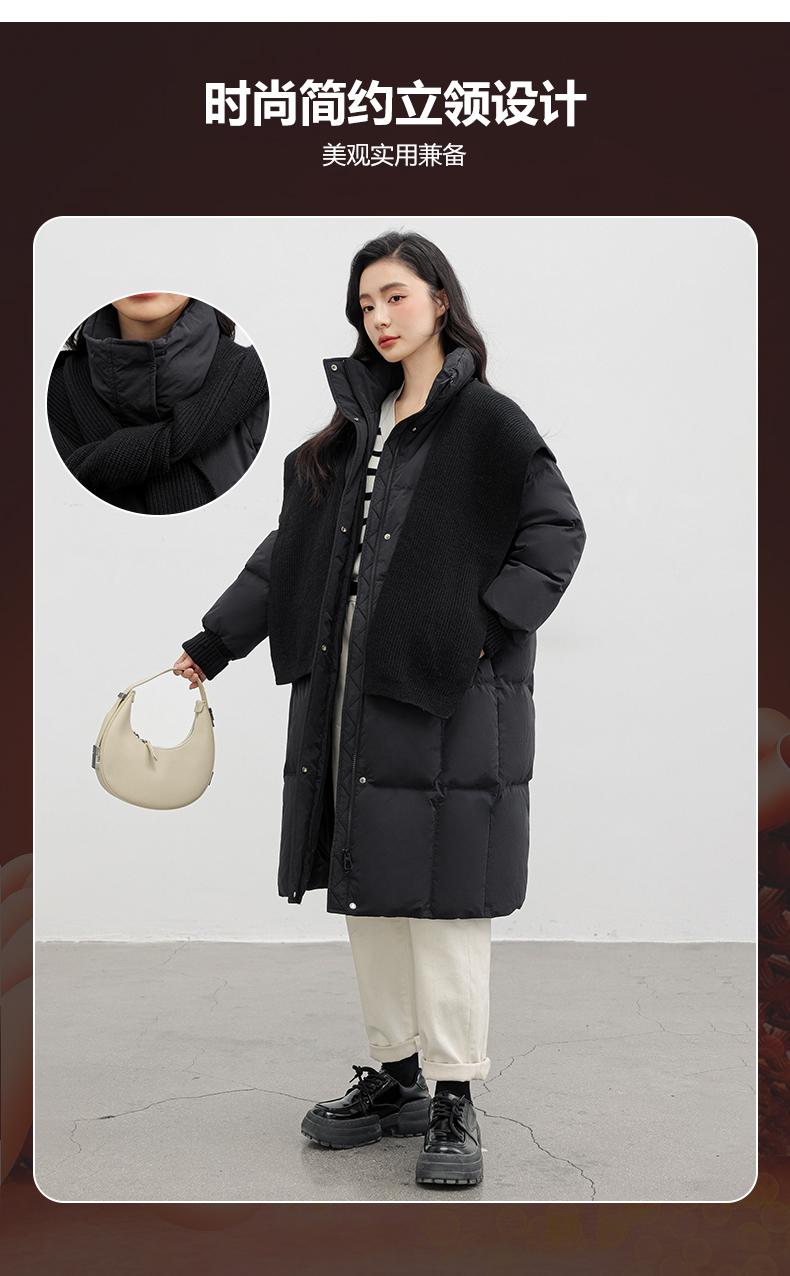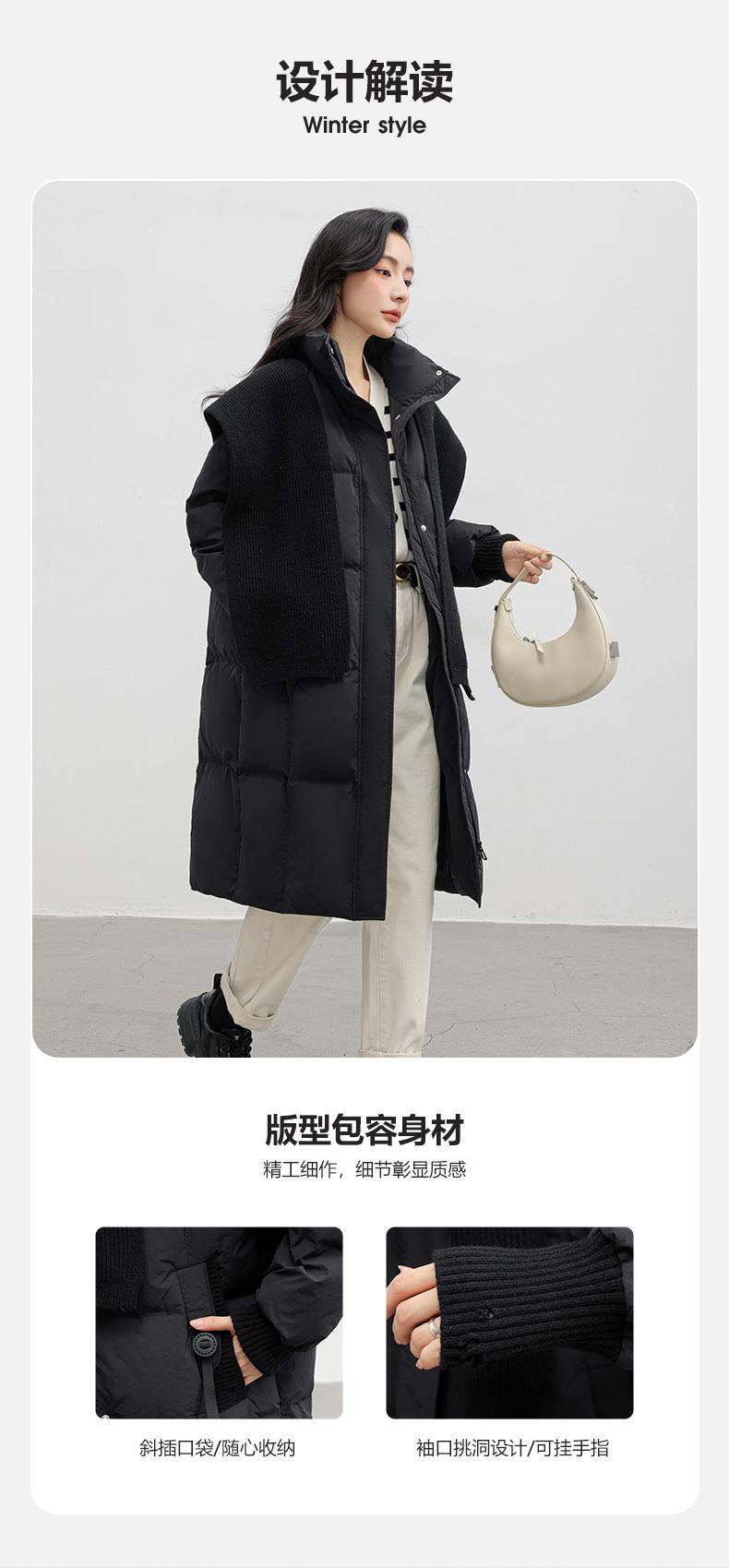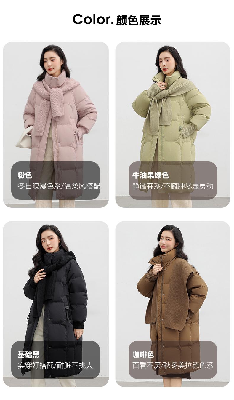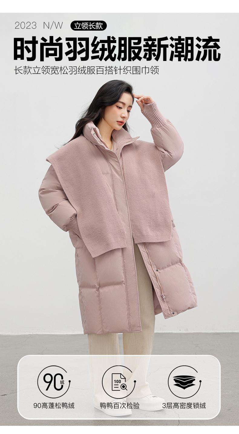 Chaqueta de plumón de pato para mujer 2024 Otoño e Invierno Nuevo Chal largo de punto Engrosado Cuello alto Suelto Cálido Chaqueta J