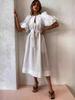 Vestido largo con cuello redondo, mangas abullonadas y cinturón, para mujer, primavera 2024, comercio exterior transfronterizo europeo y americano