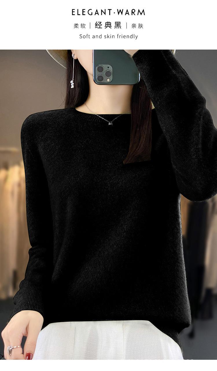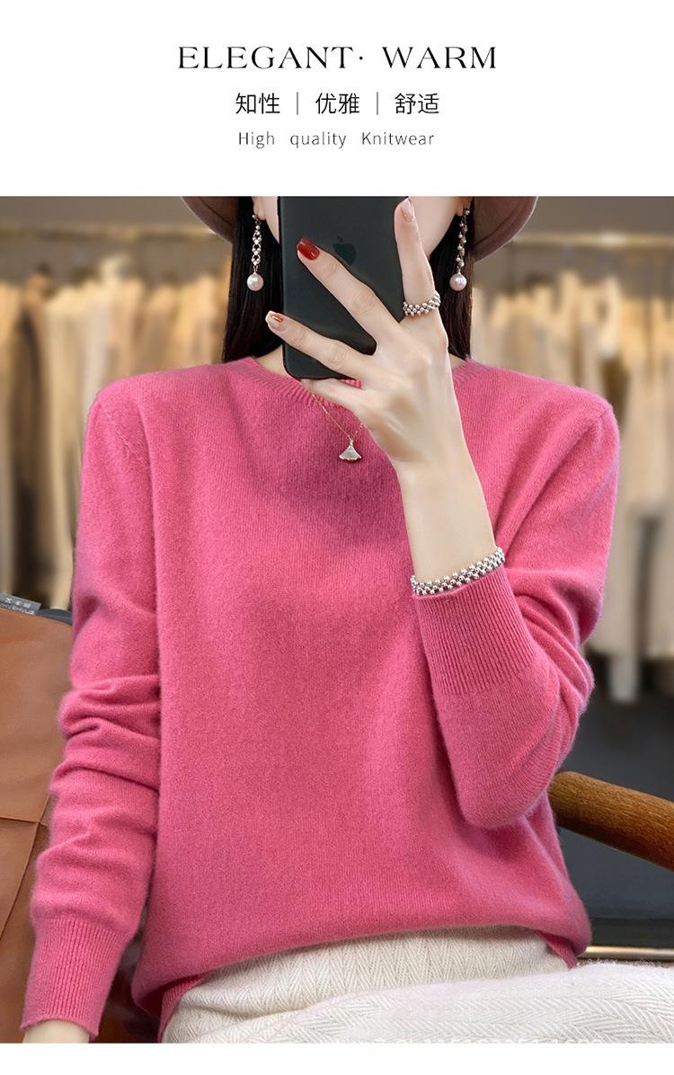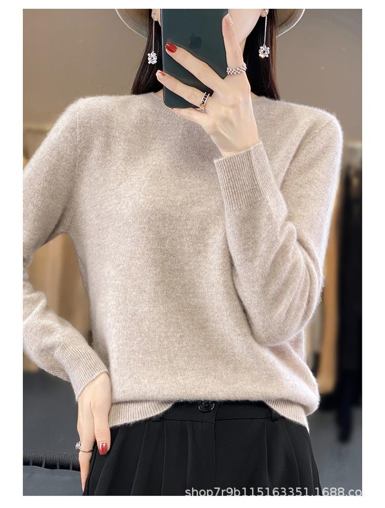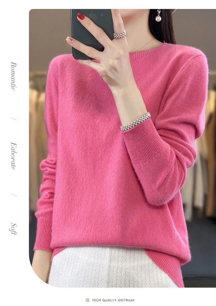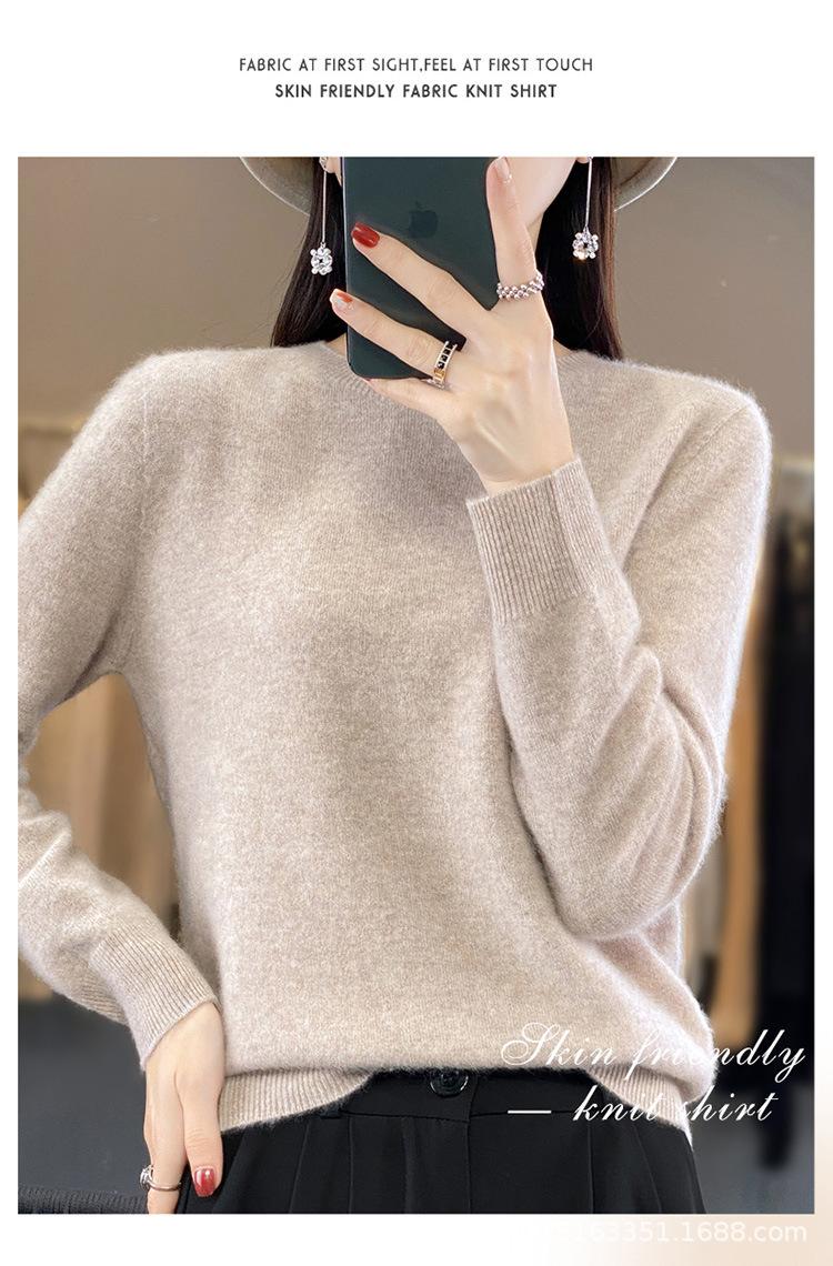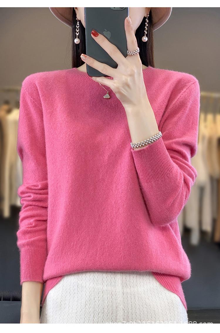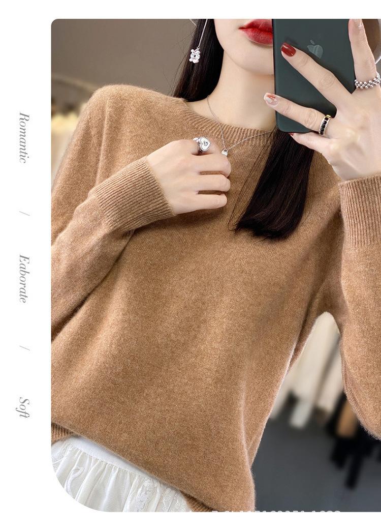 Suéter de cuello redondo para mujer, nuevo jersey de primera línea listo para usar, suelto, de color sólido, con temperamento simple, para otoño e invierno.