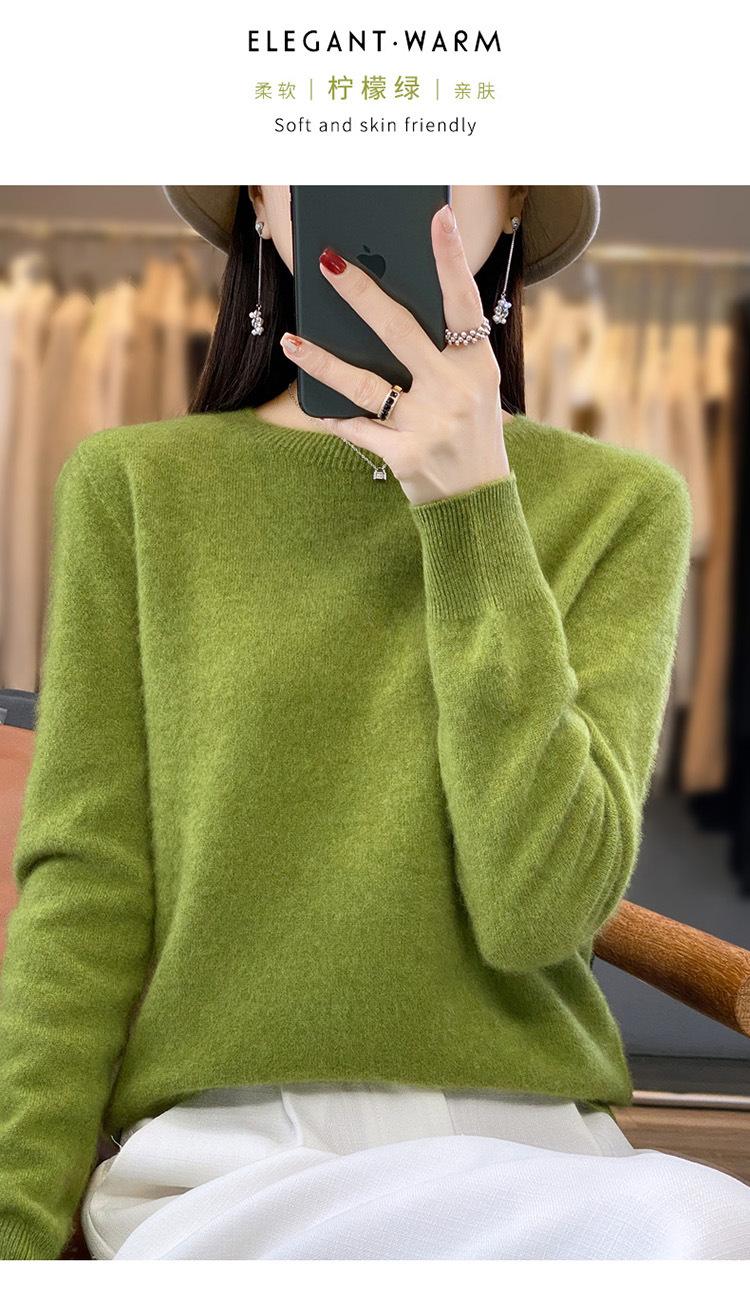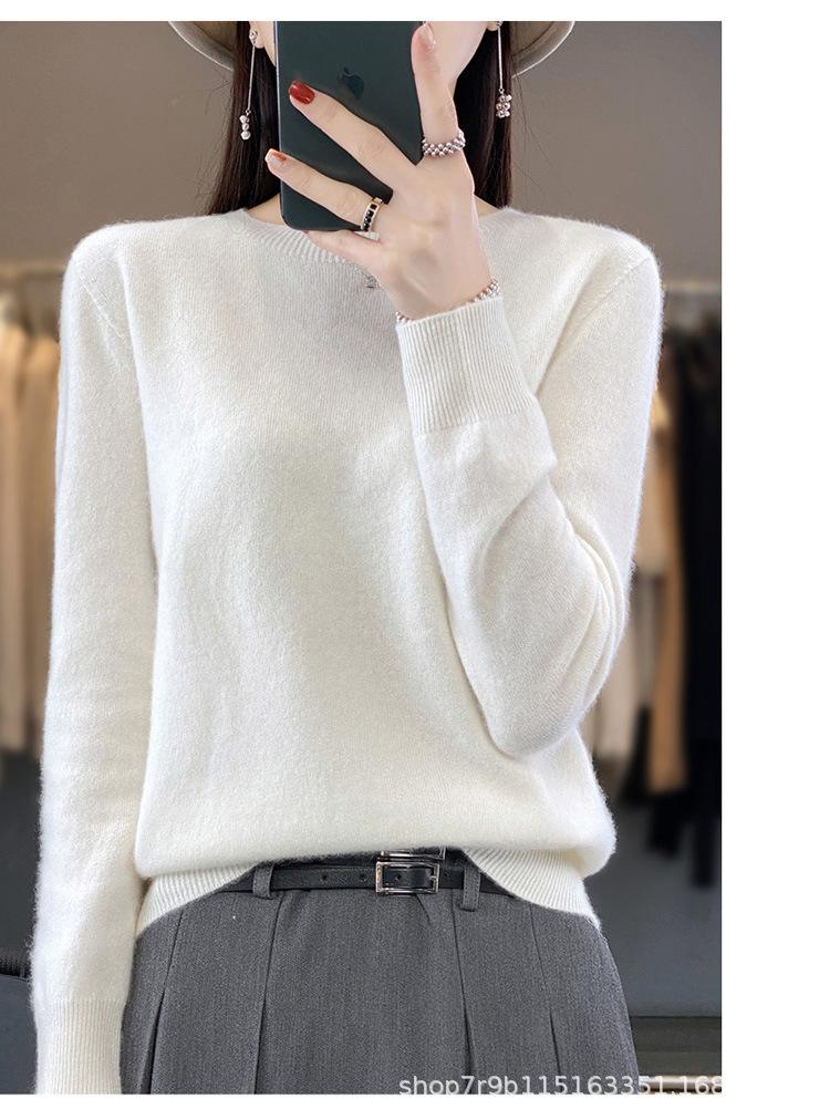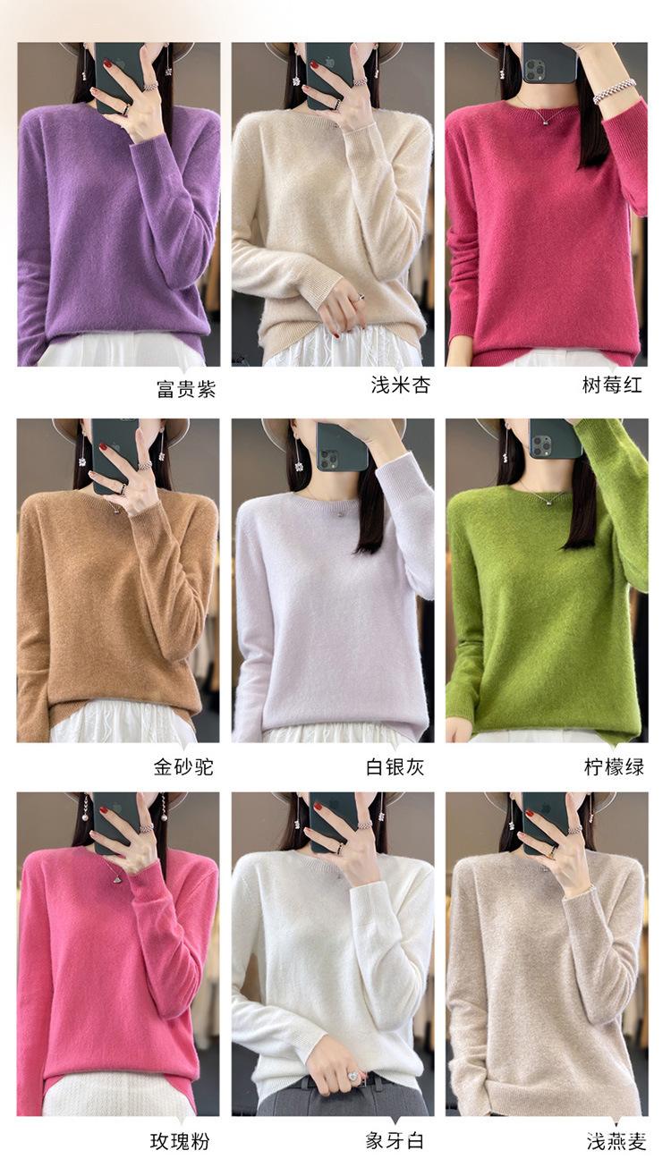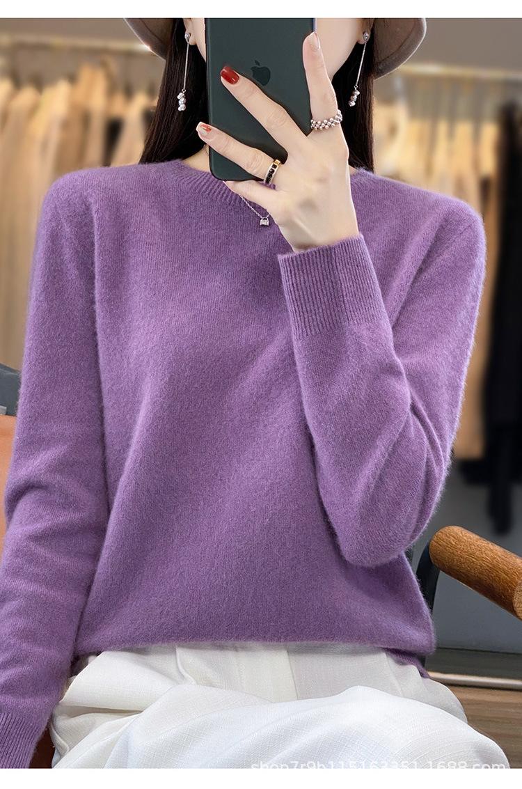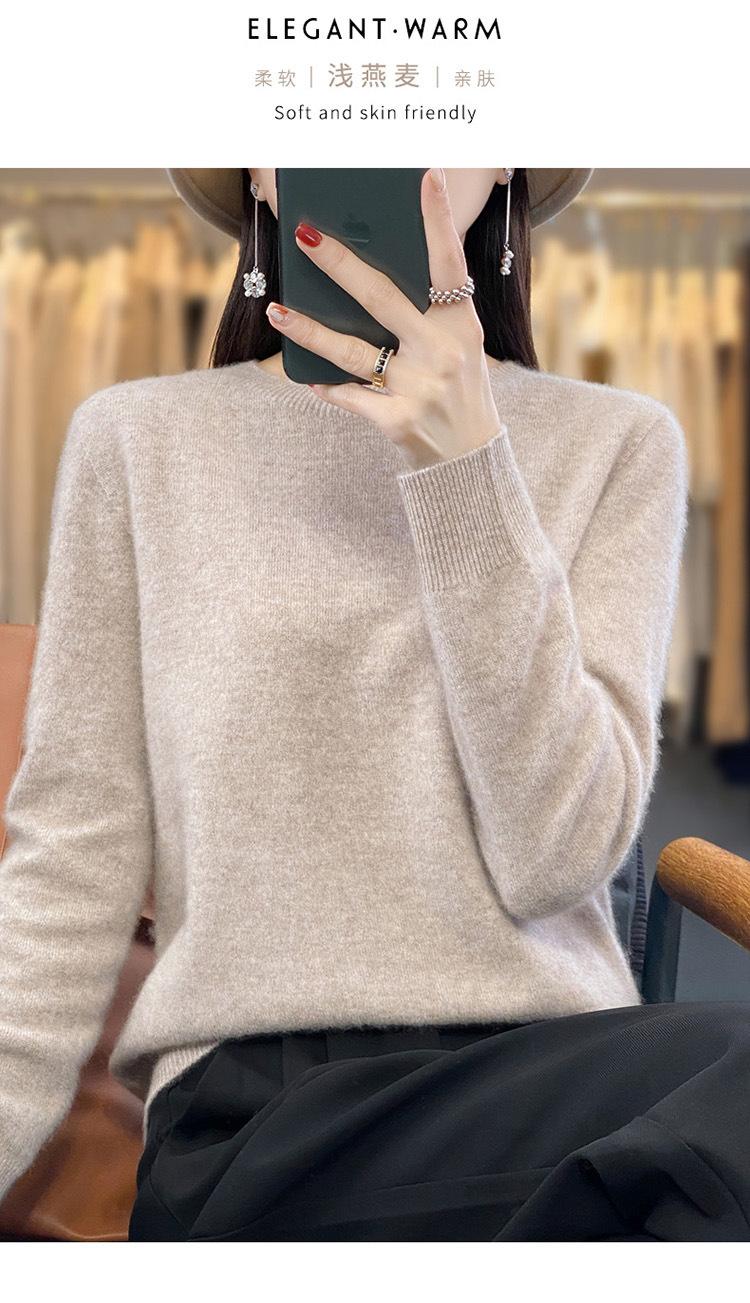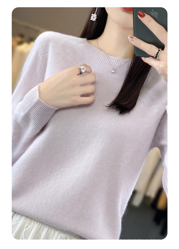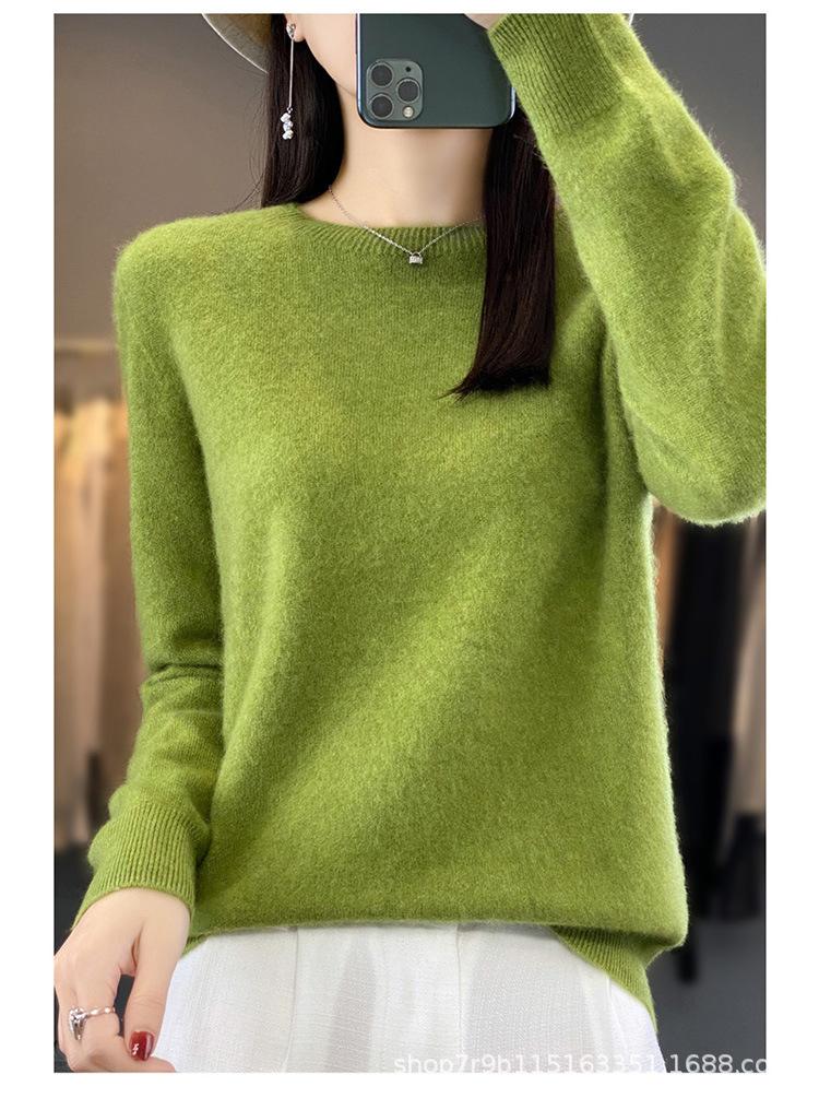 Suéter de cuello redondo para mujer, nuevo jersey de primera línea listo para usar, suelto, de color sólido, con temperamento simple, para otoño e invierno.