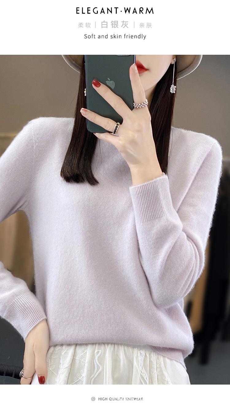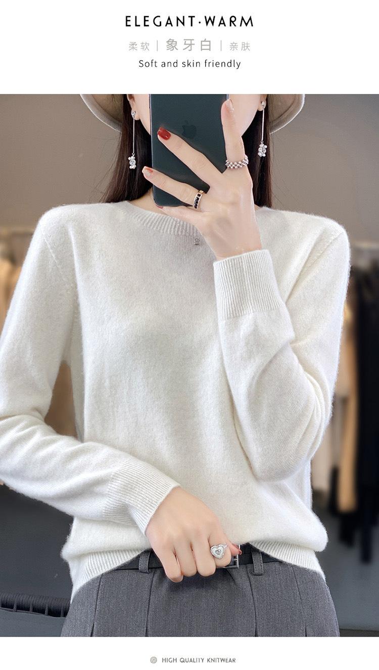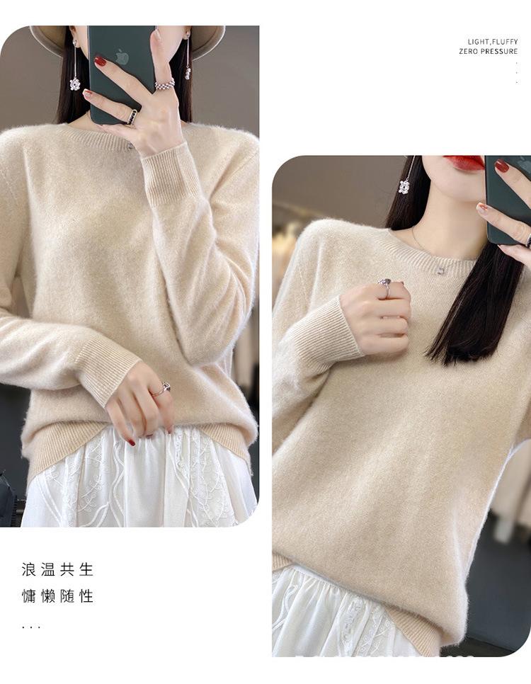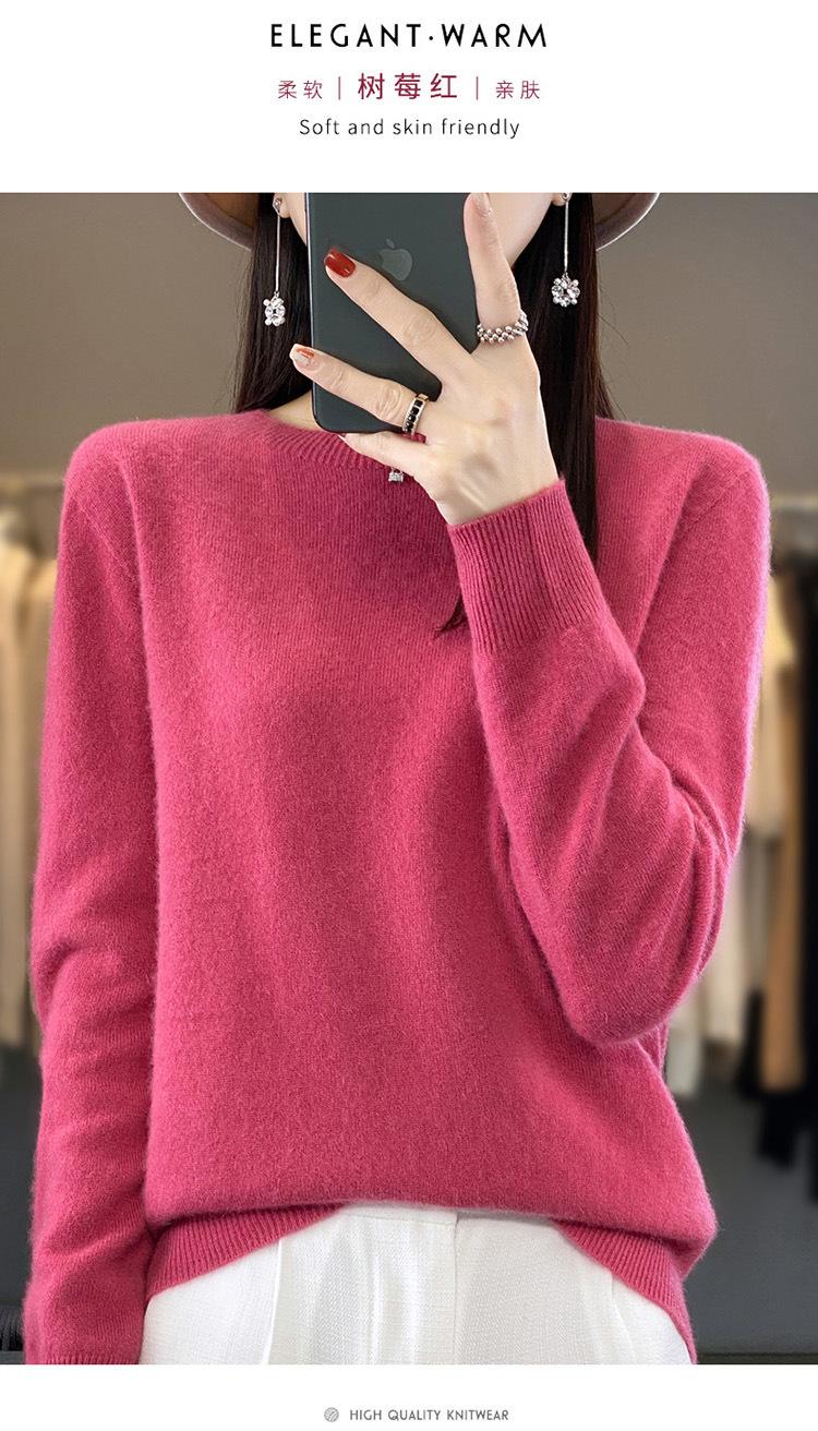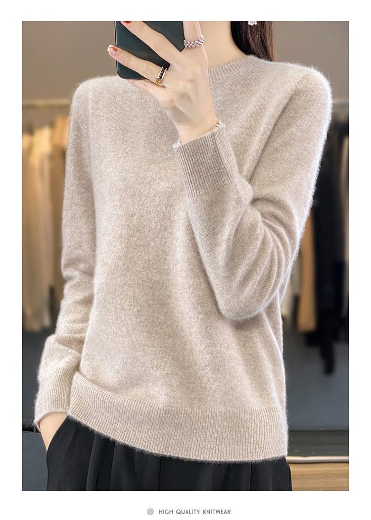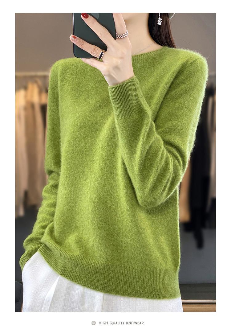 Suéter de cuello redondo para mujer, nuevo jersey de primera línea listo para usar, suelto, de color sólido, con temperamento simple, para otoño e invierno.