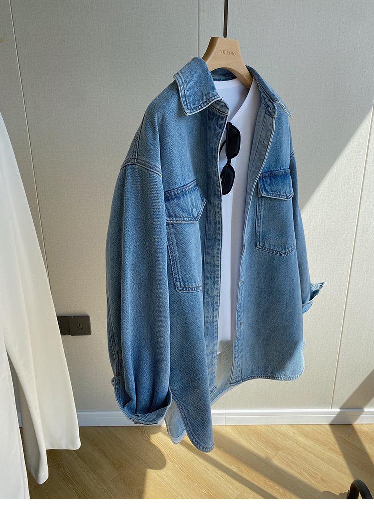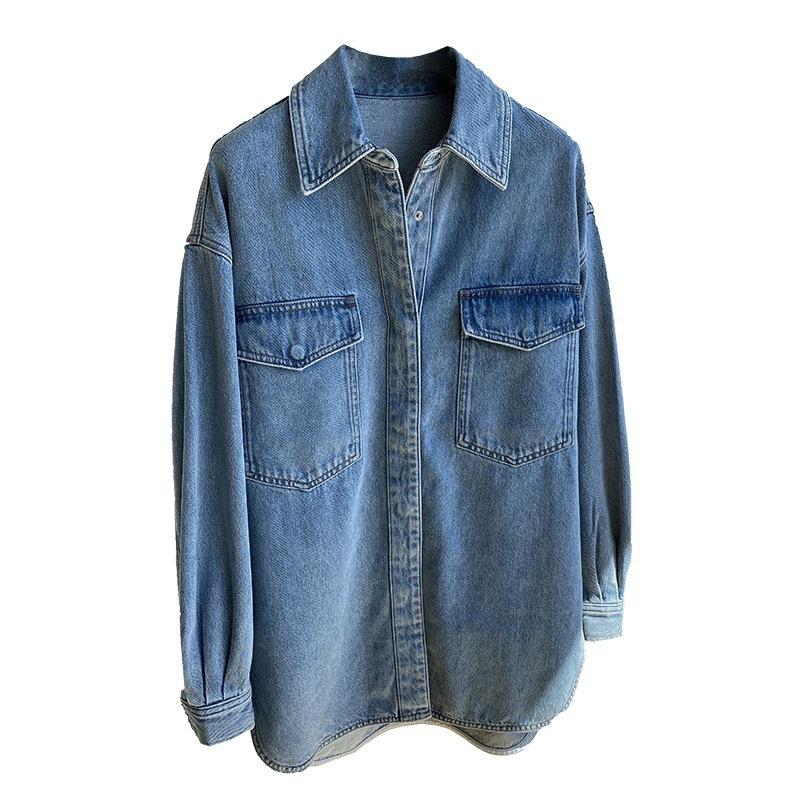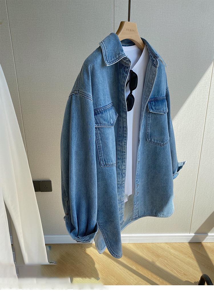 ¡Cierra los ojos! Chaqueta vaquera estilo boyfriend cool ~ estilo retro desgastado con doble bolsillo, estilo casual, para mujer, otoño nuevo