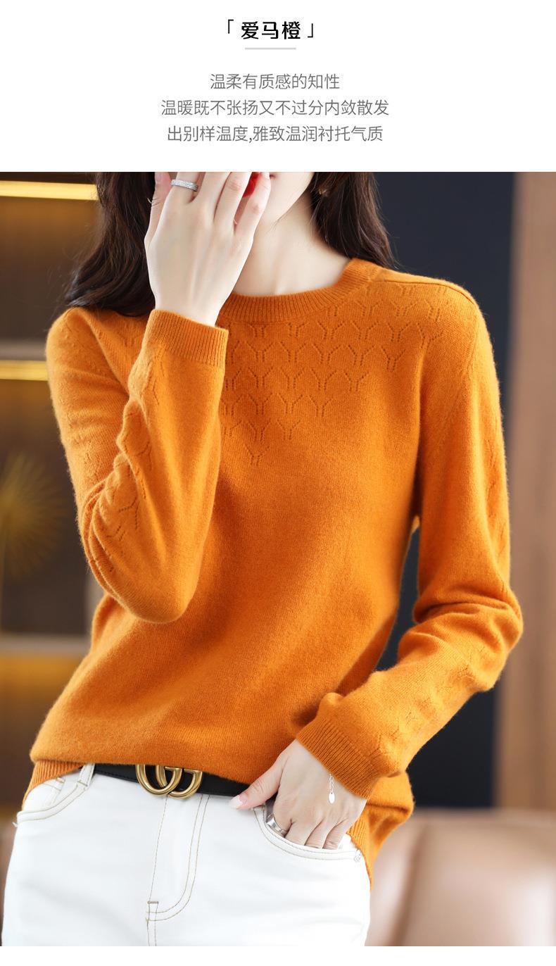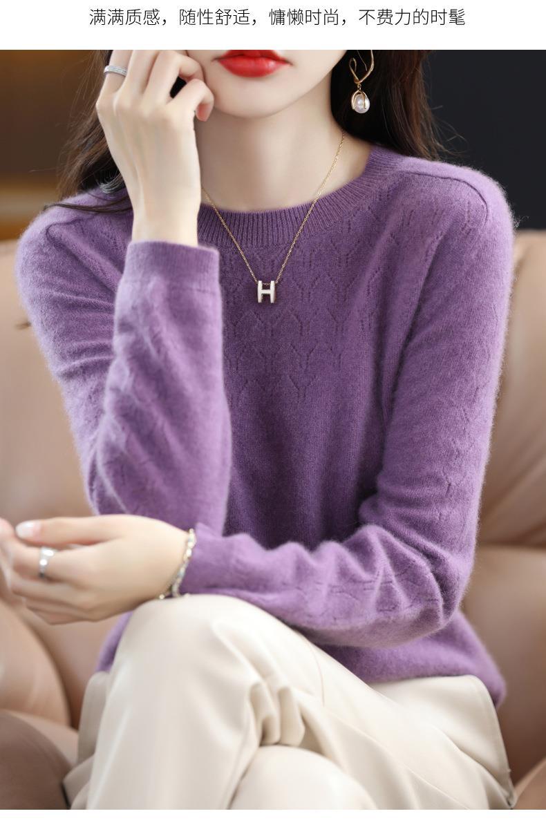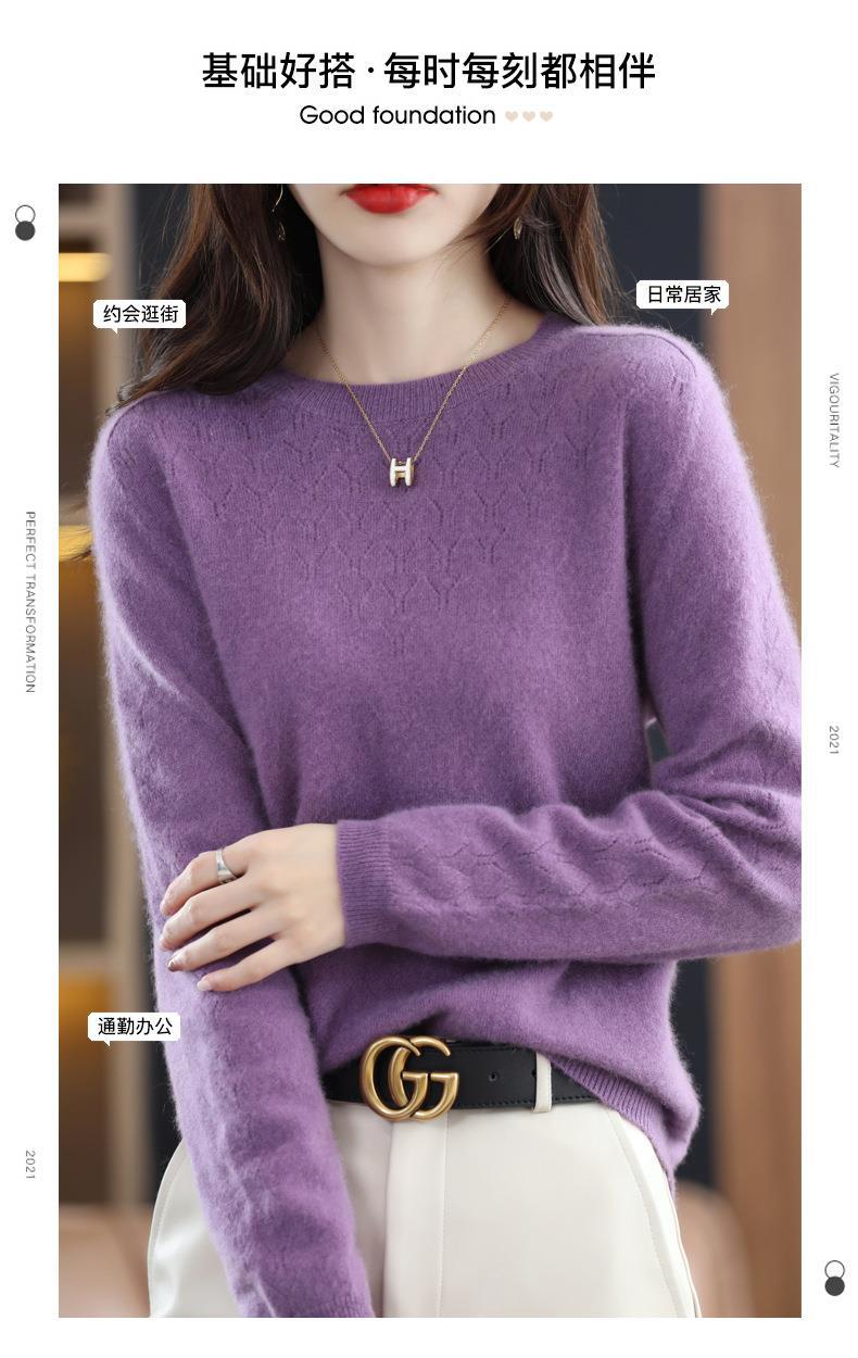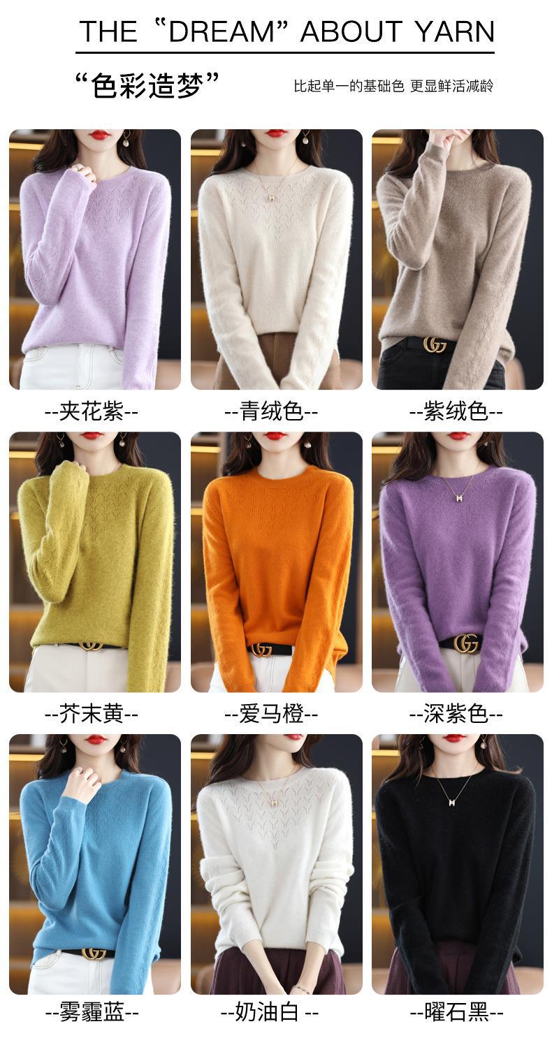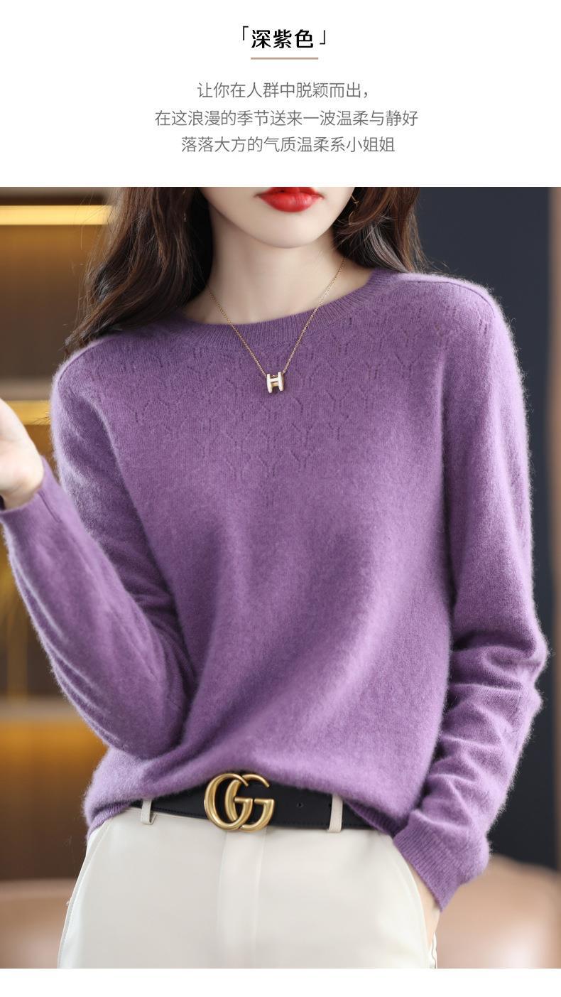 Suéter de lana 100% para mujer, cuello redondo, otoño e invierno, nuevo suéter de punto hueco, jersey holgado, camisa de cachemira de manga larga.