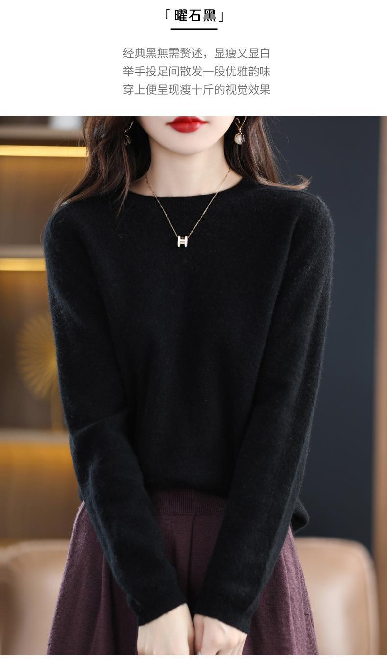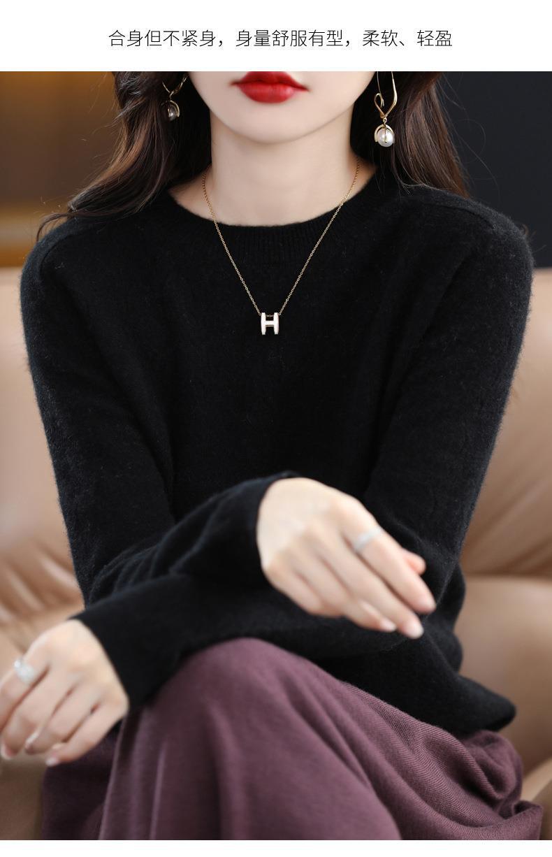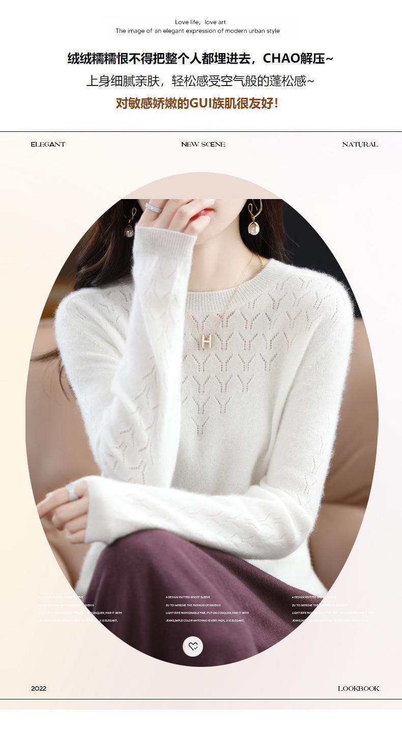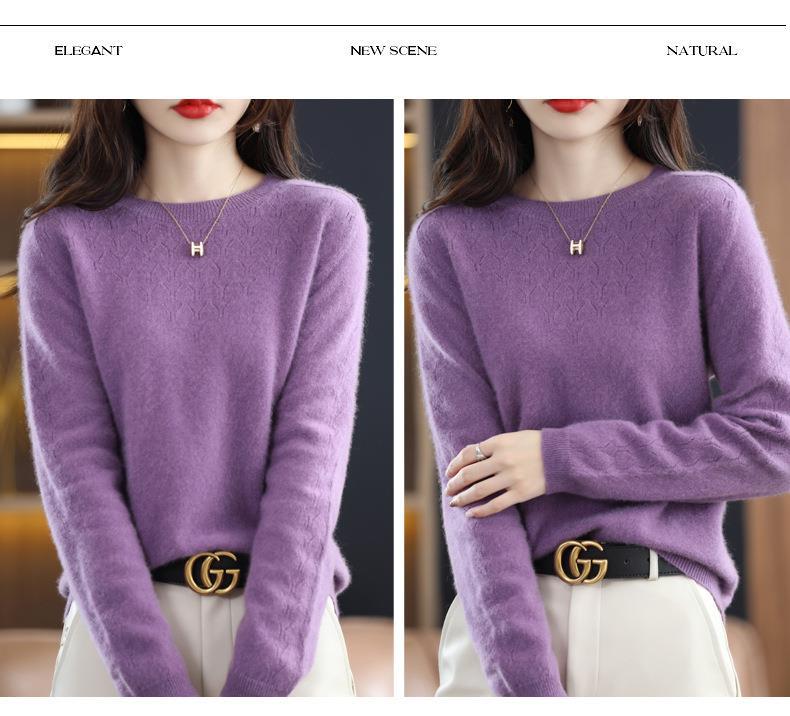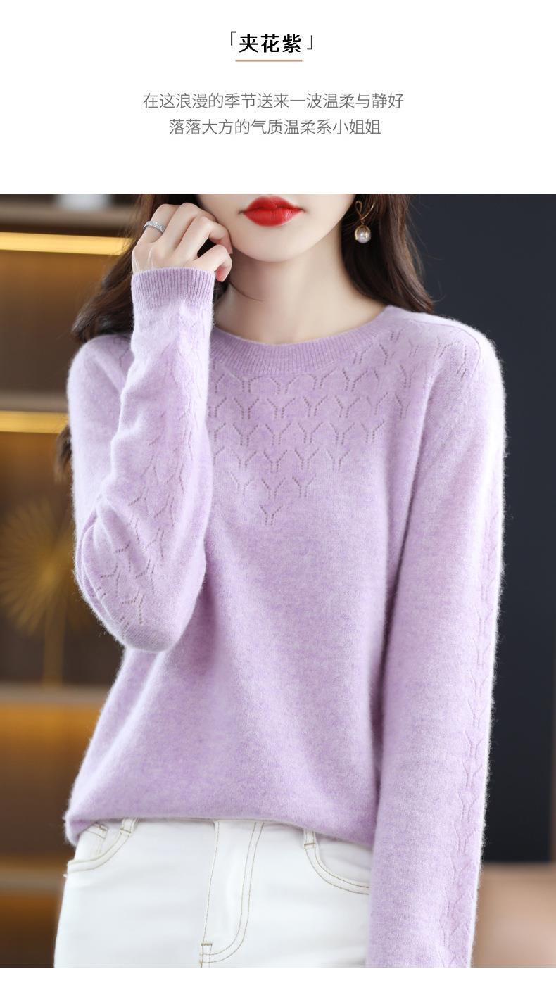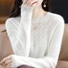 Suéter de lana 100% para mujer, cuello redondo, otoño e invierno, nuevo suéter de punto hueco, jersey holgado, camisa de cachemira de manga larga.