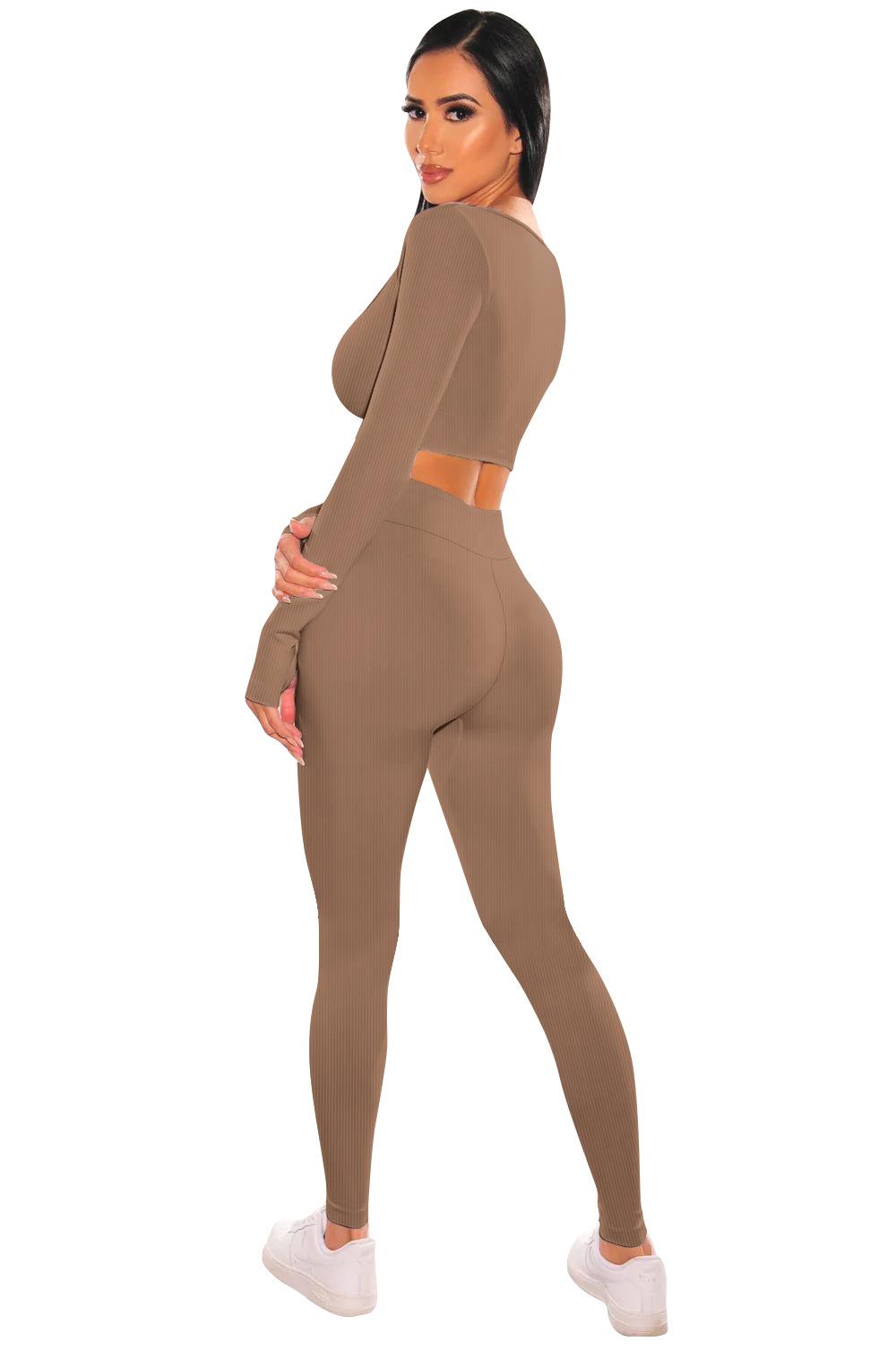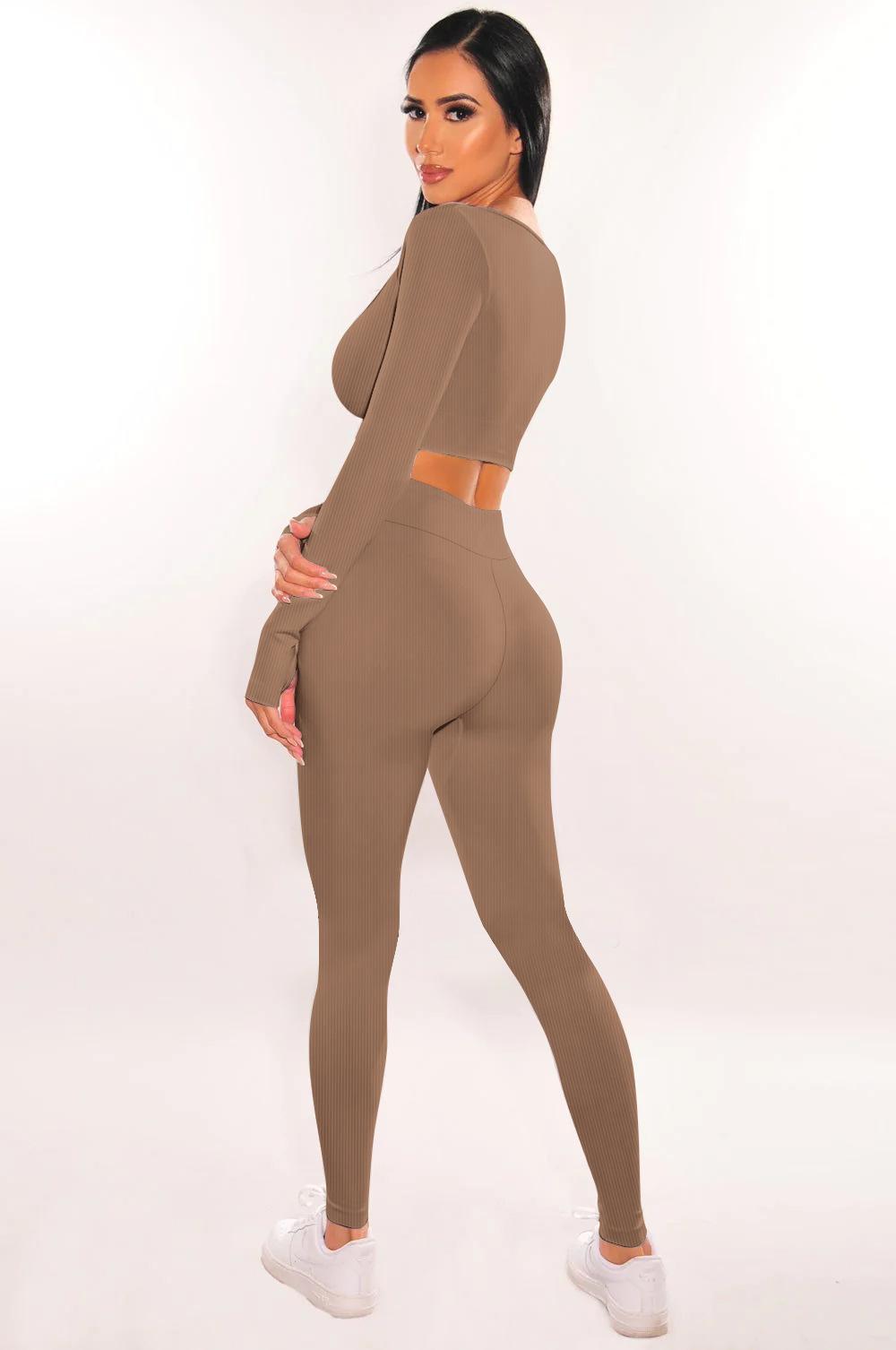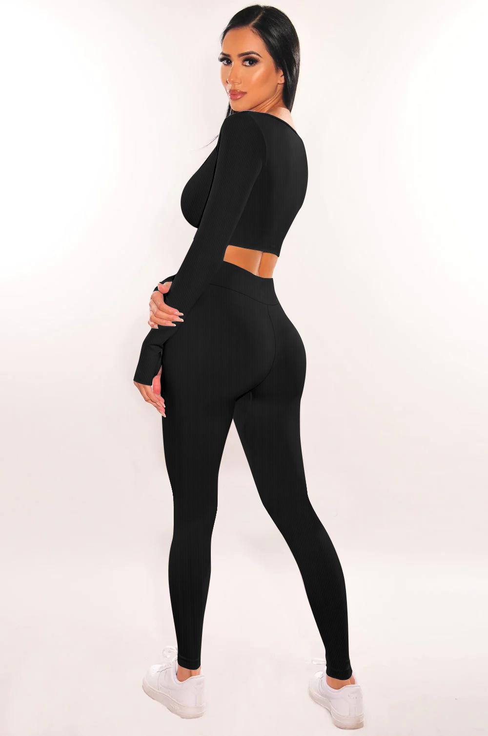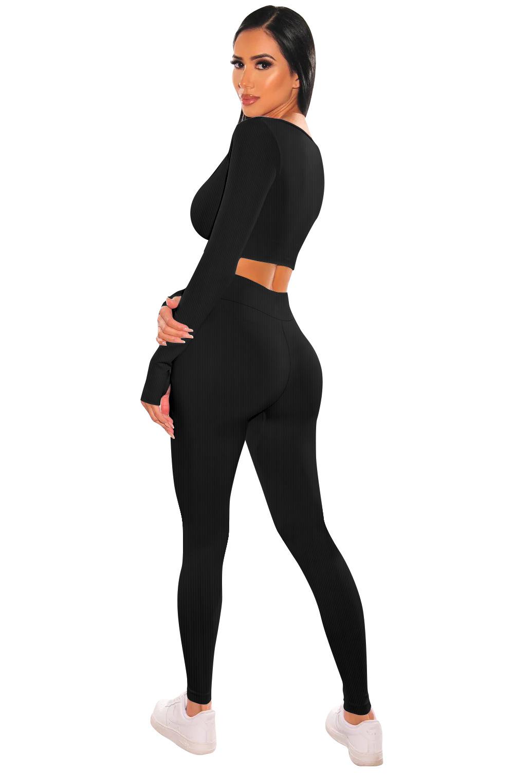 Traje de yoga deportivo de cuello cuadrado de dos piezas con hoyuelos pequeños, moda otoño-invierno 2023 de Amazon, comercio exterior transfronterizo europeo y americano