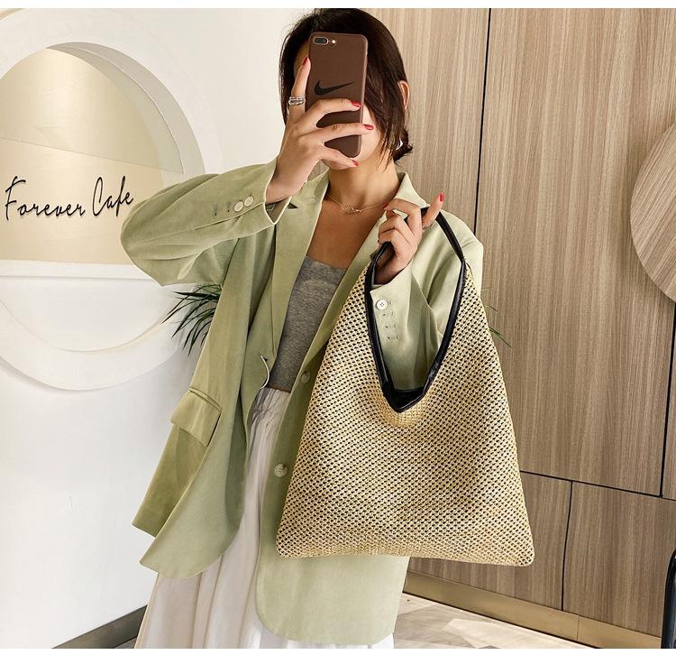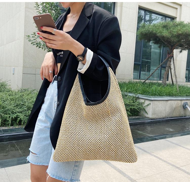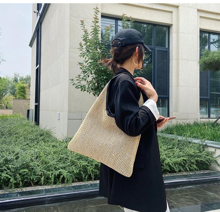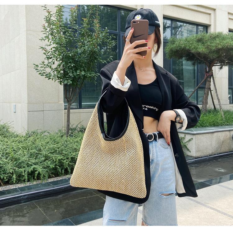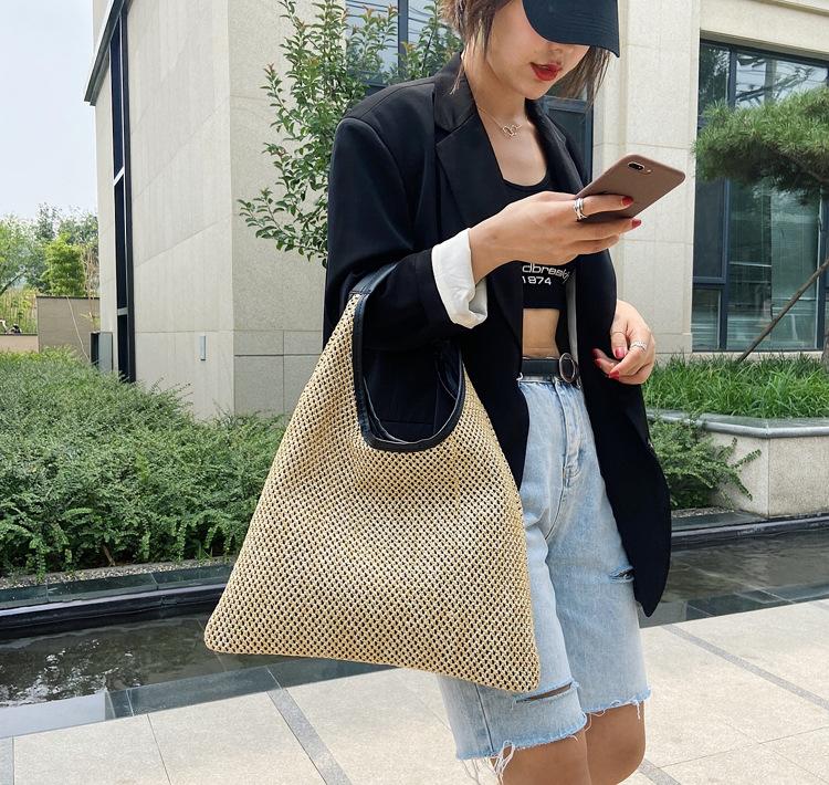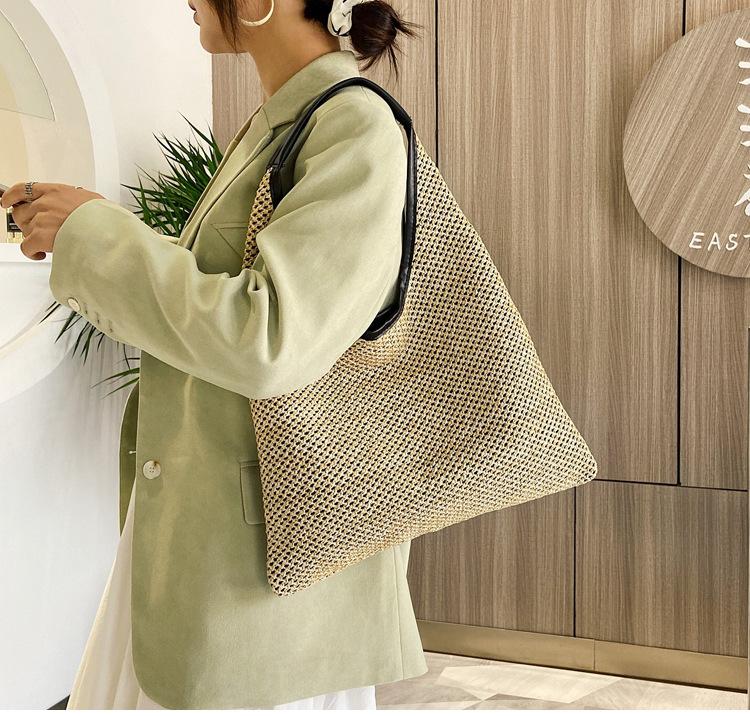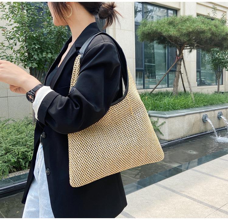 Bolso Nicho Francés Transfronterizo, Nuevo Bolso de Hombro Tejido Popular, Bolso de Paja de Moda Estilo Vacacional, Retro de Lujo Ligero