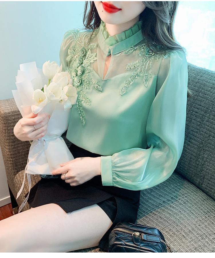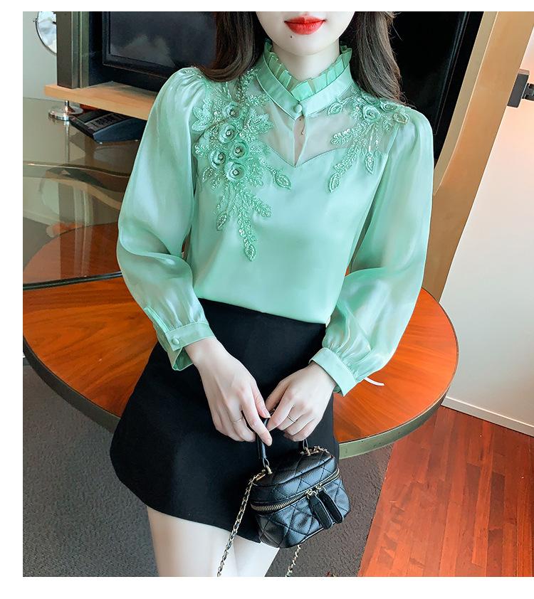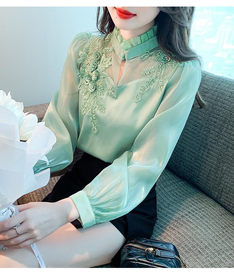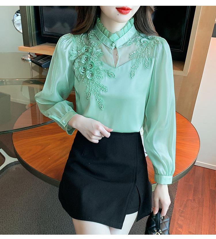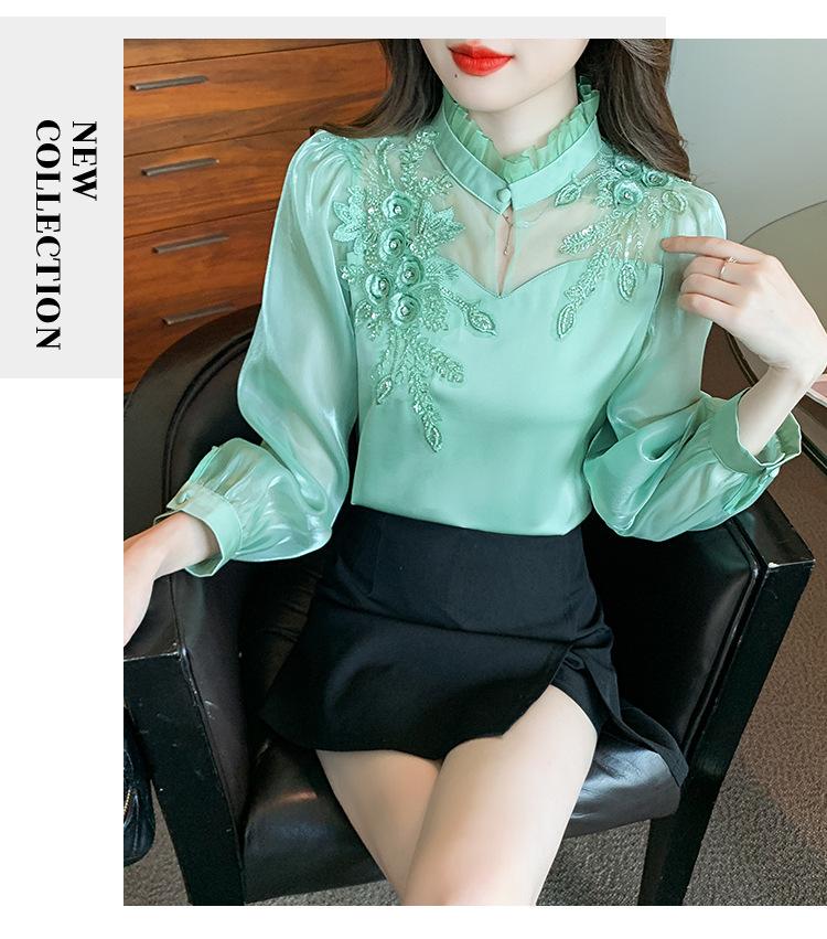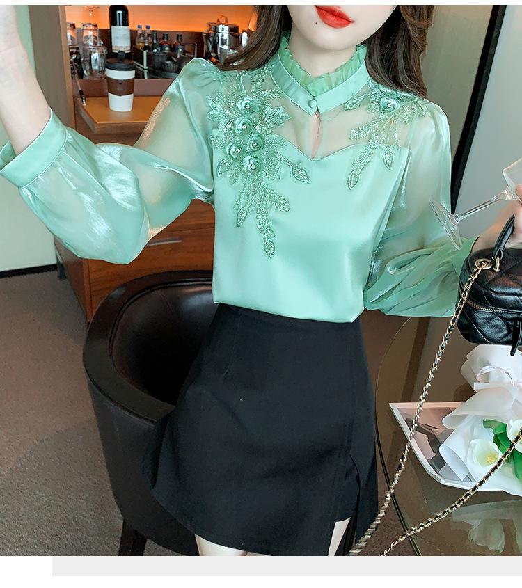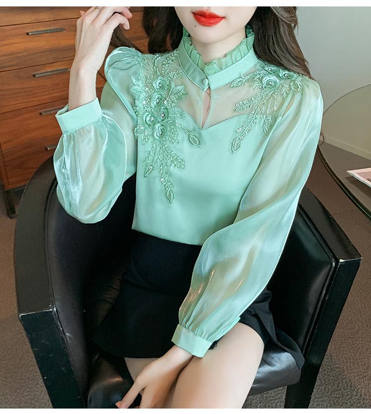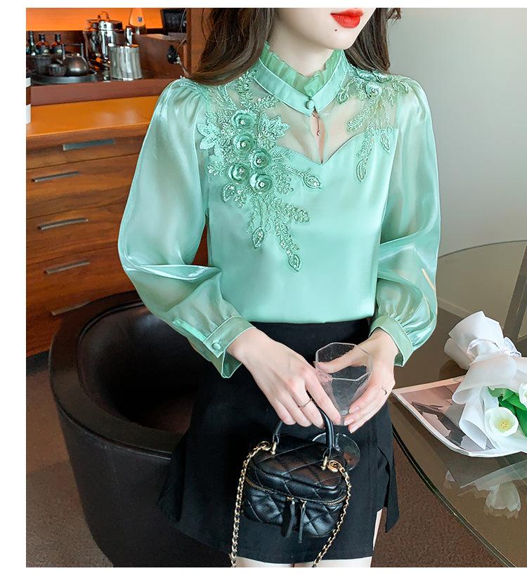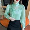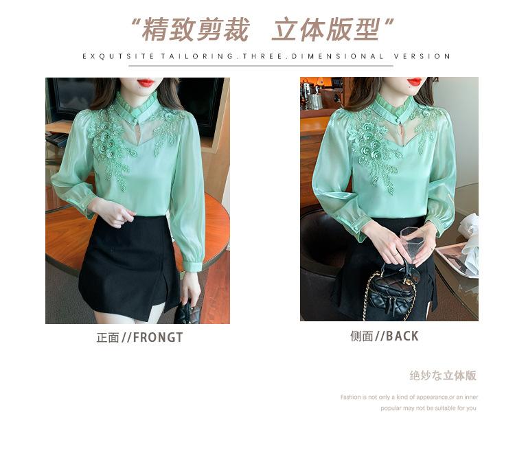 Camisa de gasa de manga larga de primavera y otoño para mujer, ropa 2024, nuevo diseño elegante, estilo nicho, hermosa camisa pequeña.