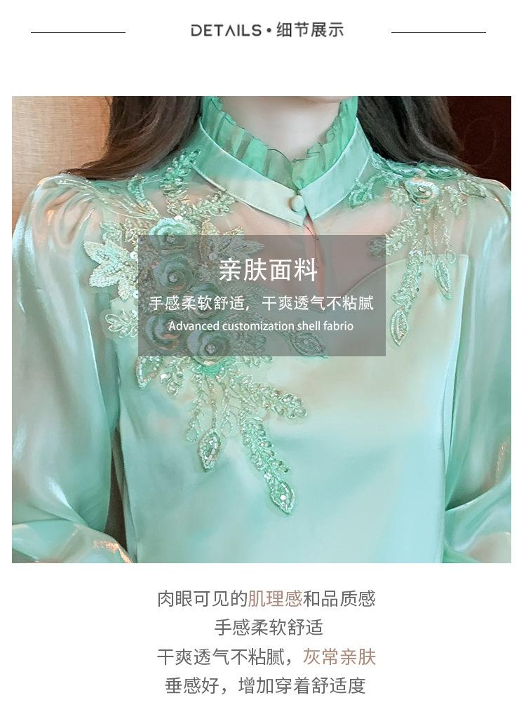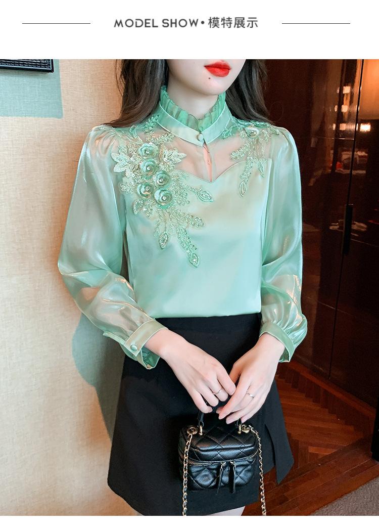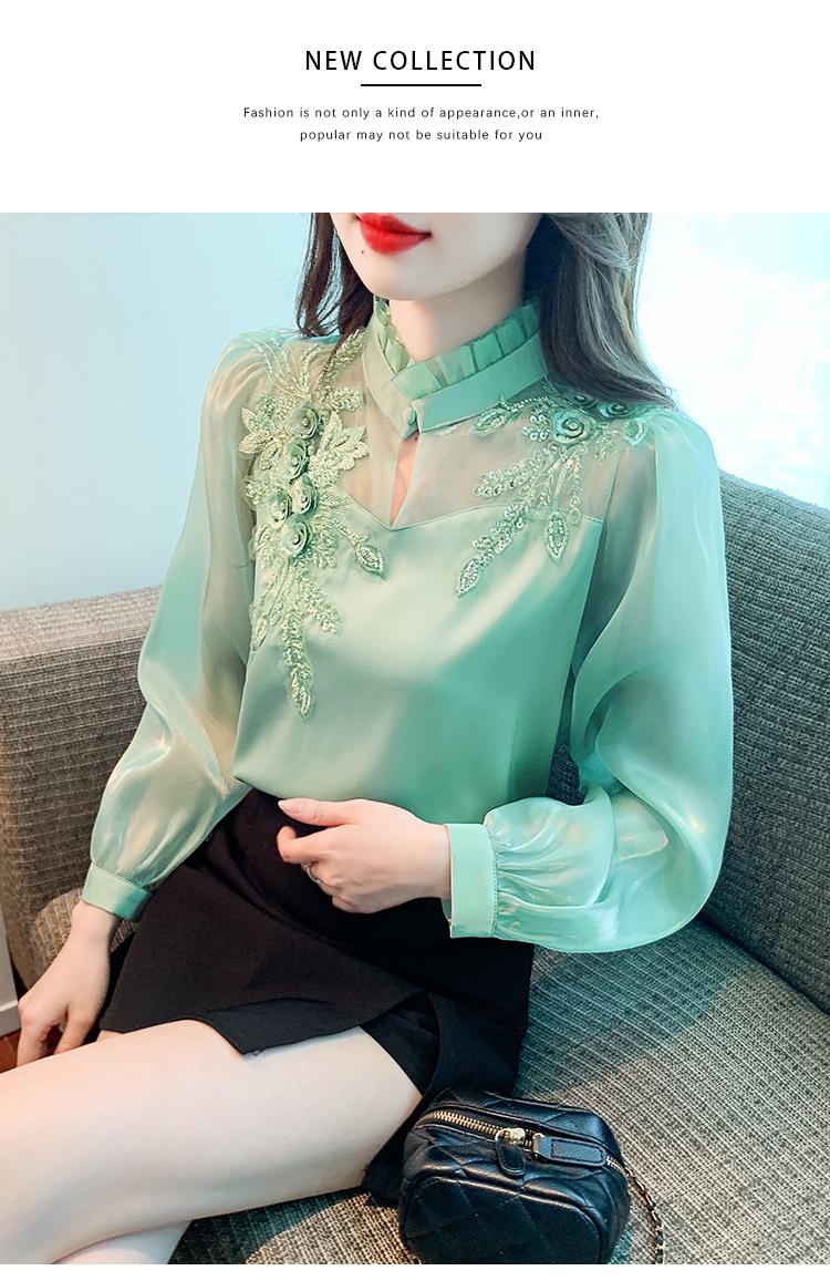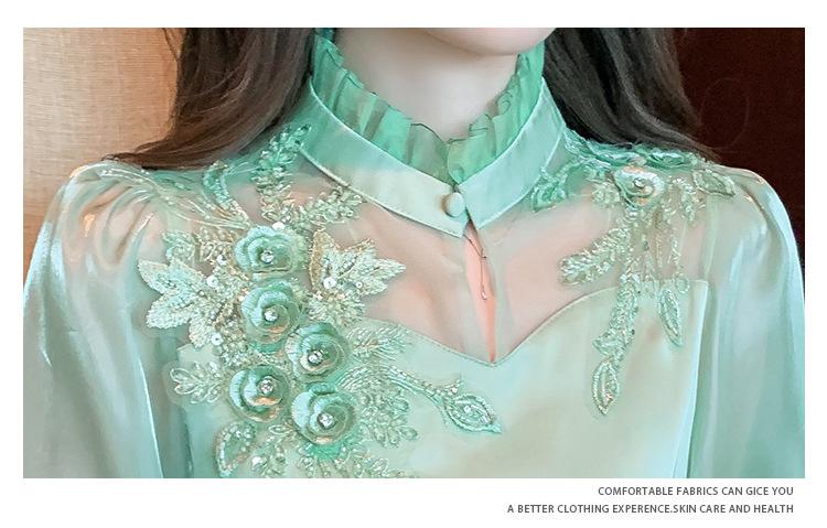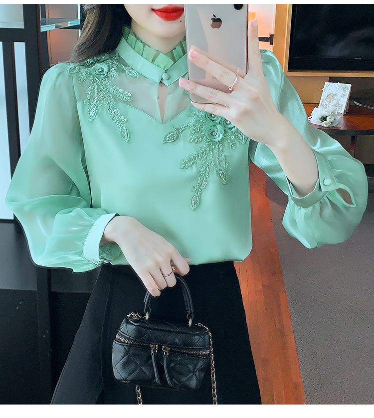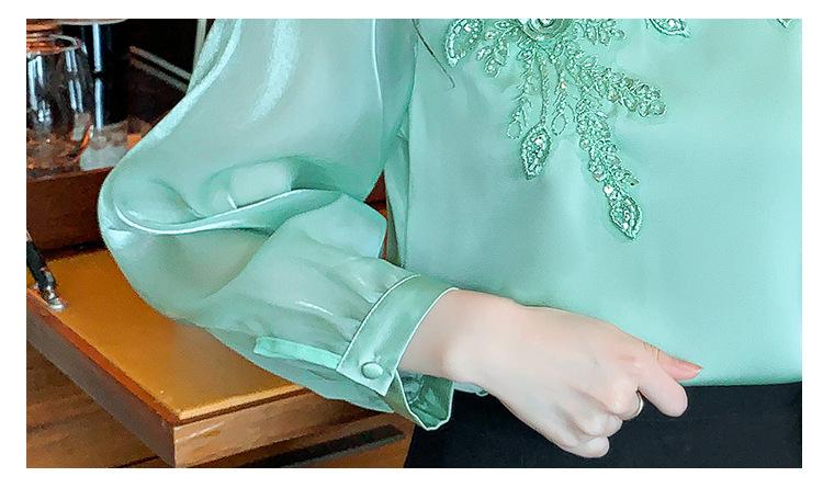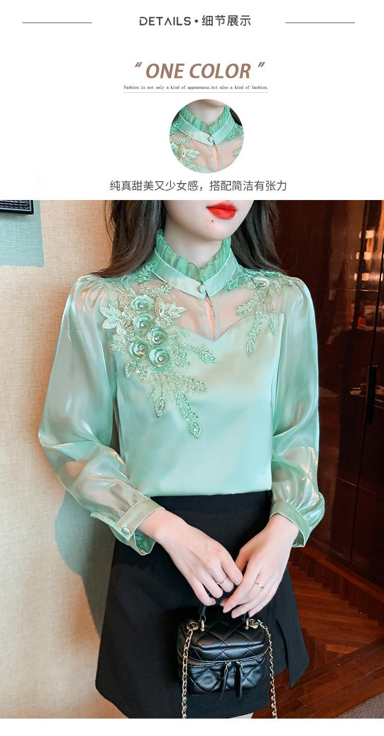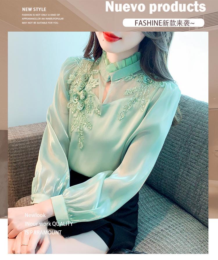 Camisa de gasa de manga larga de primavera y otoño para mujer, ropa 2024, nuevo diseño elegante, estilo nicho, hermosa camisa pequeña.