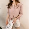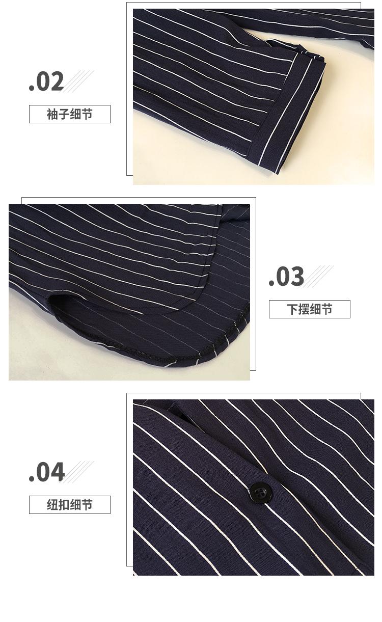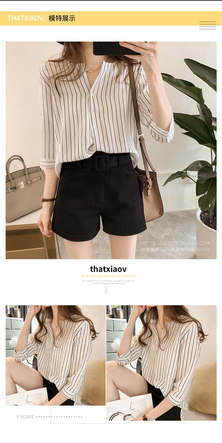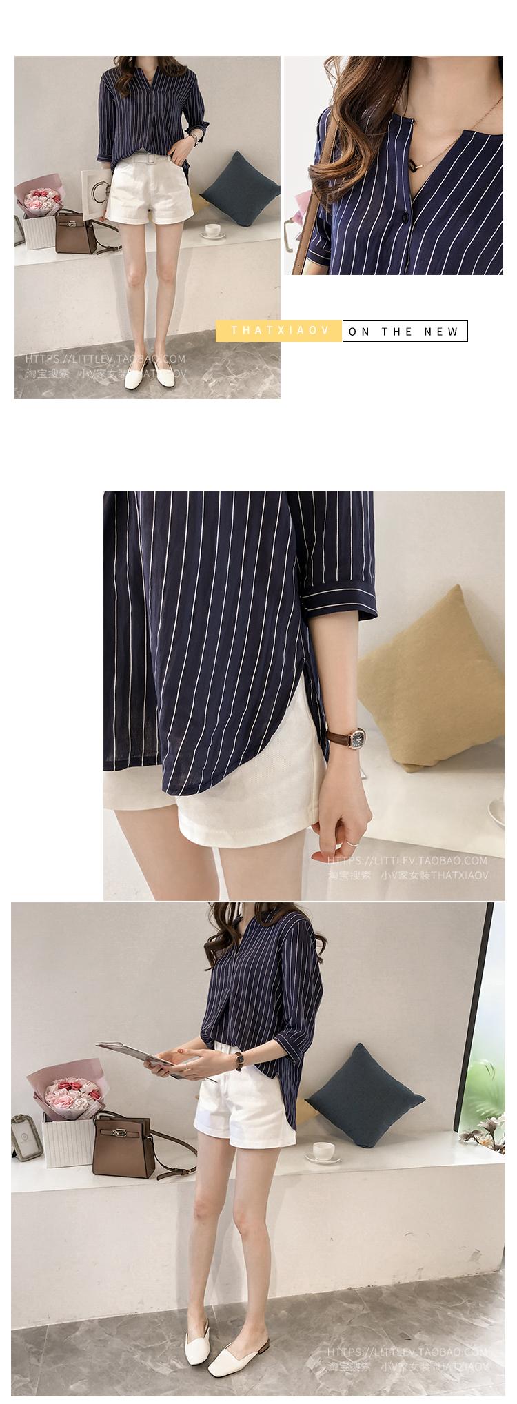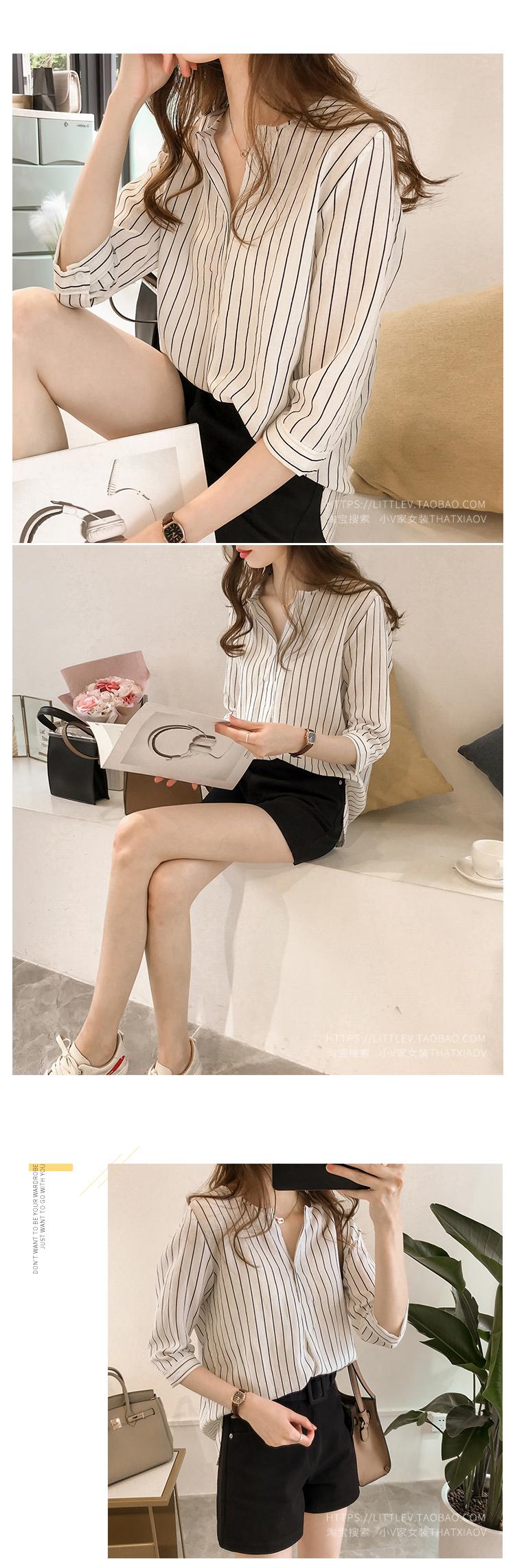 Compra Camisa a rayas de cuello redondo de talla grande de estilo coreano, novedad de verano de 2019, camisa informal holgada de manga tres cuartos para mujer al por mayor en Joom.pro