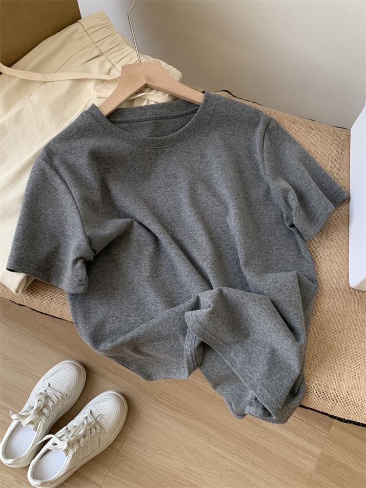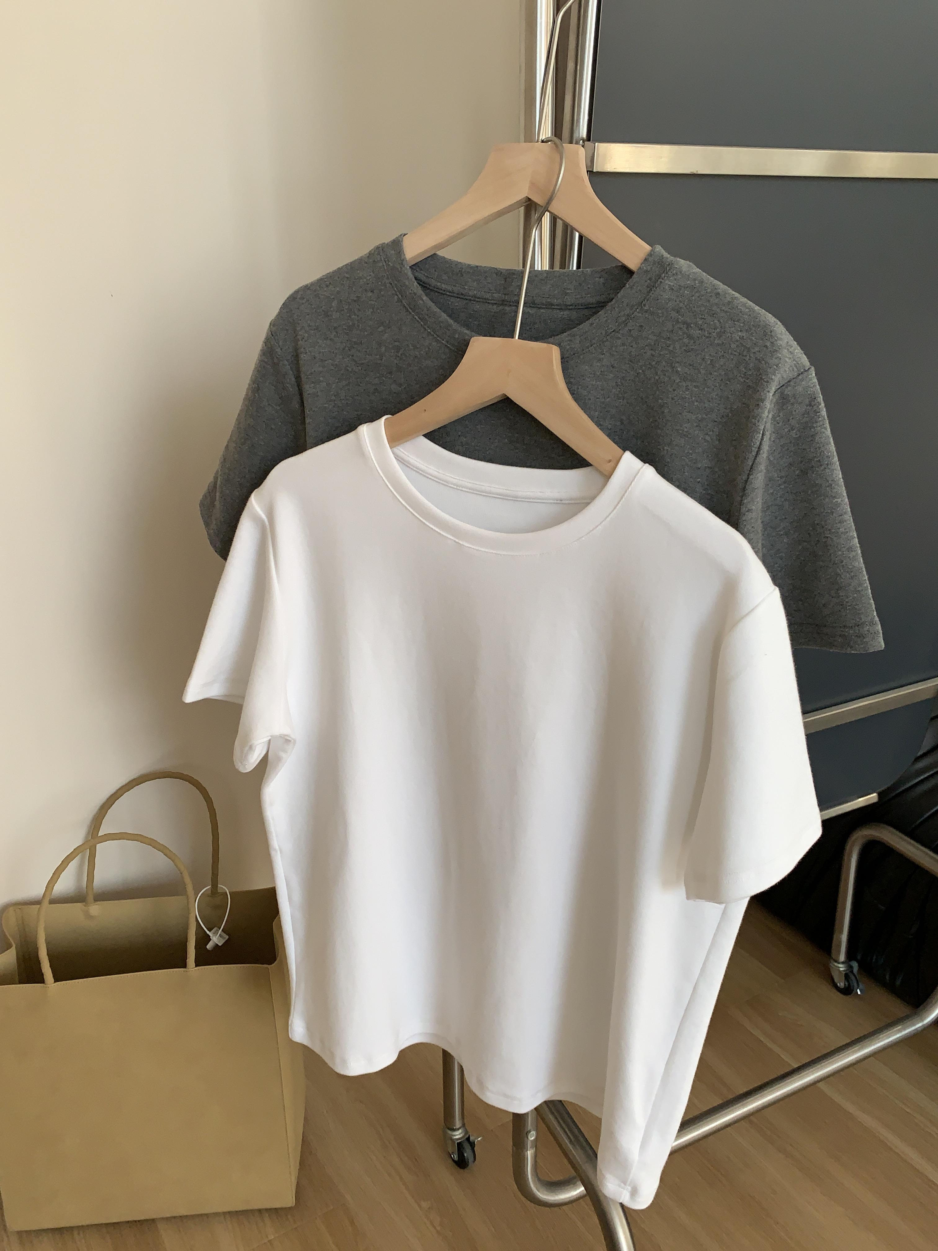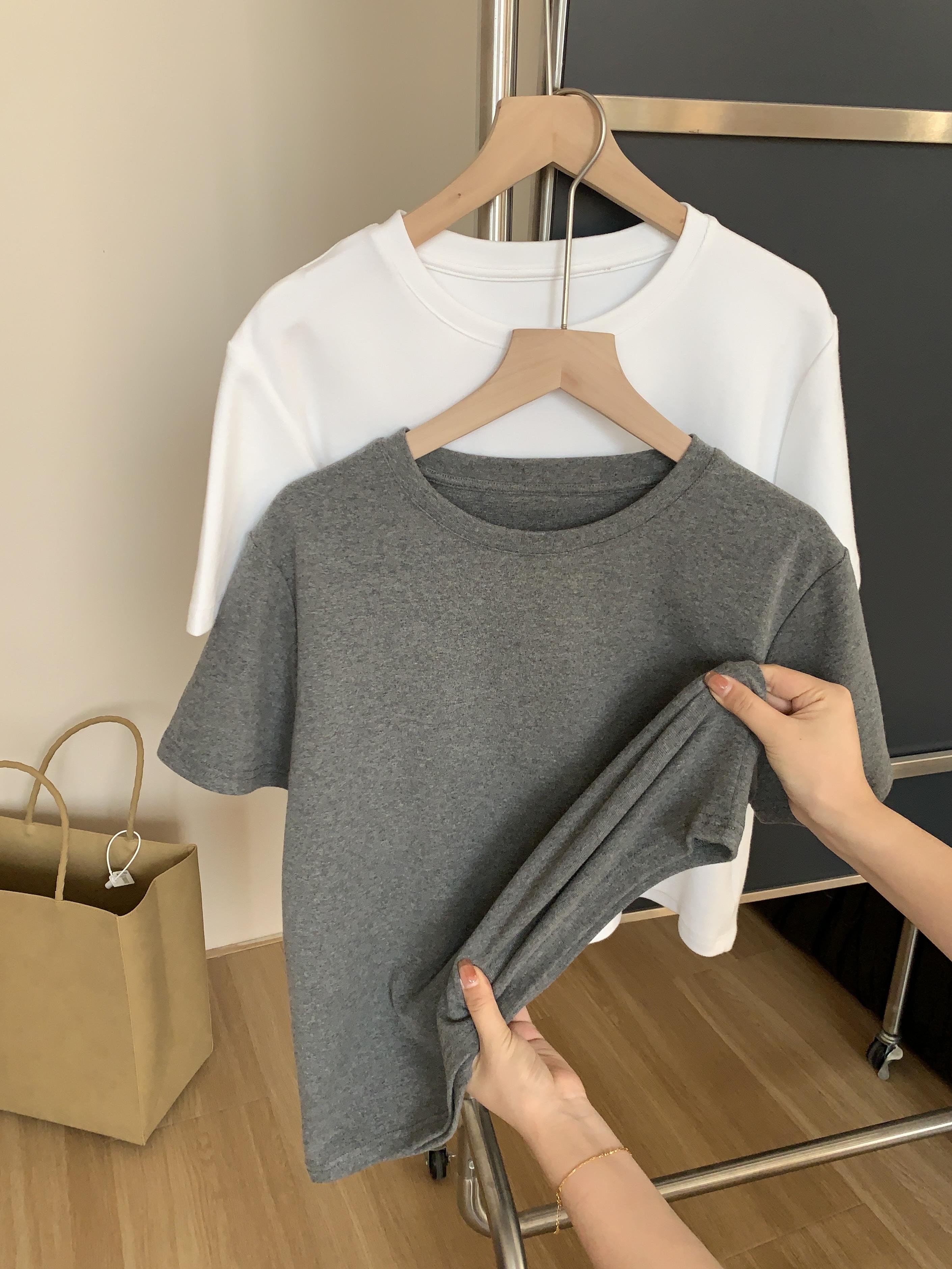 Camiseta holgada adelgazante con hombros cepillados y cuello redondo de color liso, básica, blanca, para combinar con todo, para primavera y otoño, camisa de manga corta.