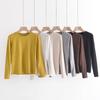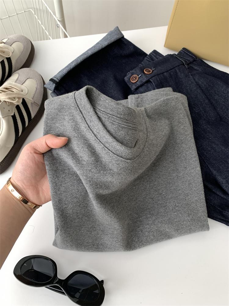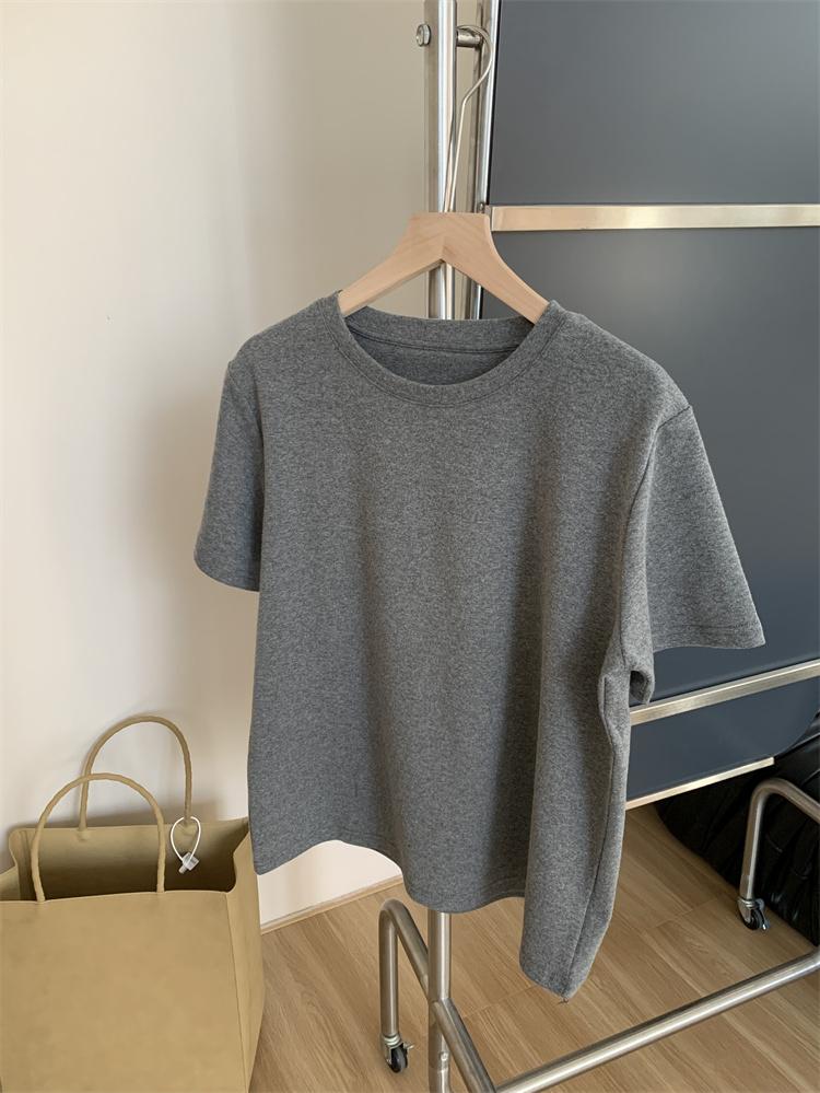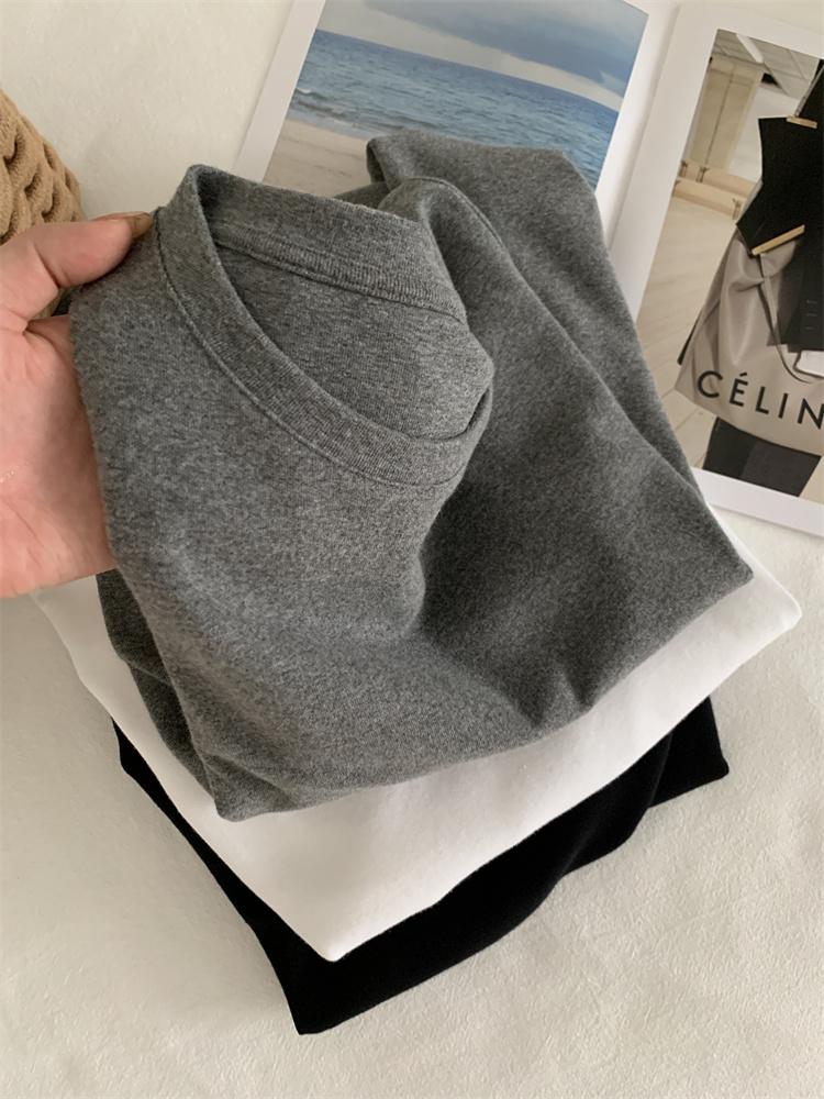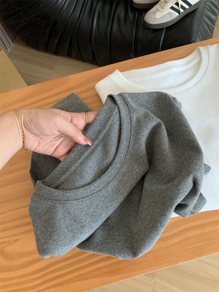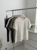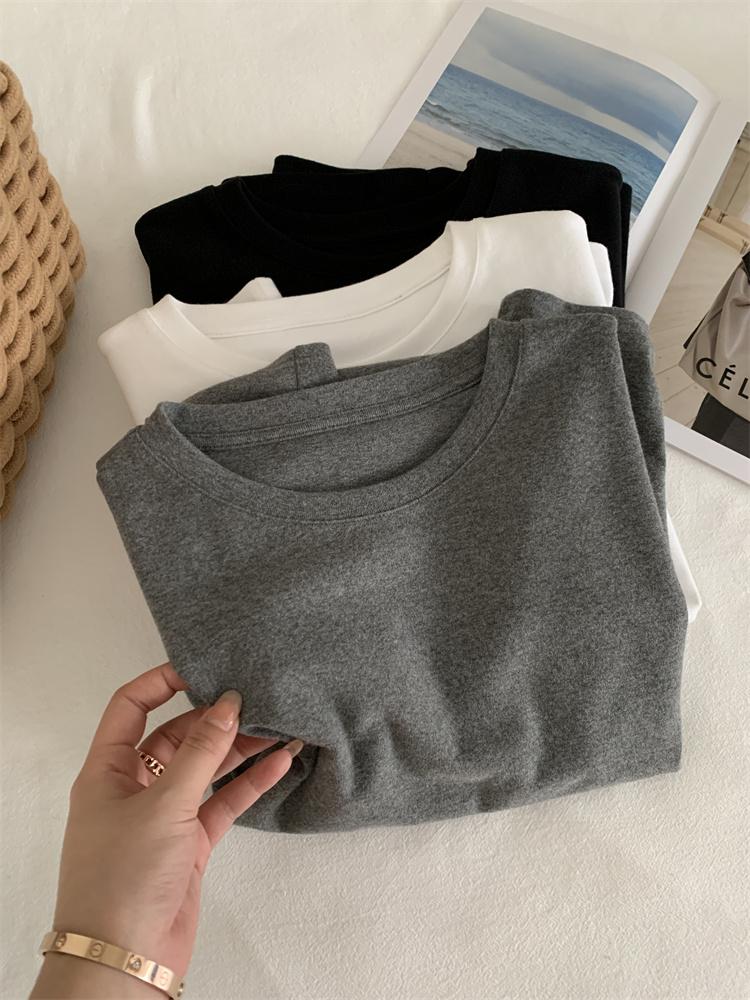 Camiseta holgada adelgazante con hombros cepillados y cuello redondo de color liso, básica, blanca, para combinar con todo, para primavera y otoño, camisa de manga corta.