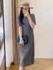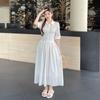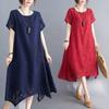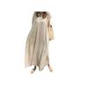 Vestido de verano 2024 de talla grande para mujer, estilo coreano, sencillo, holgado, con cuello en V, manga corta y larga