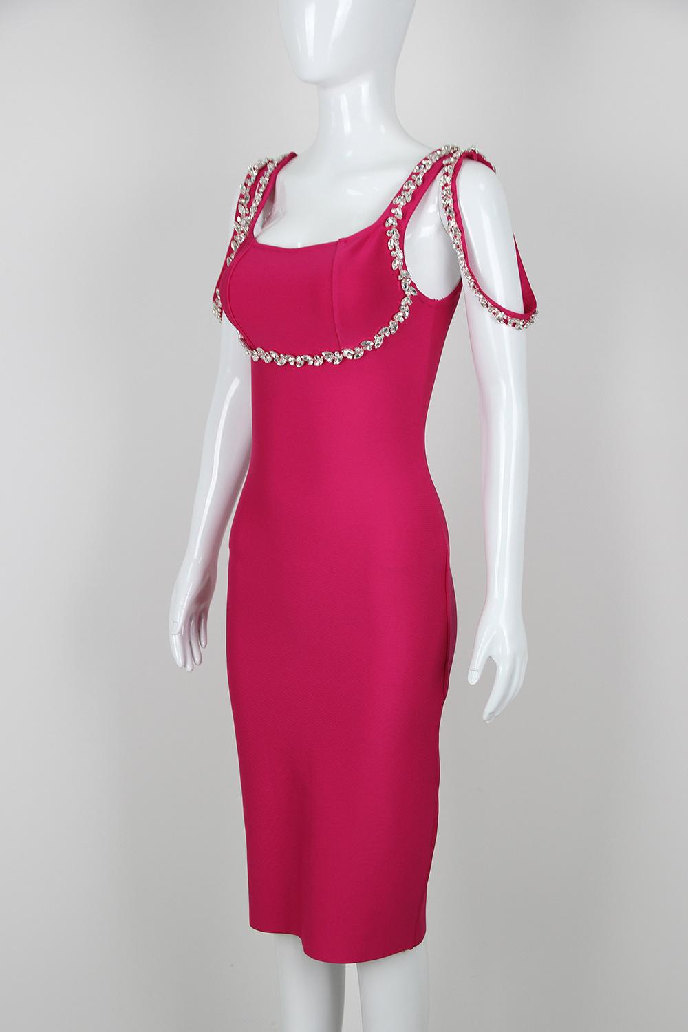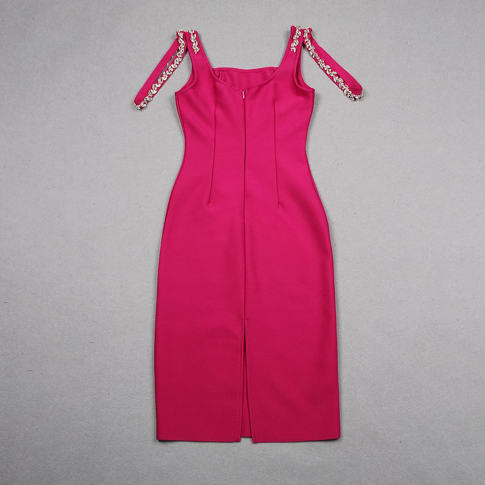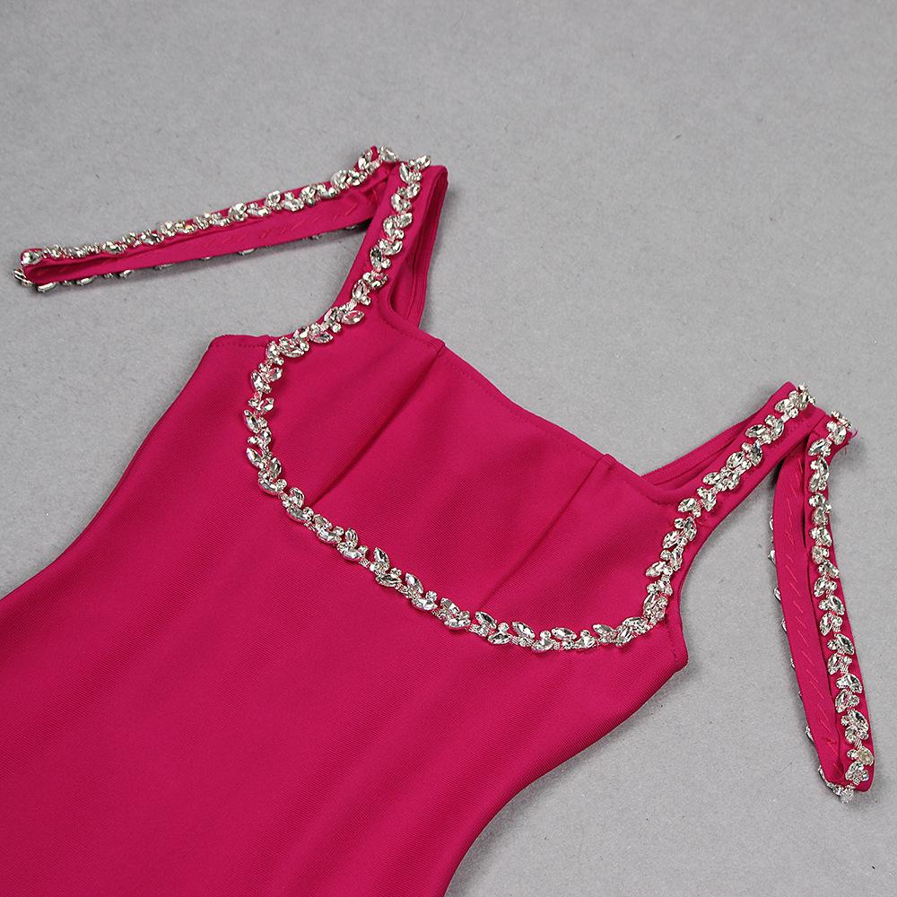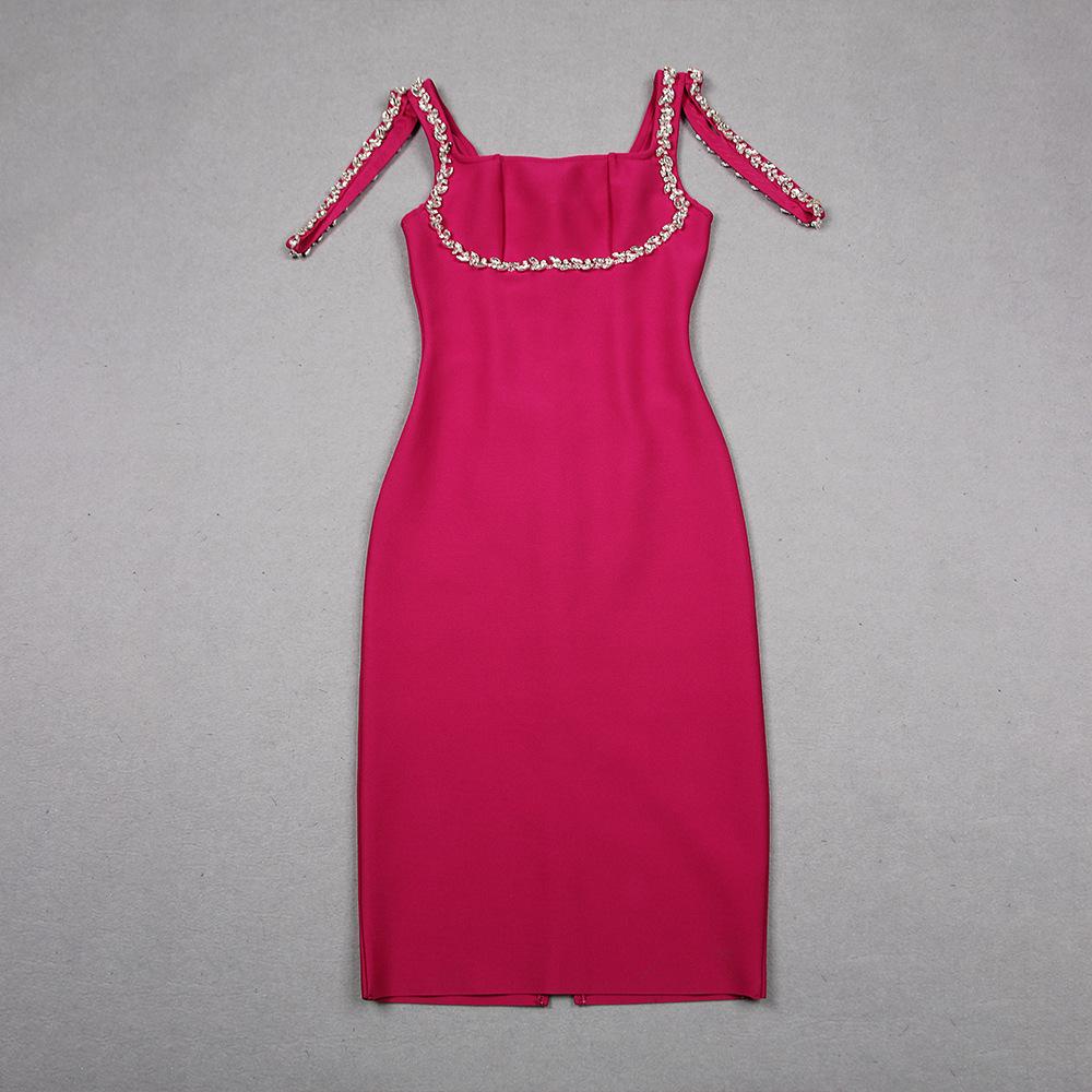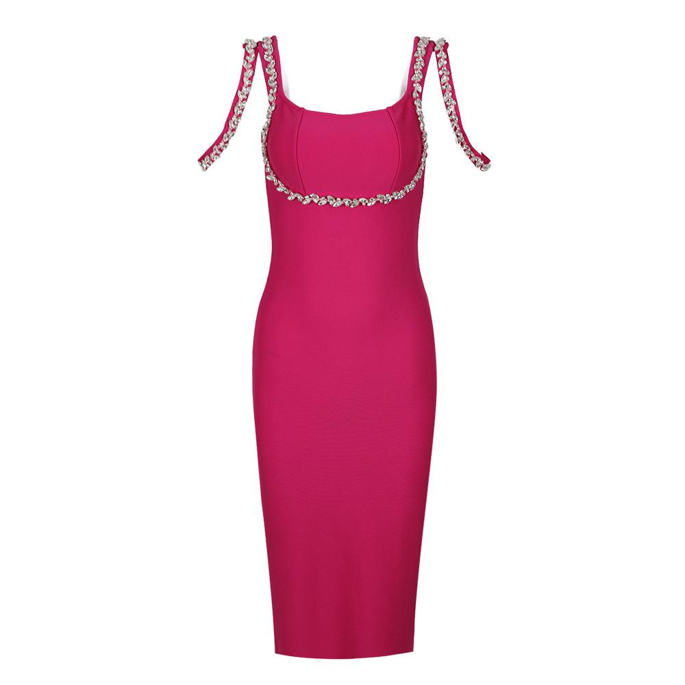 Primavera 2024 Nuevo vestido sexy con tirantes y vendaje de estilo europeo y americano para mujer, vestido sin mangas para fiesta y banquete.