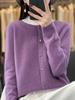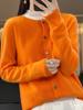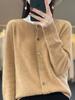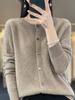 Cárdigan de punto de lana con cuello redondo para mujer, suéter de lana holgado de manga larga con botones, primavera y otoño, 2023
