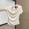 Camiseta de manga corta para mujer, cuello cuadrado, hombros descubiertos, diseño ajustado, cintura alta, estilo chic, verano 2023
