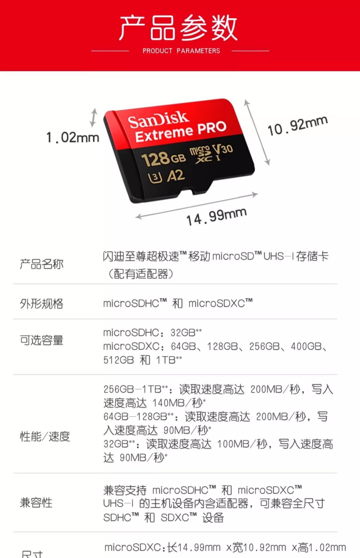 Tarjeta de Memoria Sandisk 128g Tarjeta SD de Alta Velocidad Dron DJI Cámara Deportiva GoPro Pocket3 Almacenamiento Tarjeta TF
