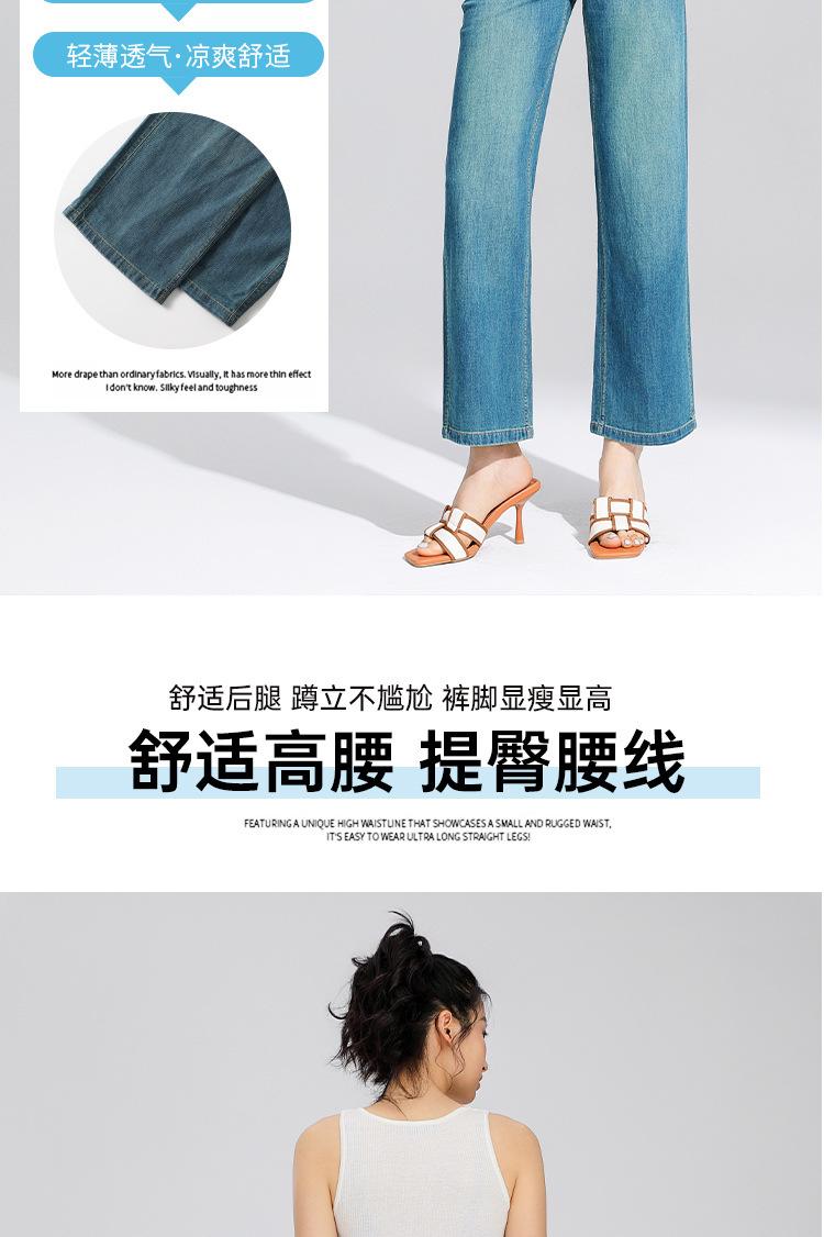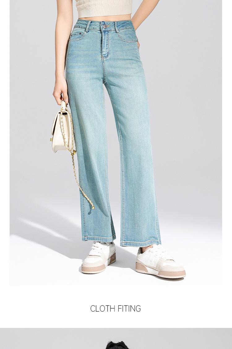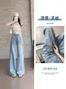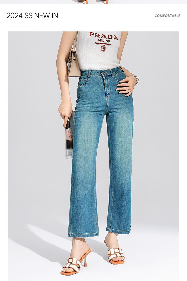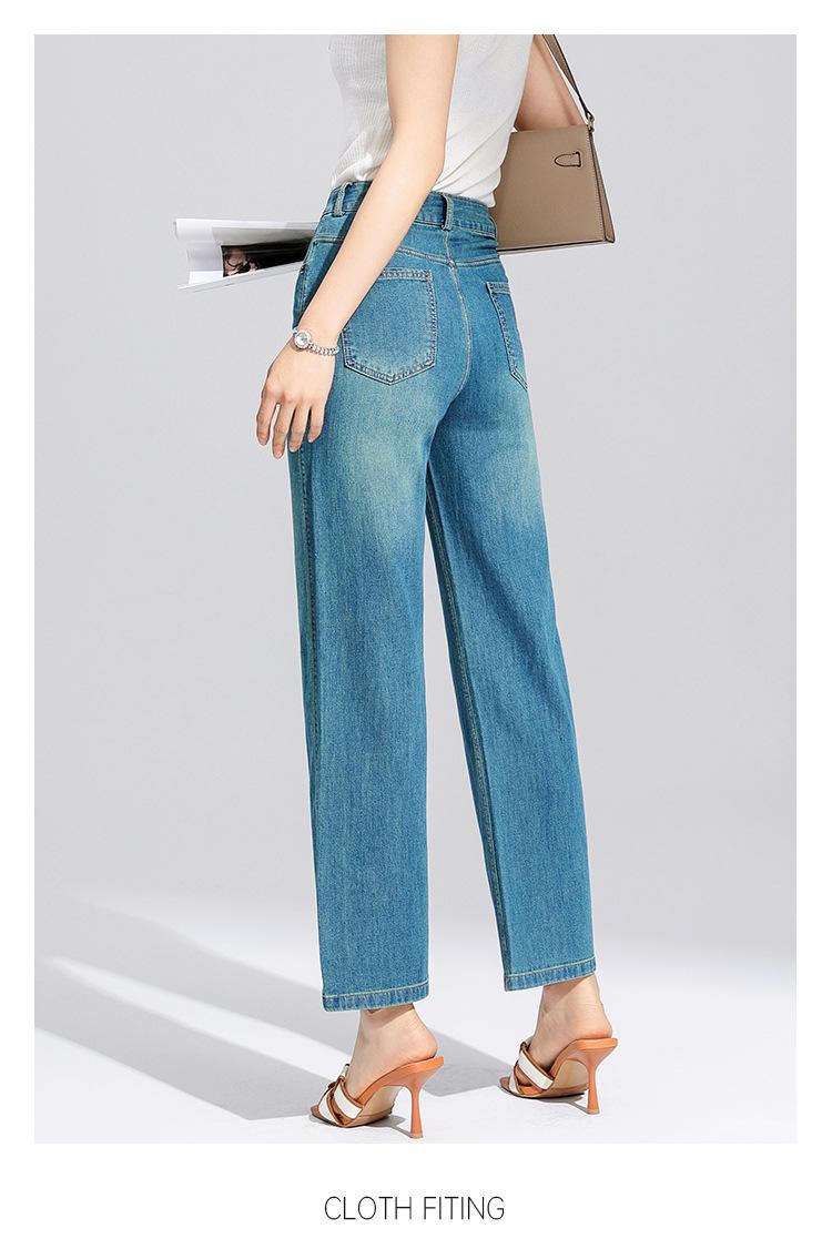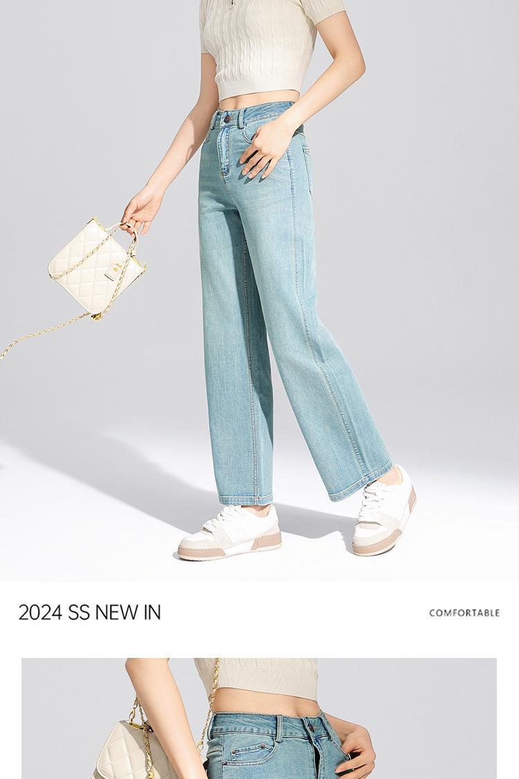 Pantalones Rectos de Tencel Hasta el Piso 2025 Verano Delgados Frescos Cintura Alta Jeans para Mujer Pantalones Sueltos Drapeados de Pierna Ancha