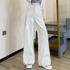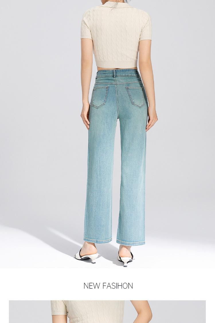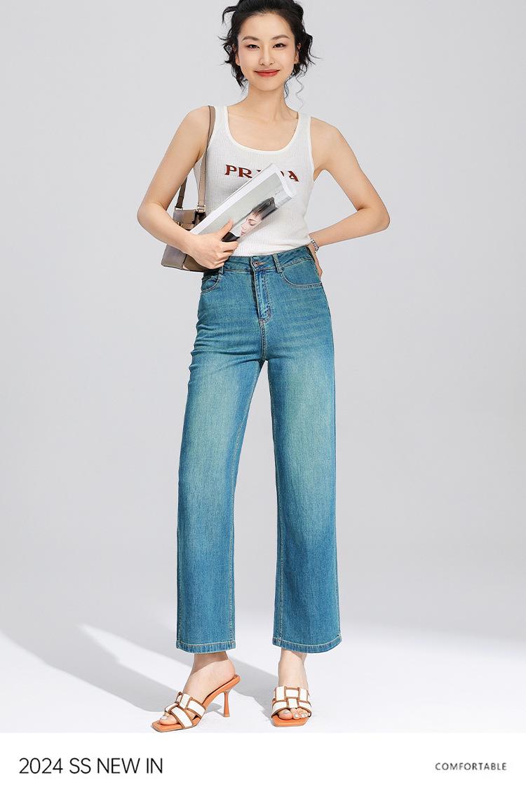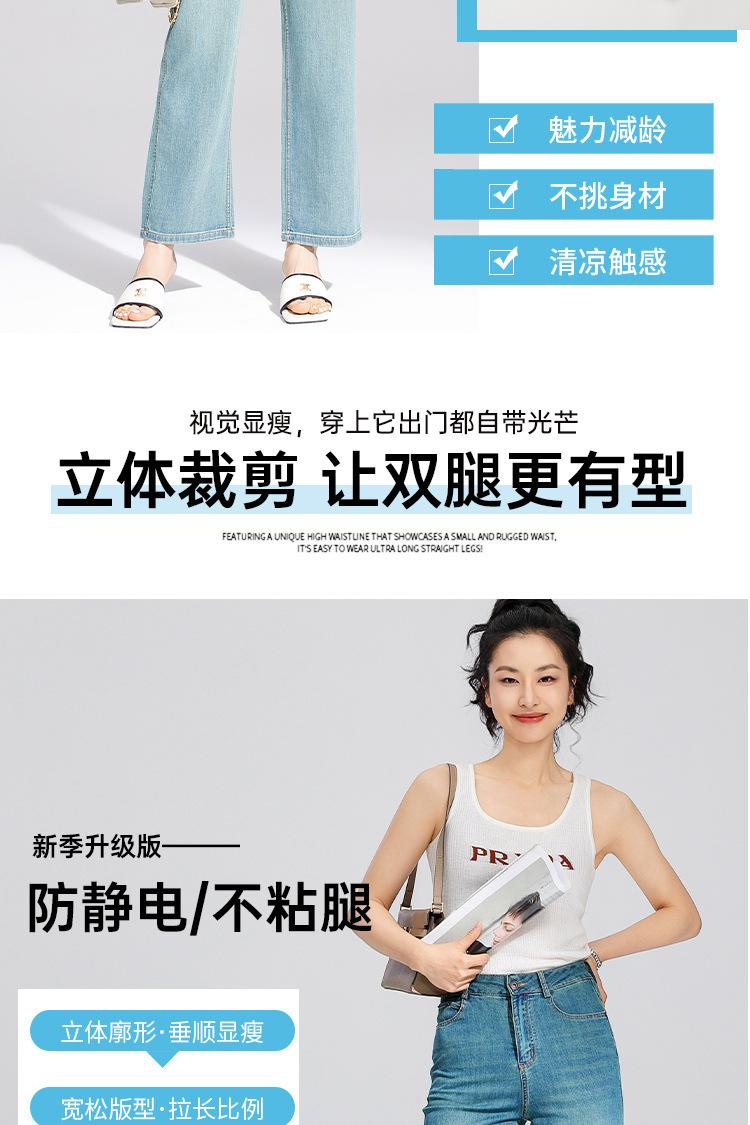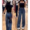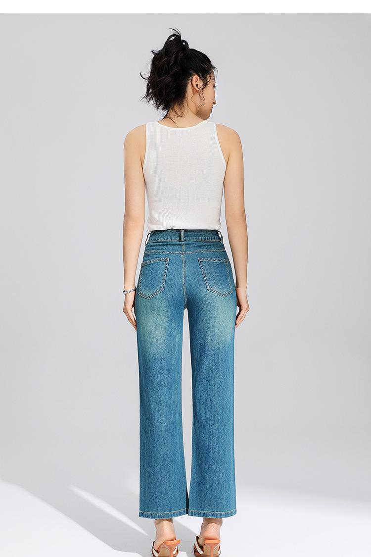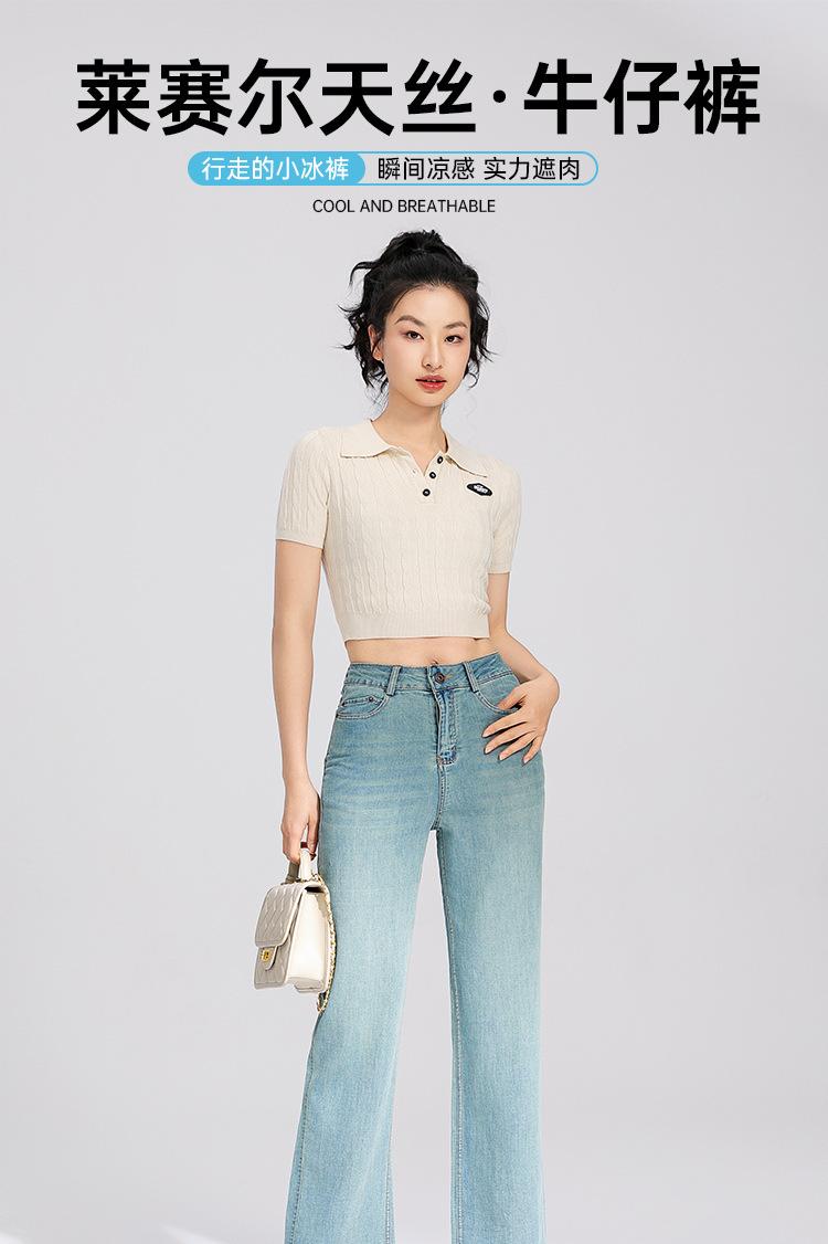 Pantalones Rectos de Tencel Hasta el Piso 2025 Verano Delgados Frescos Cintura Alta Jeans para Mujer Pantalones Sueltos Drapeados de Pierna Ancha