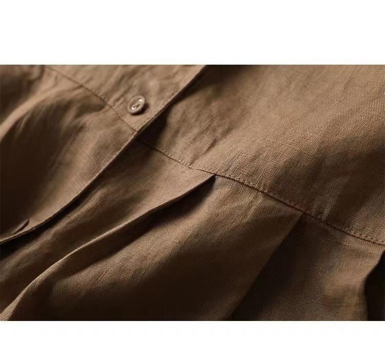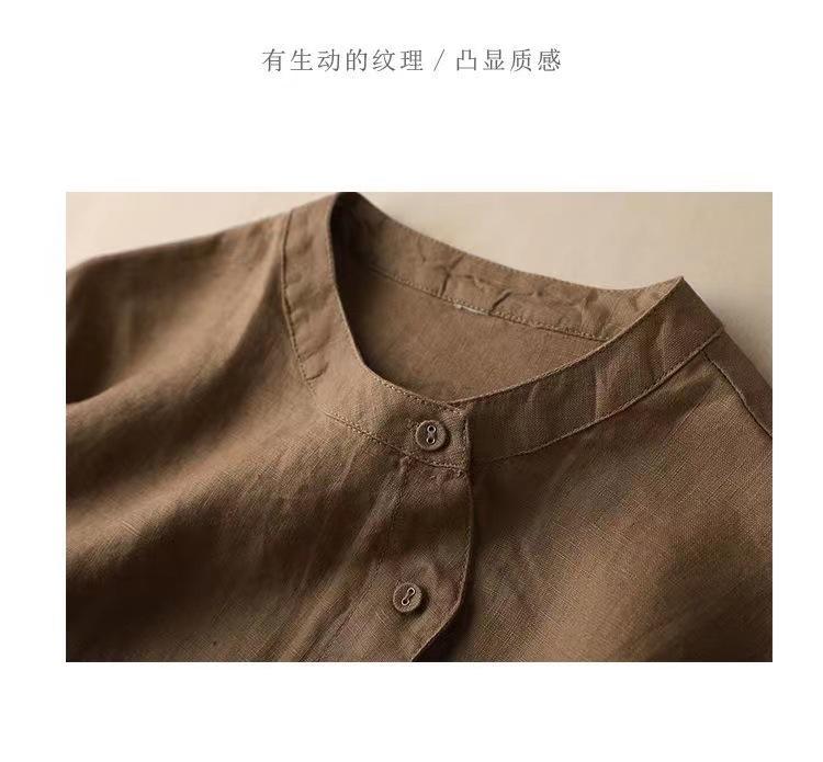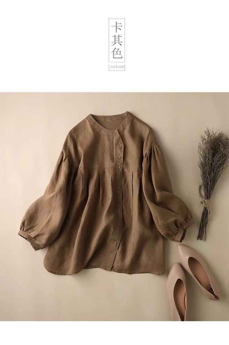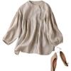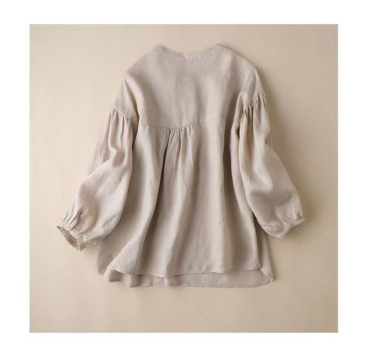 Nueva Camisa de Algodón y Lino de Color Sólido con Manga Linterna para Mujer, Top Holgado Estilo Muñeca con Diseño Elegante y Mangas Tres Cuartos